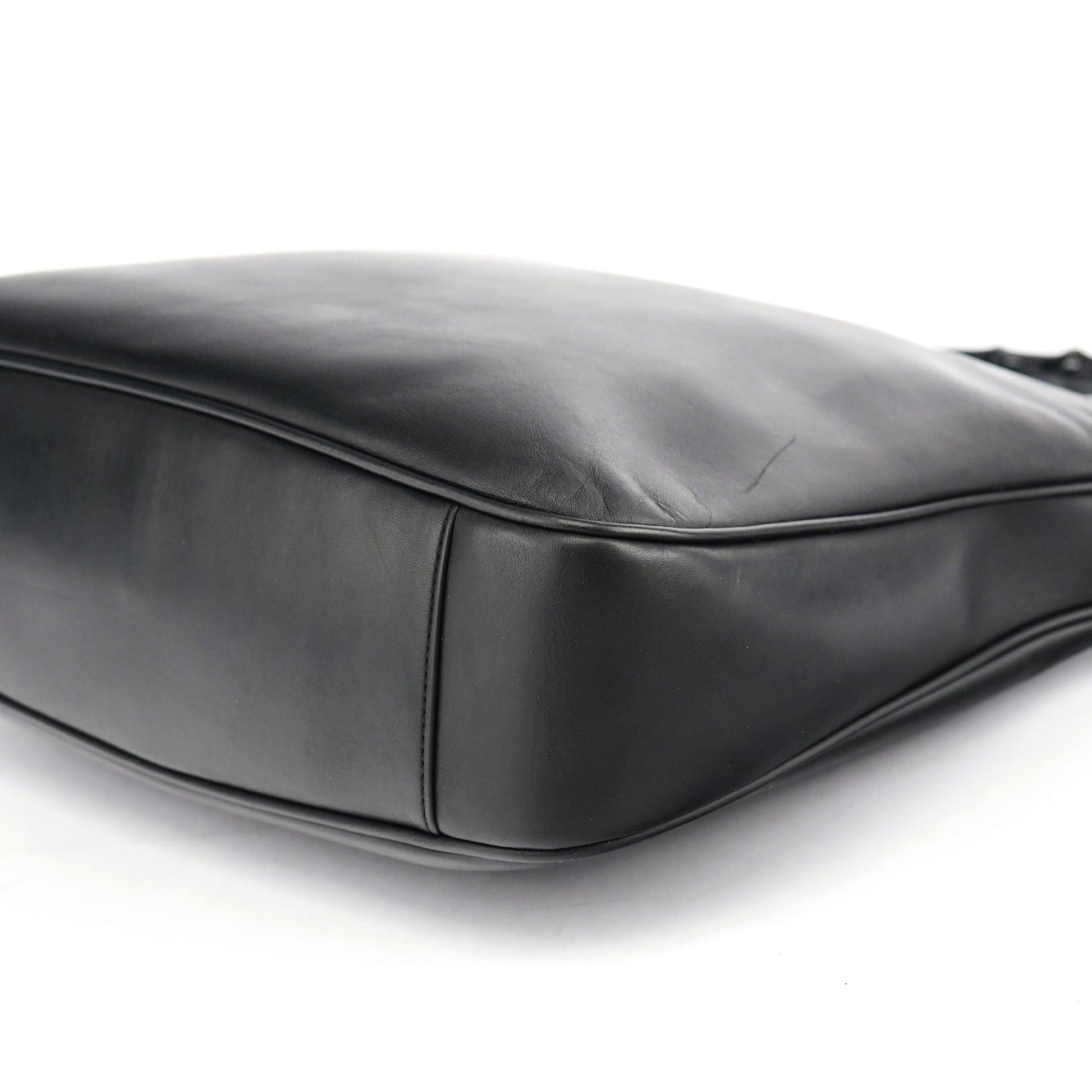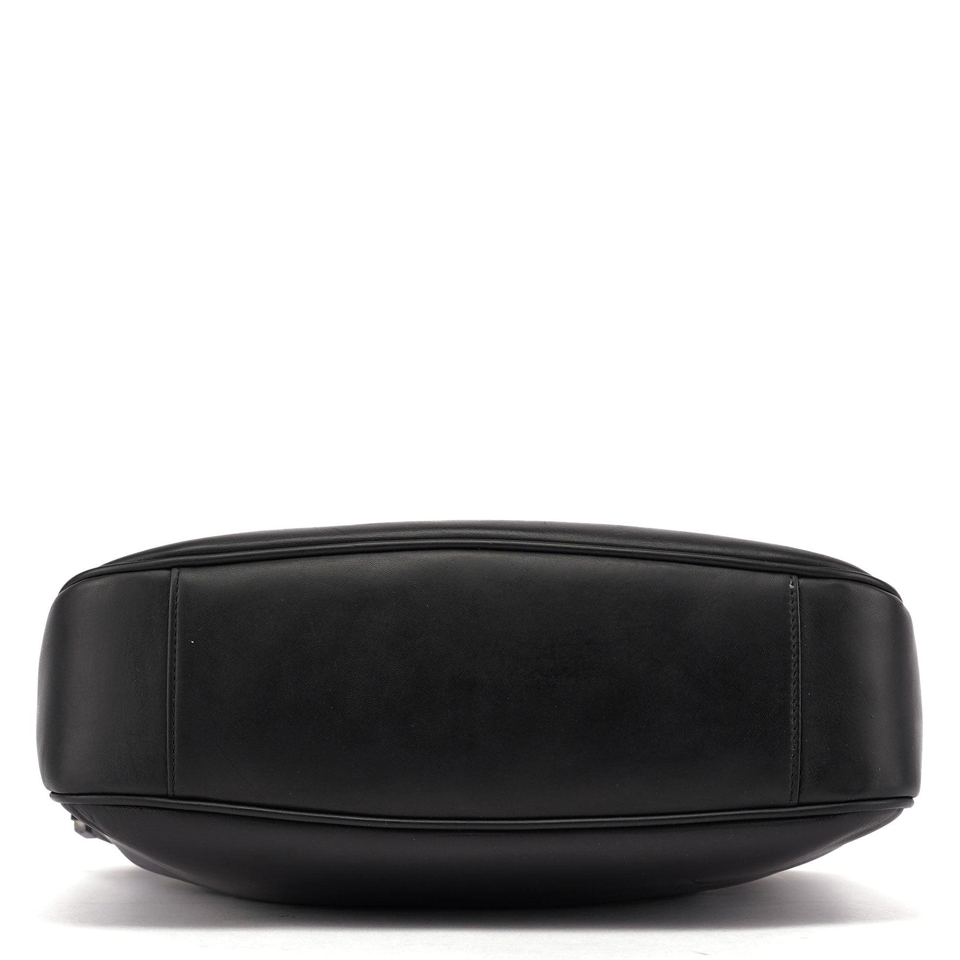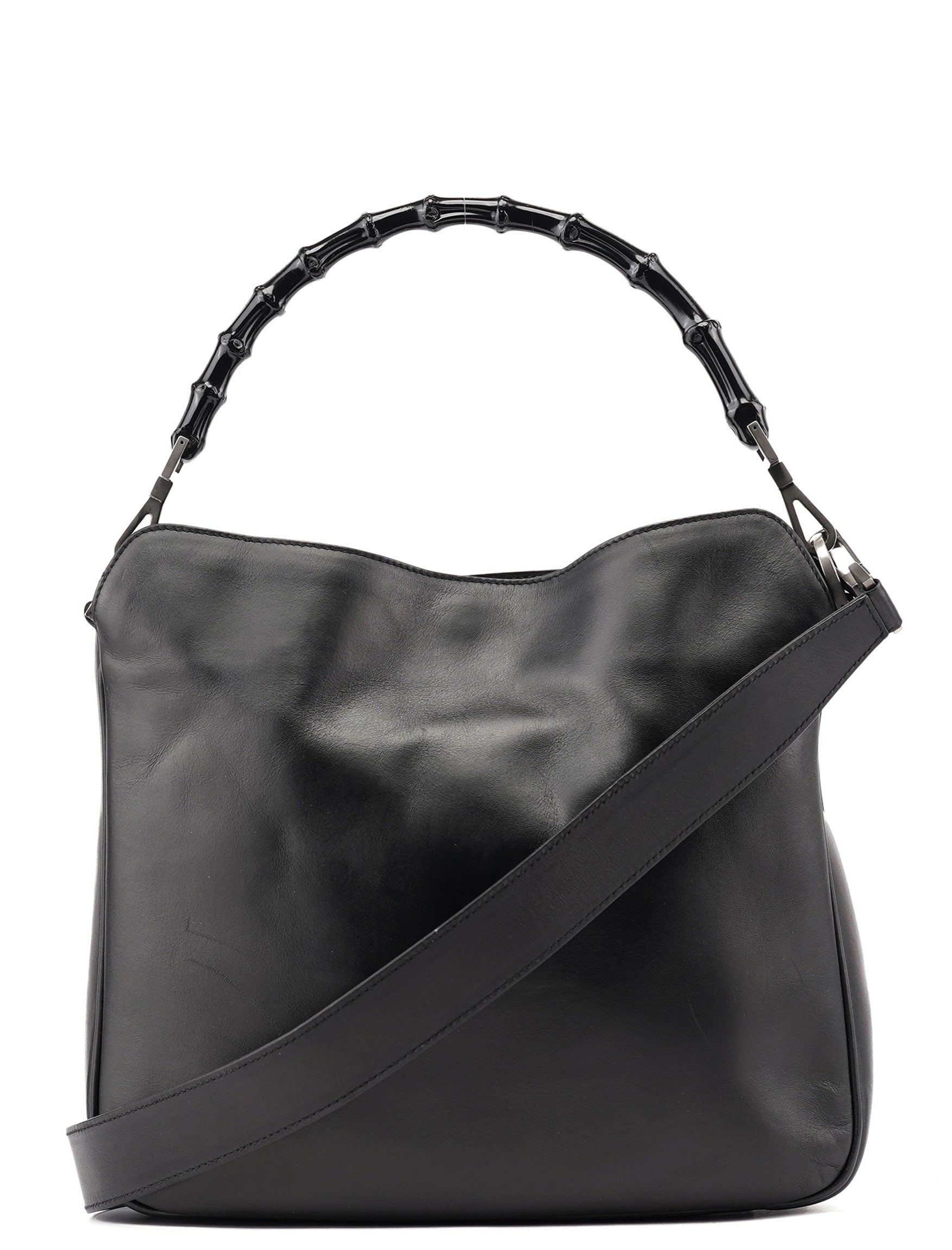 Designed by Tom Ford in the late 1990s, the Gucci Bamboo bag is crafted from black calfskin leather with silver-tone hardware and the house’s iconic bamboo handle. Featuring a magnetic closure and detachable strap, it opens to a satin-lined interior with a zip pocket—balancing refined elegance with everyday utility.