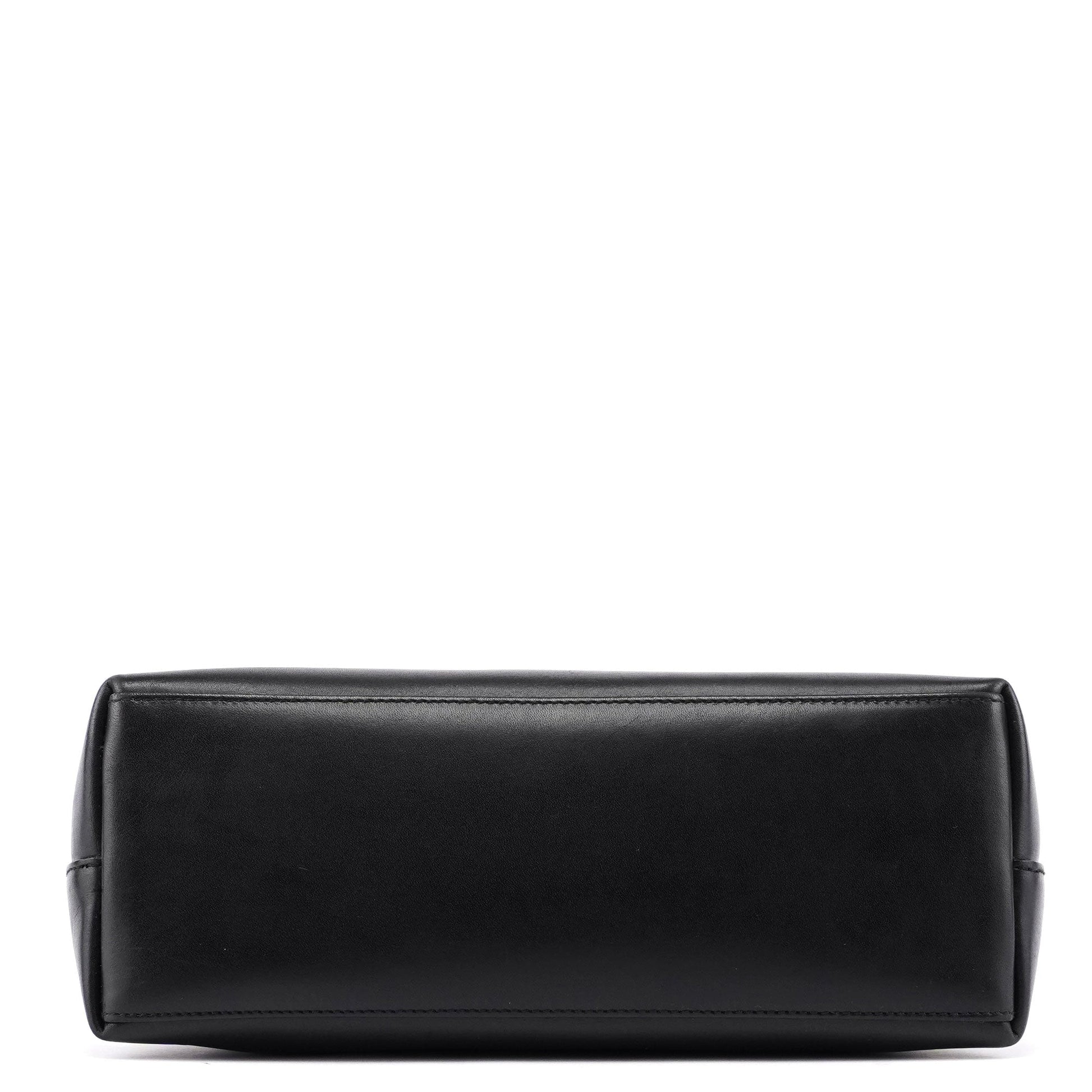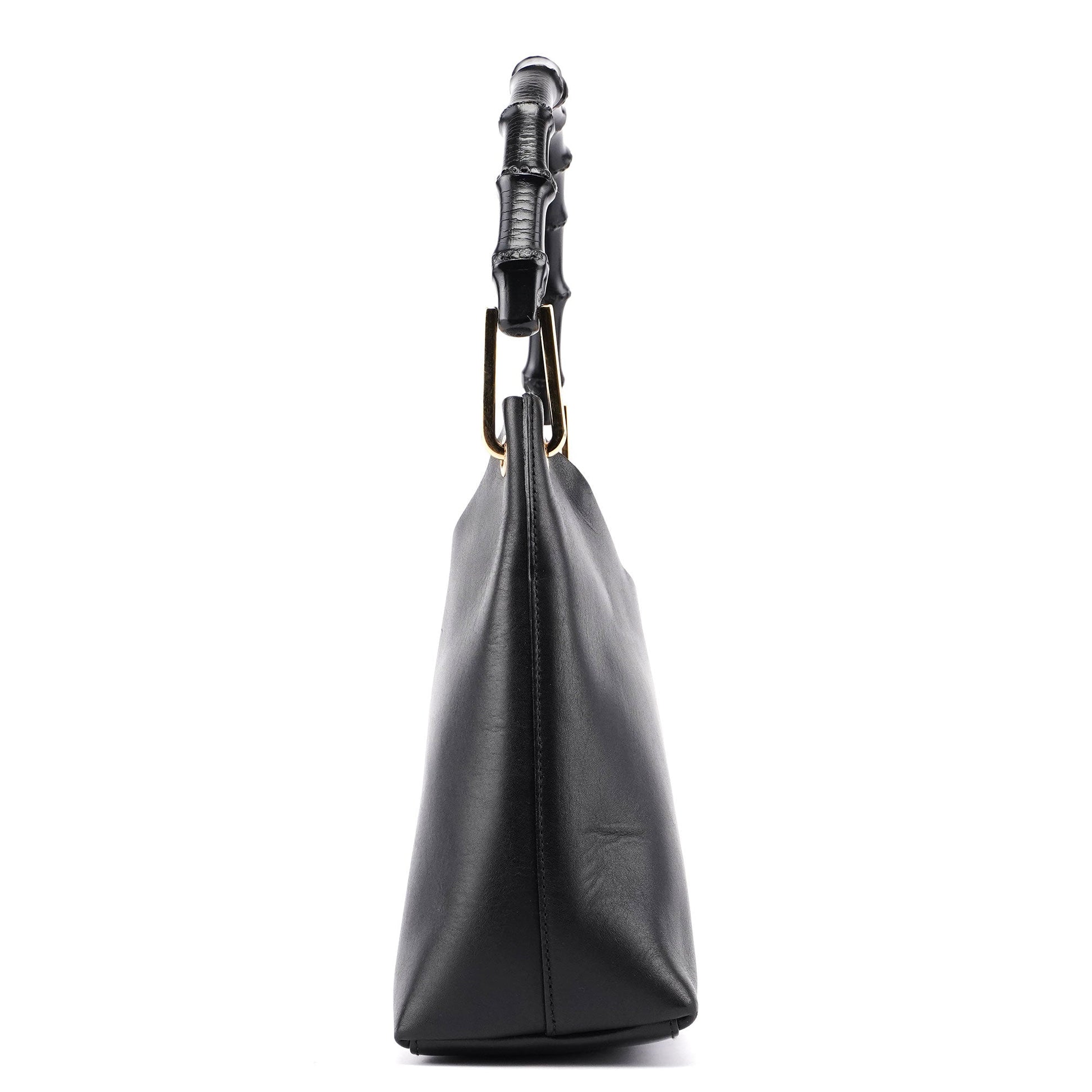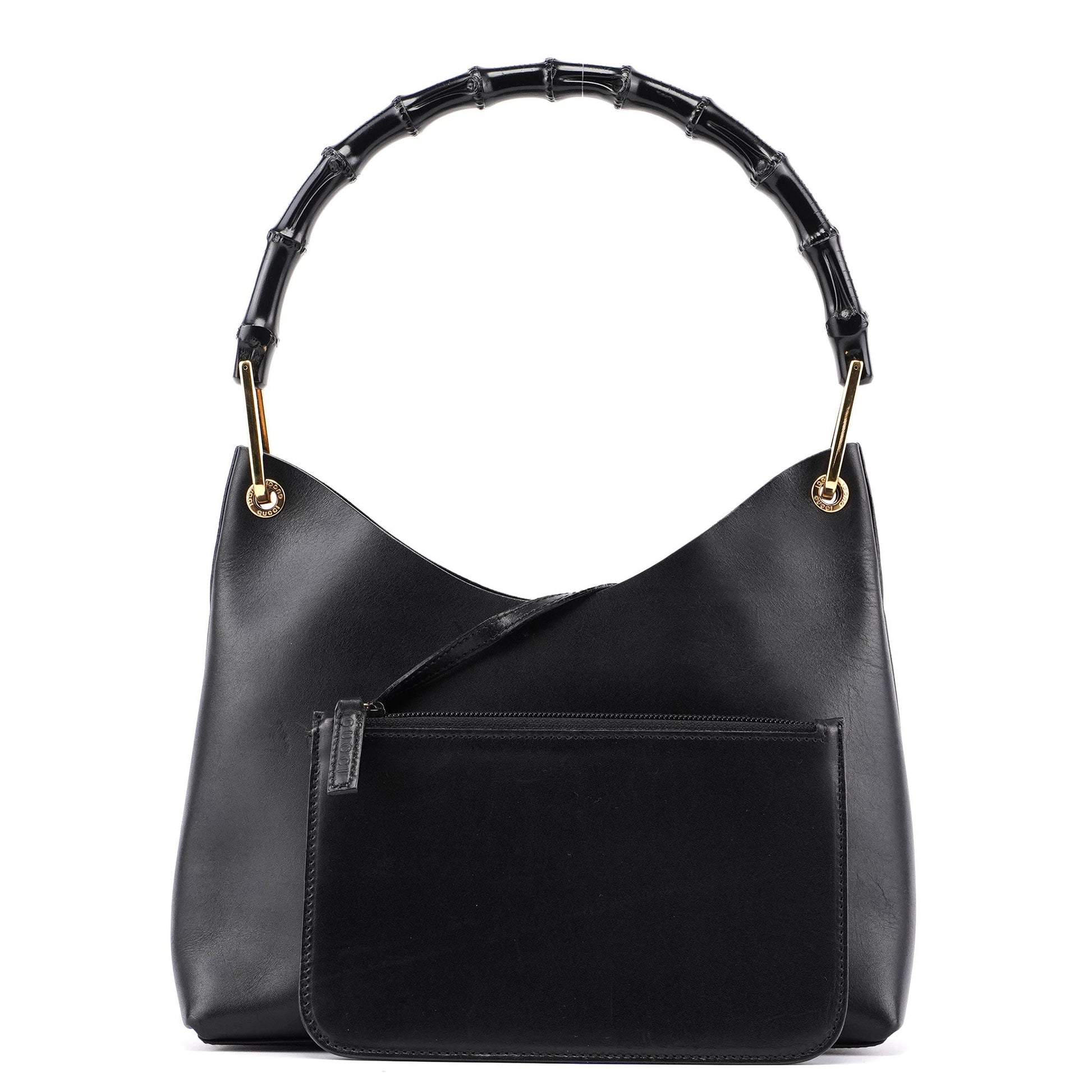 Black Leather Bamboo Shoulder Bag W/ Pouch