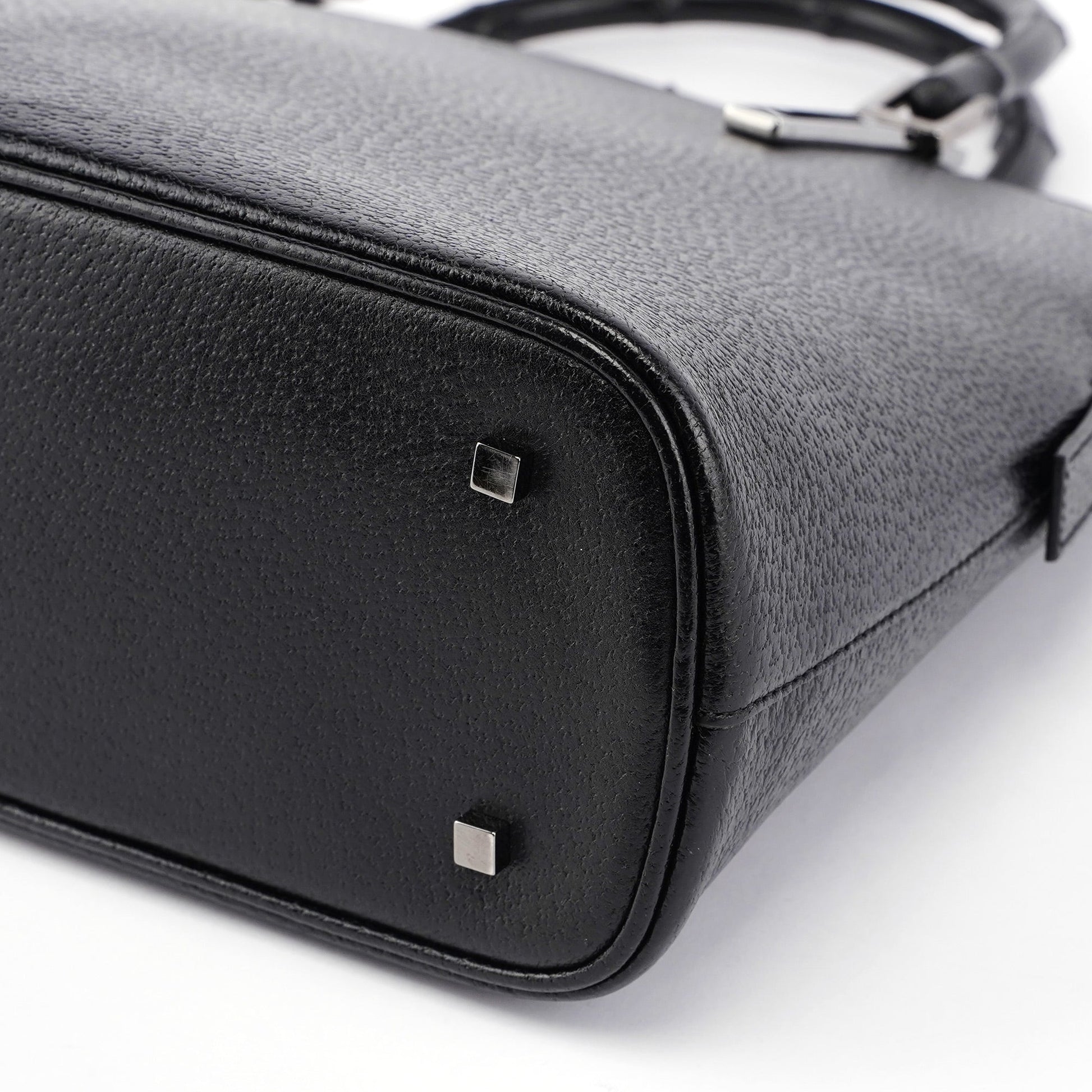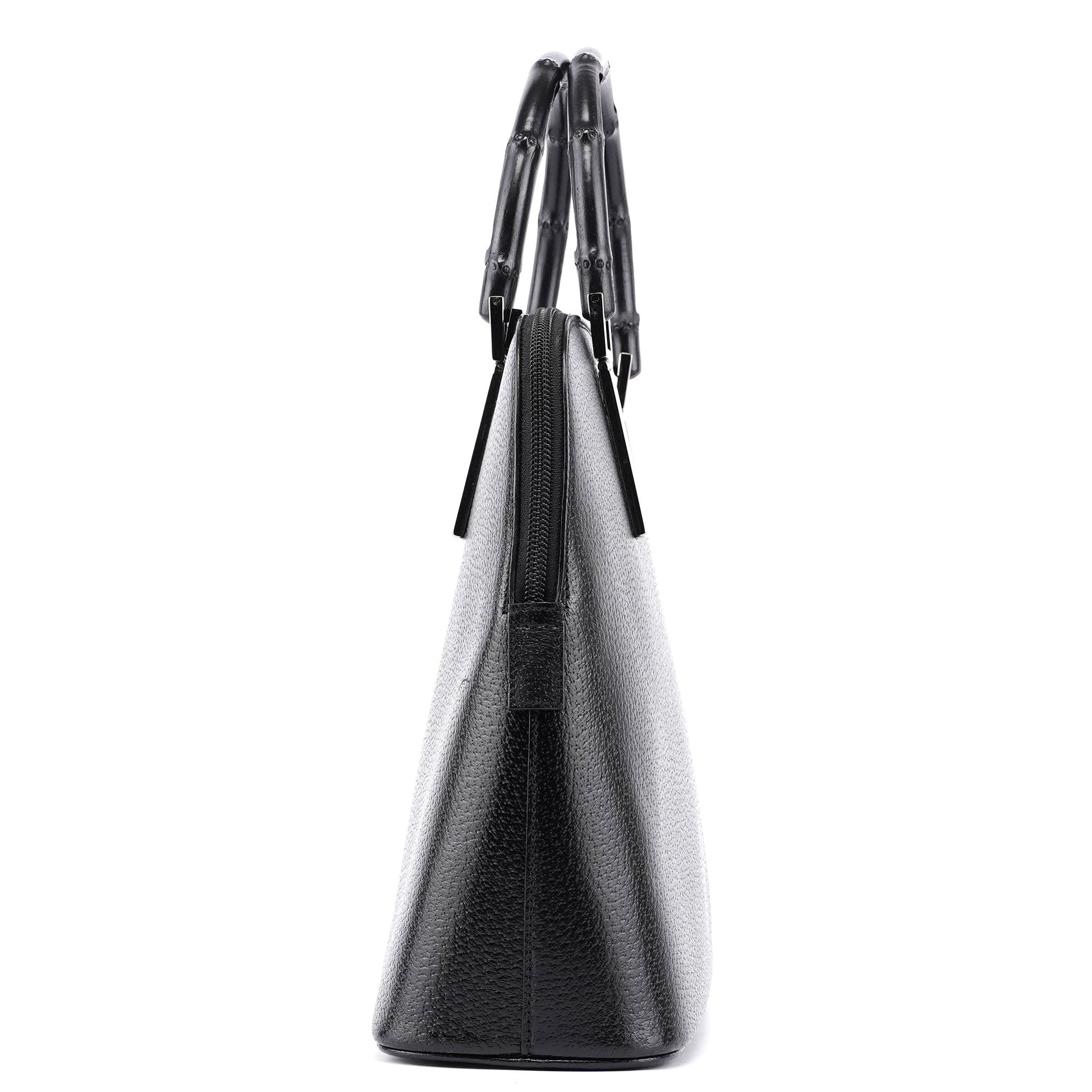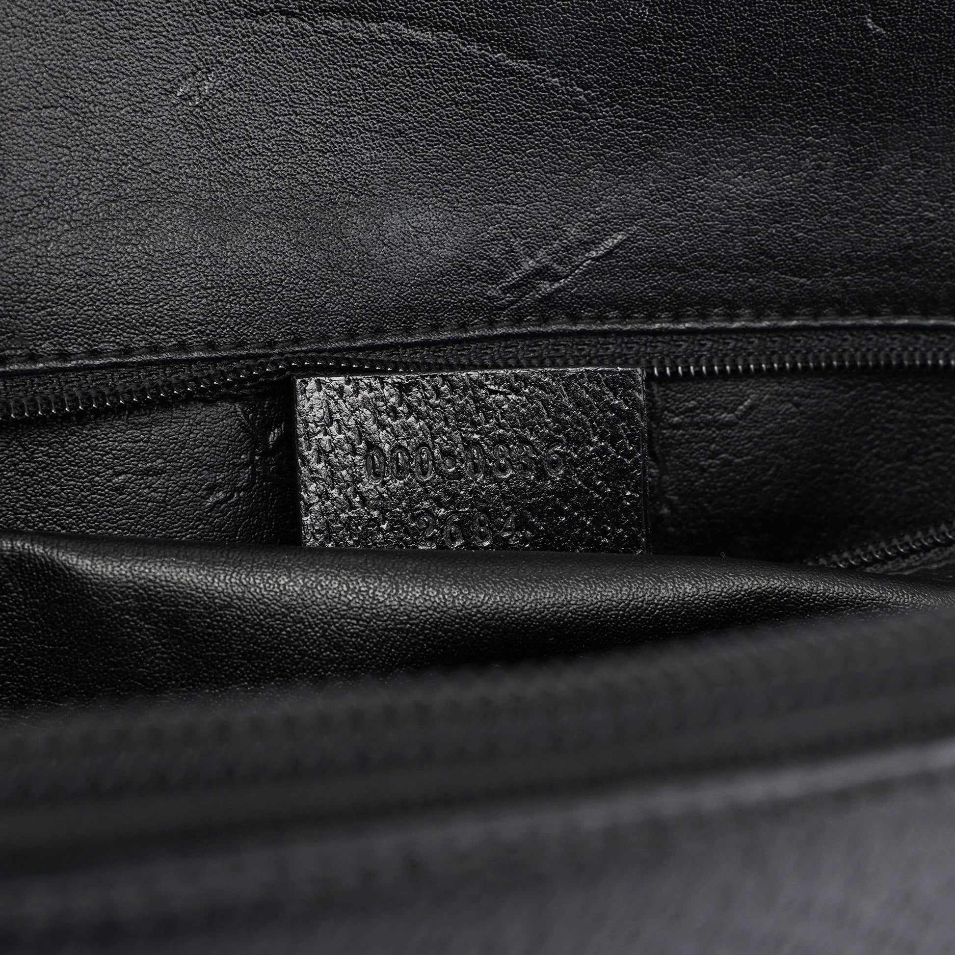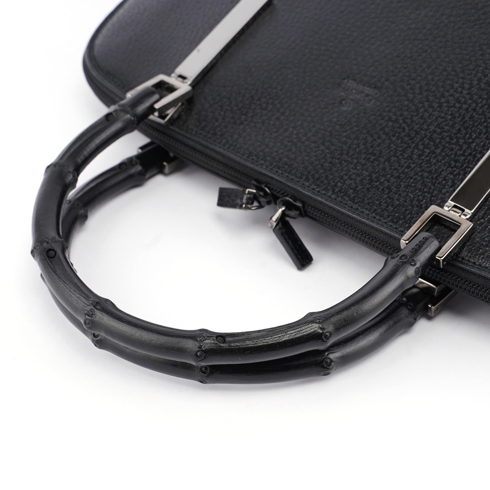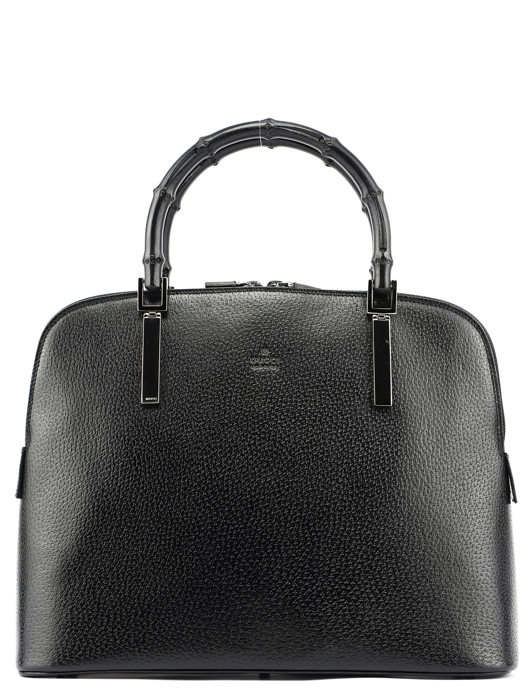 Handcrafted in black leather, this Gucci Bamboo 2-Way bag by Tom Ford from the late 1990s features dual black bamboo handles with Gucci logo engraving, silver-tone hardware, and a zipper closure. The interior is lined in leather with a zipper pocket. The Gucci logo is embossed at the front, showcasing timeless elegance. The bag comes with a removable shoulder strap.