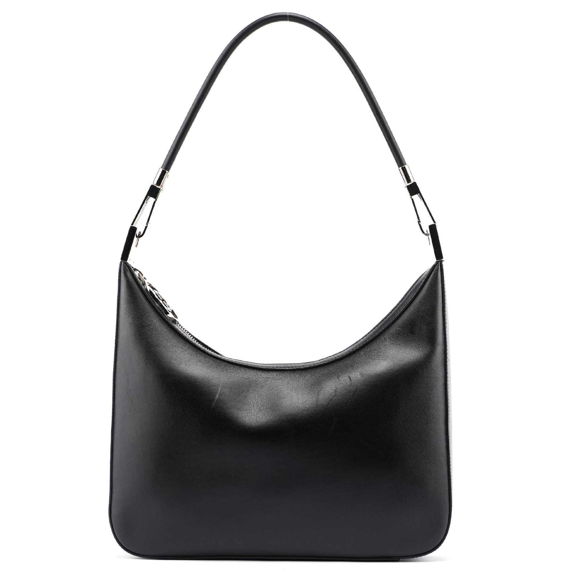 Black Leather Hobo Shoulder Bag