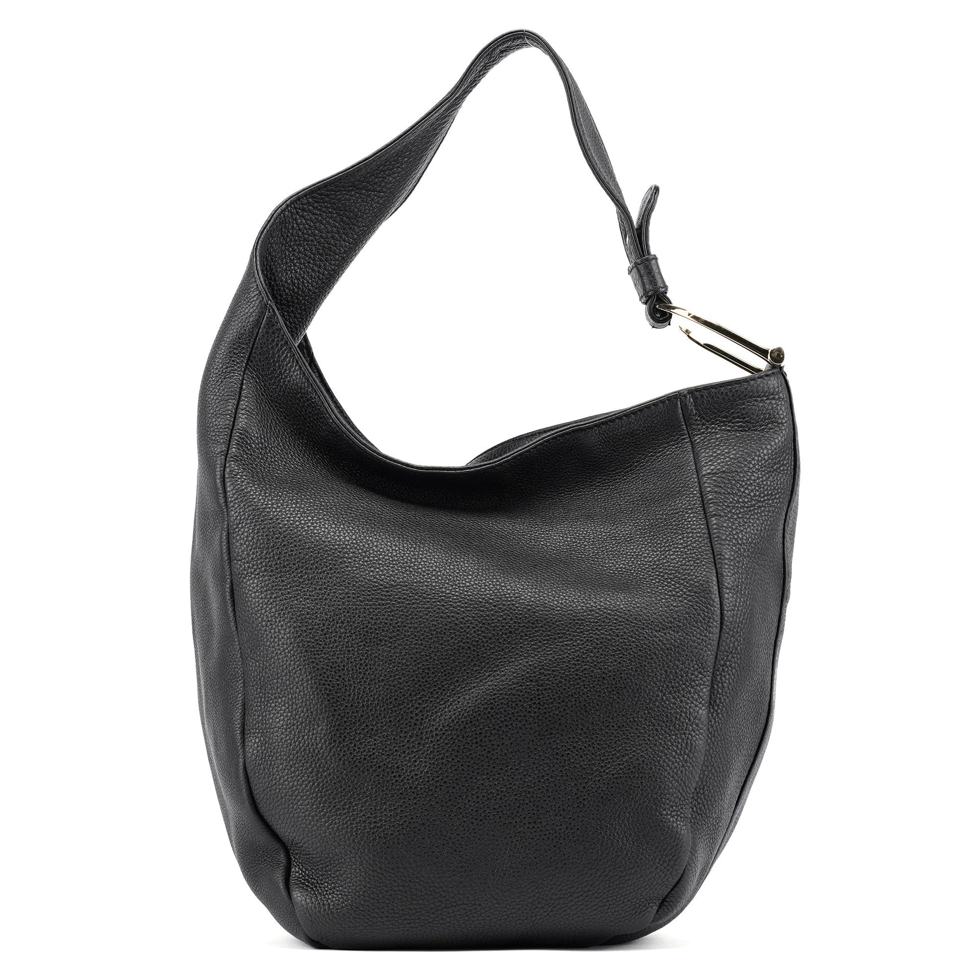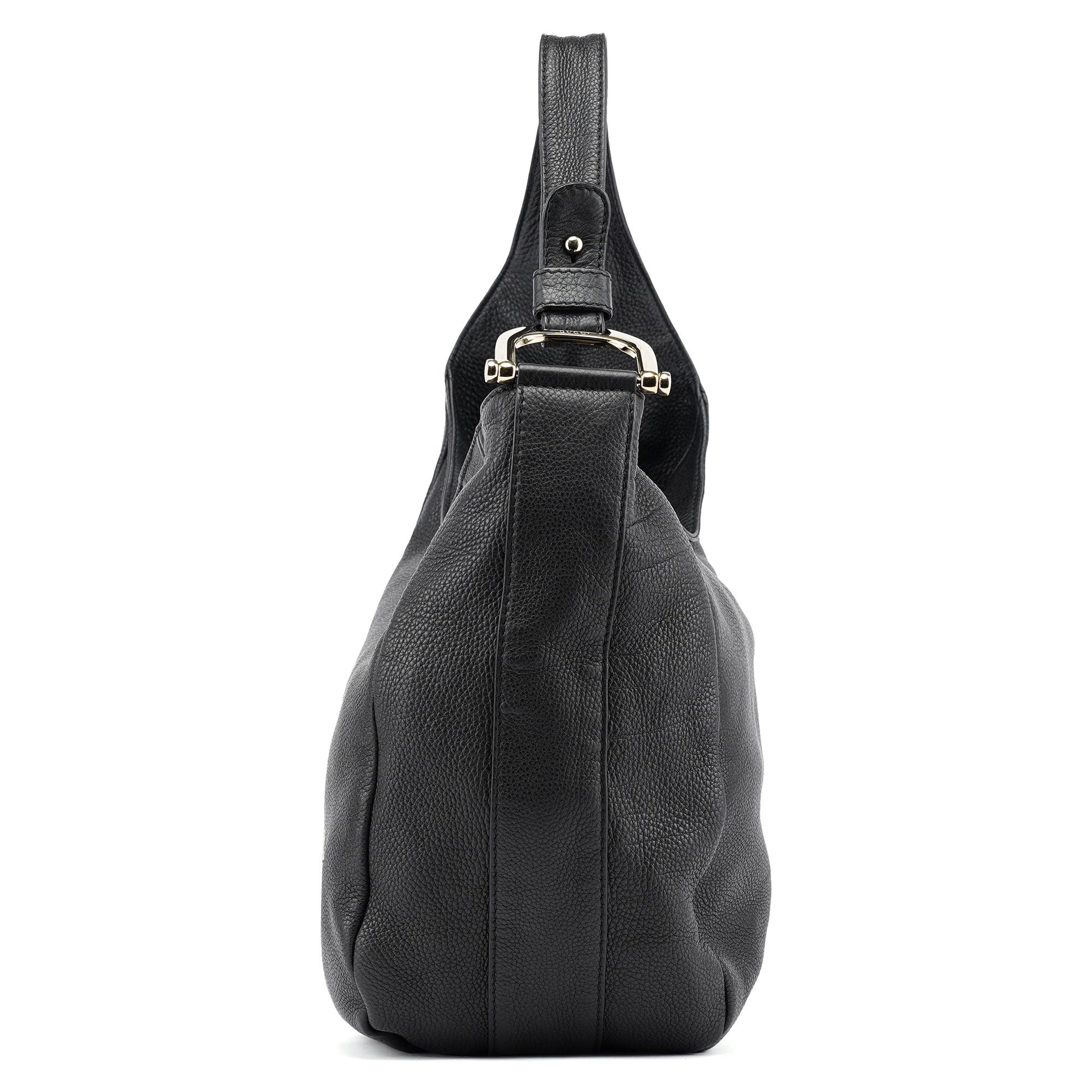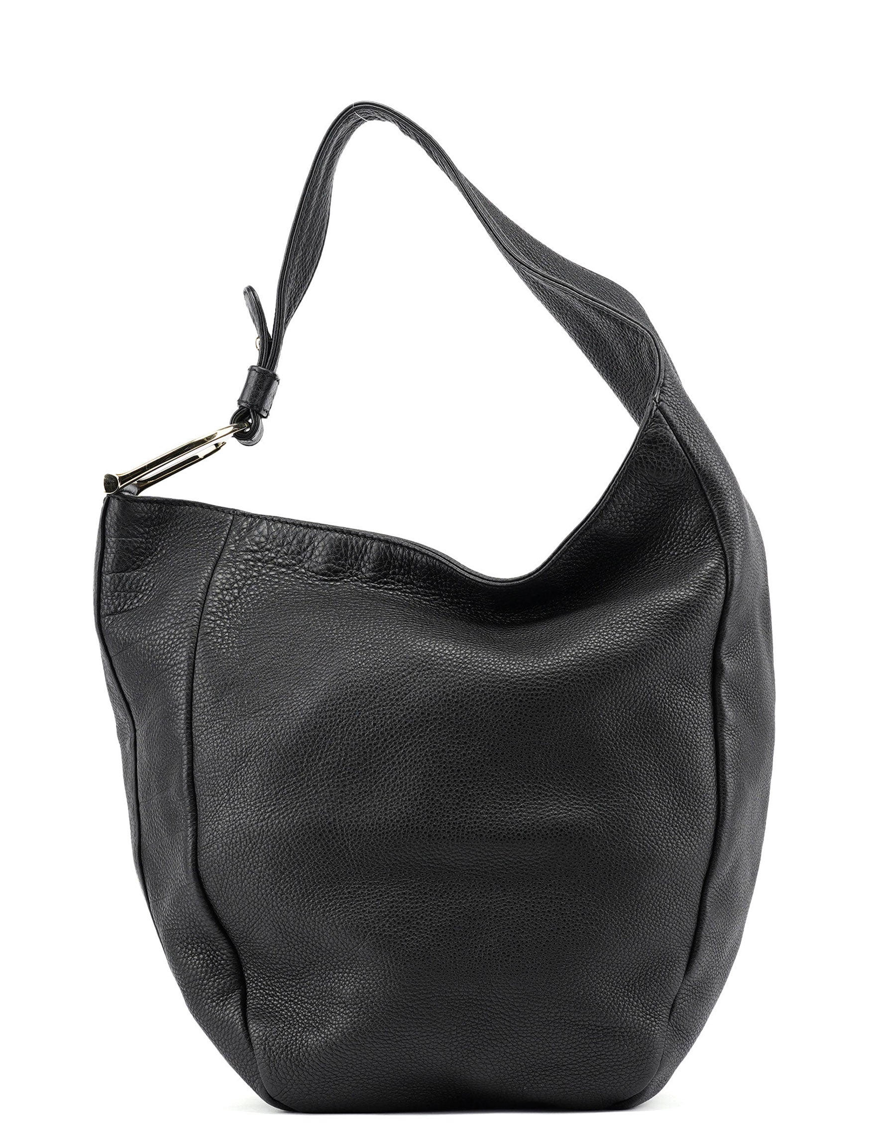 Black Leather Hobo Shoulder Bag