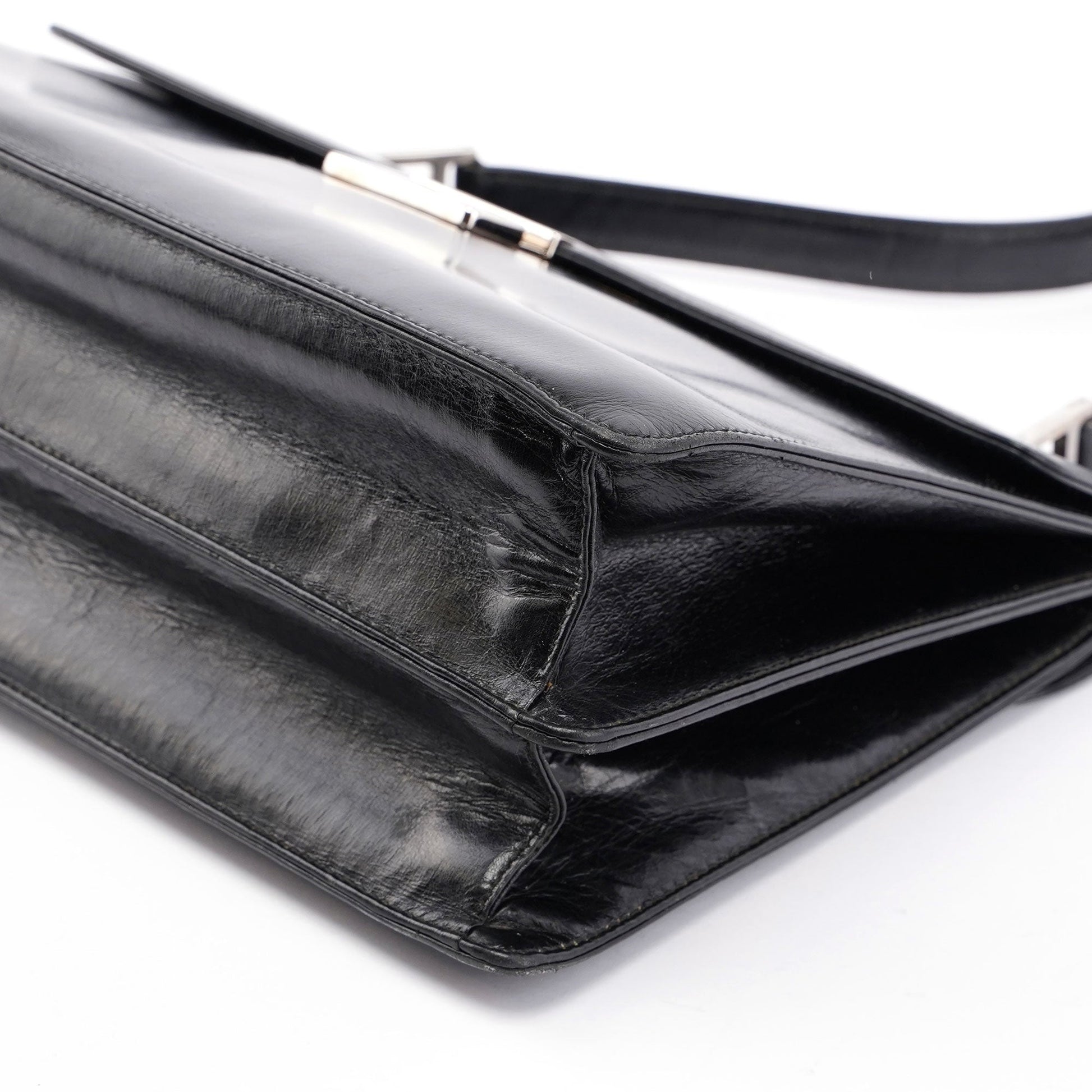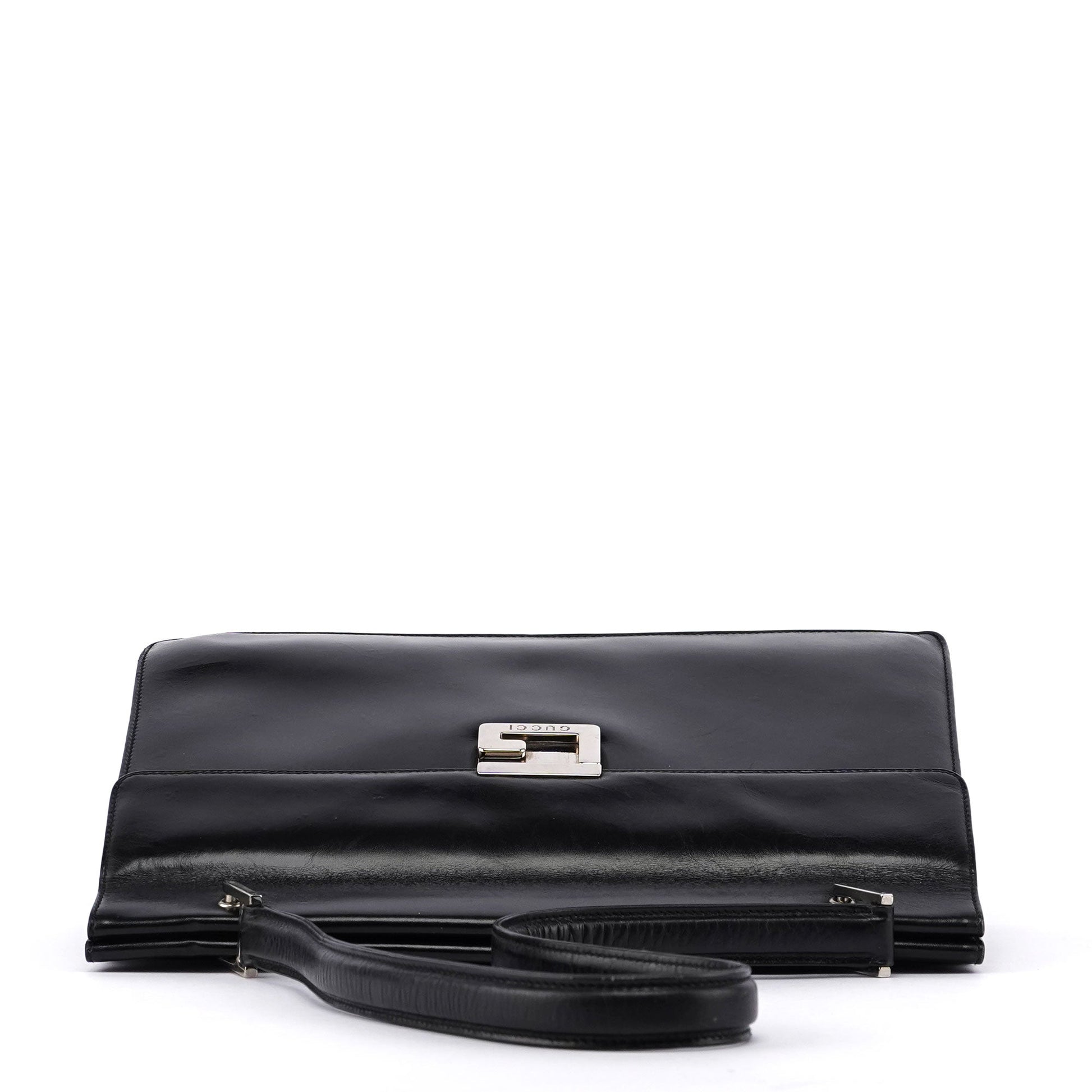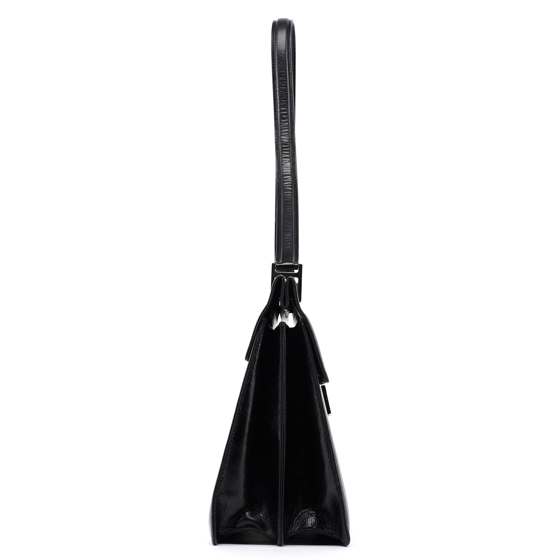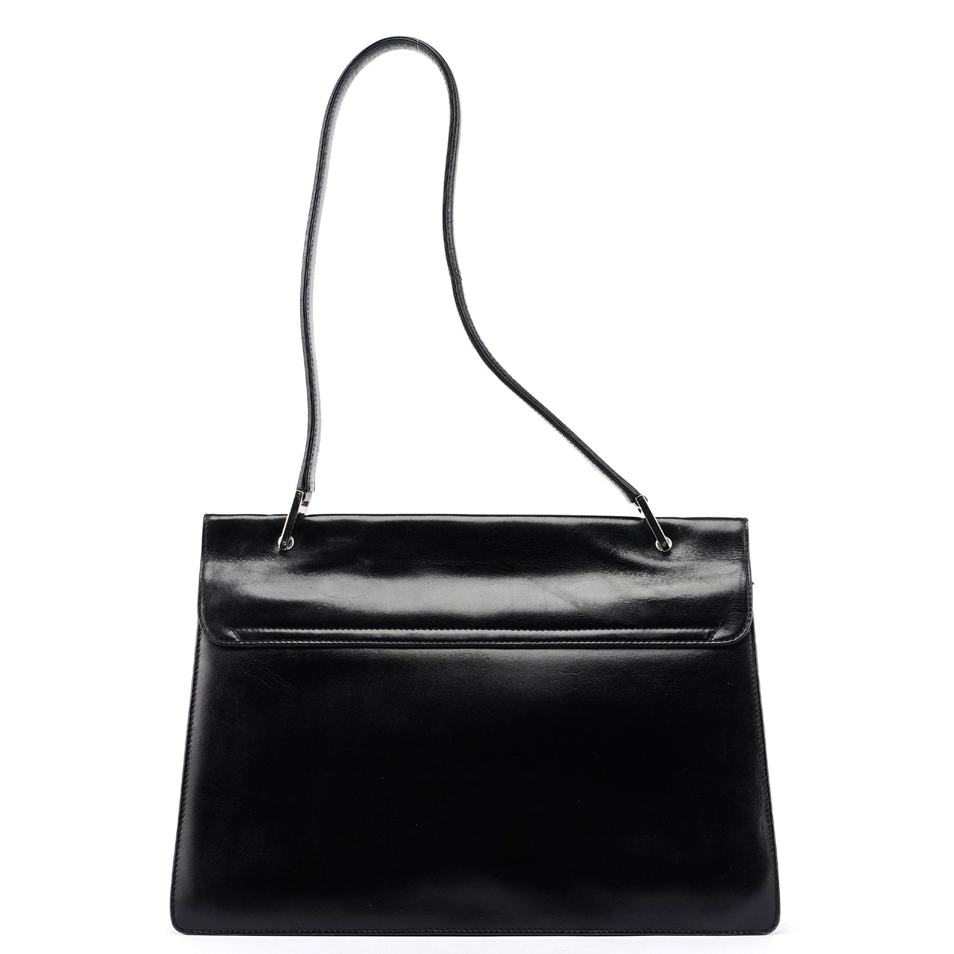 Introducing the Gucci Square G shoulder bag, designed by Tom Ford in the late 1990s. Crafted from black leather, it features silver-tone hardware engraved with the Gucci logo. The interior is lined in red leather and boasts two compartments along with an interior pocket, marrying style with functionality.