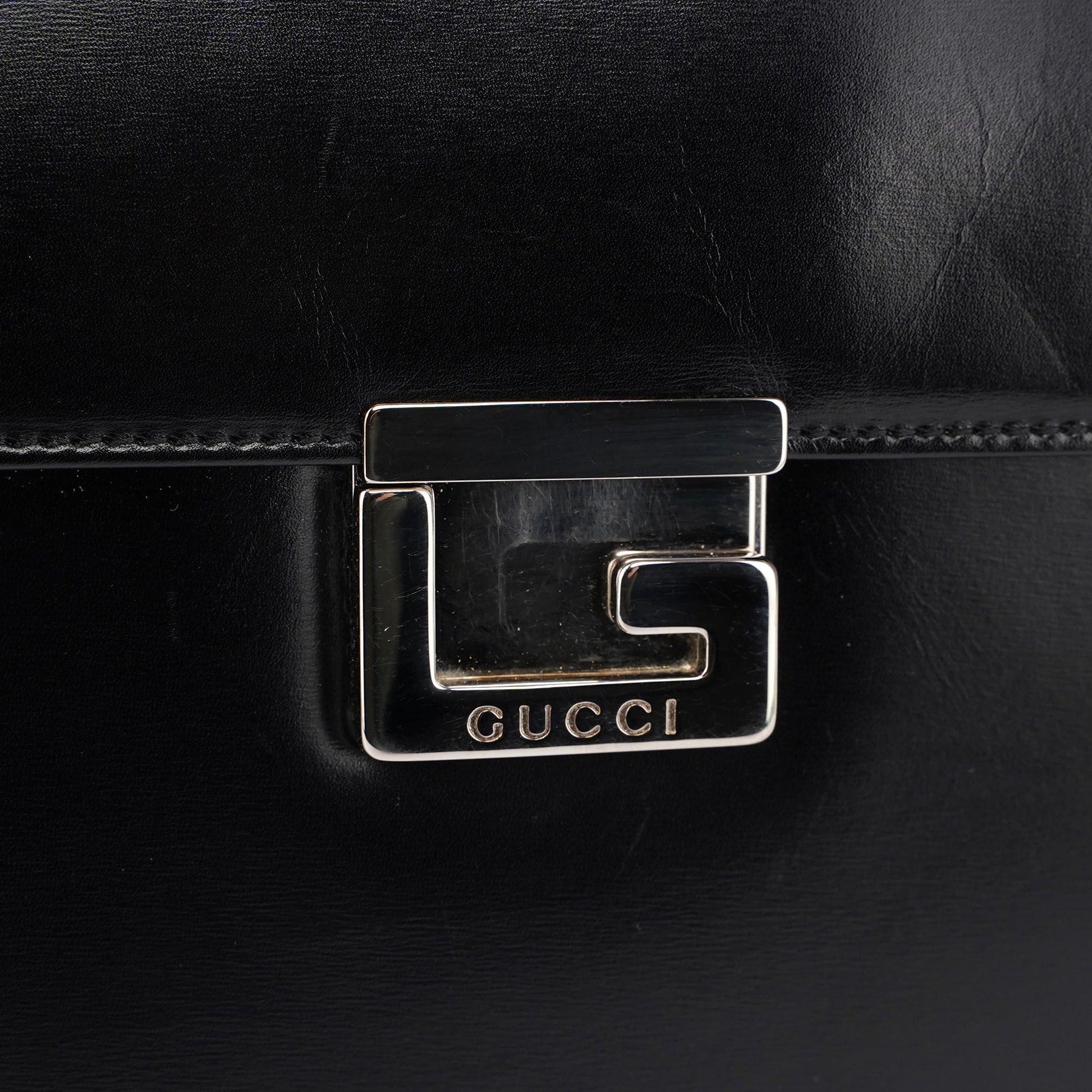 Black Leather Square G Bag