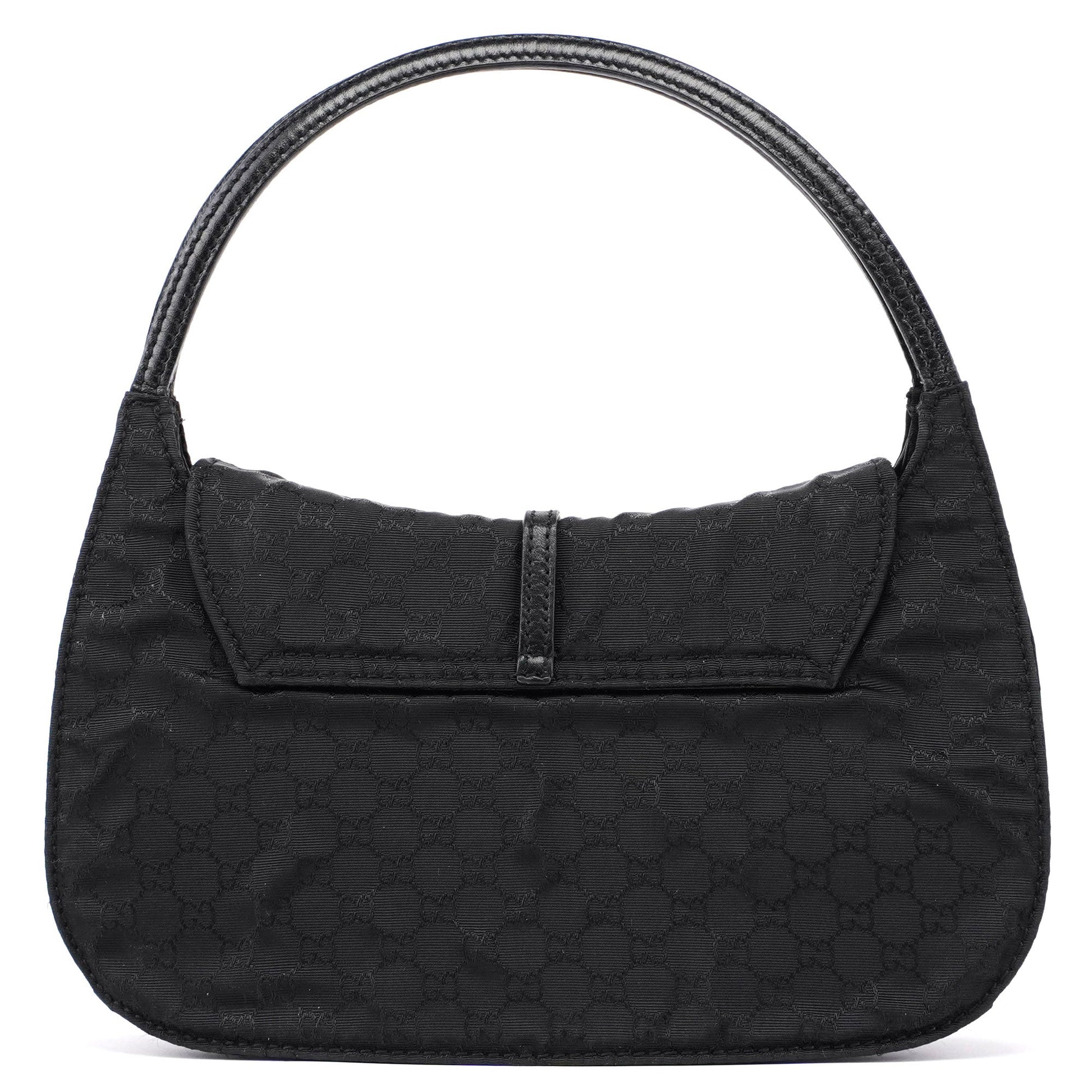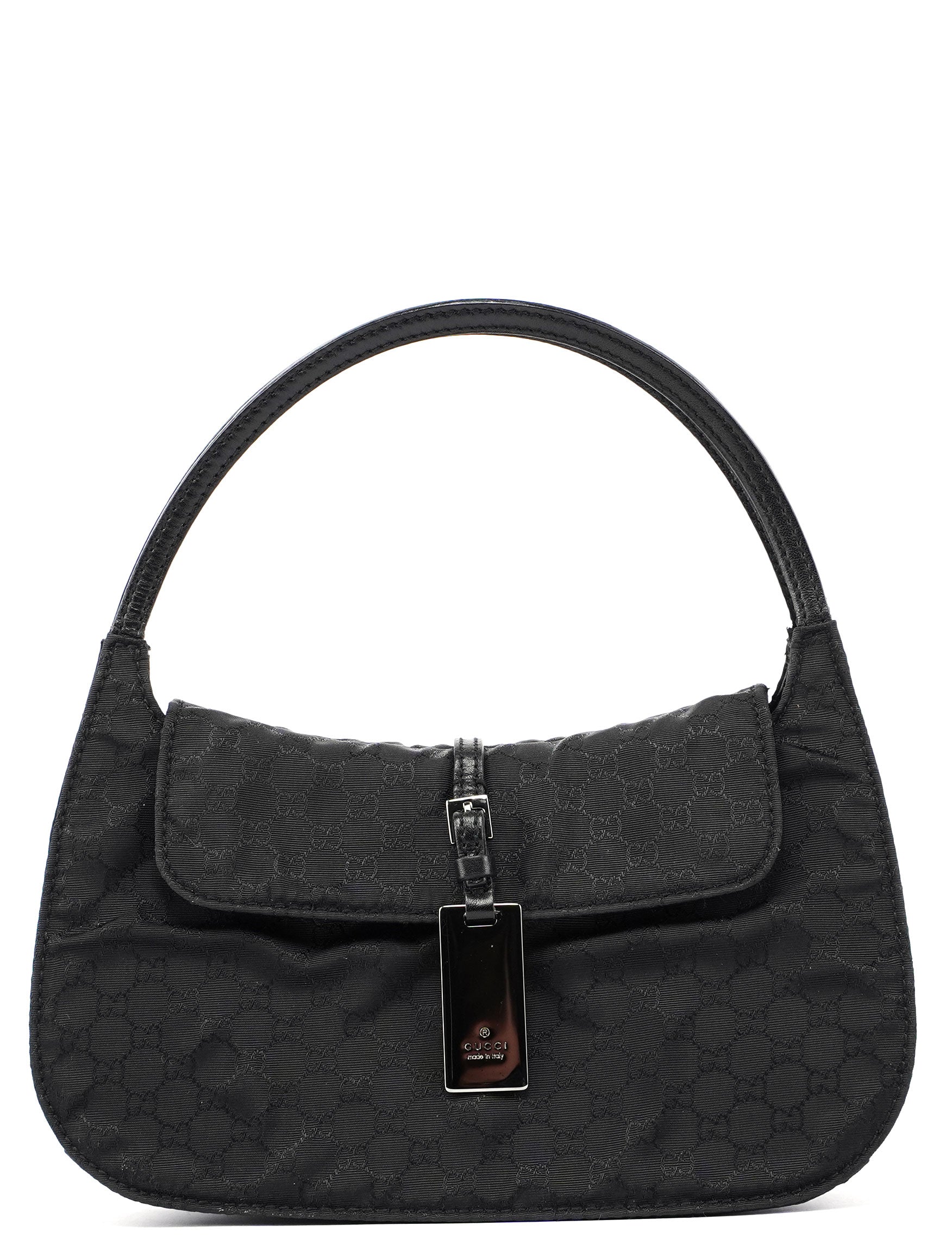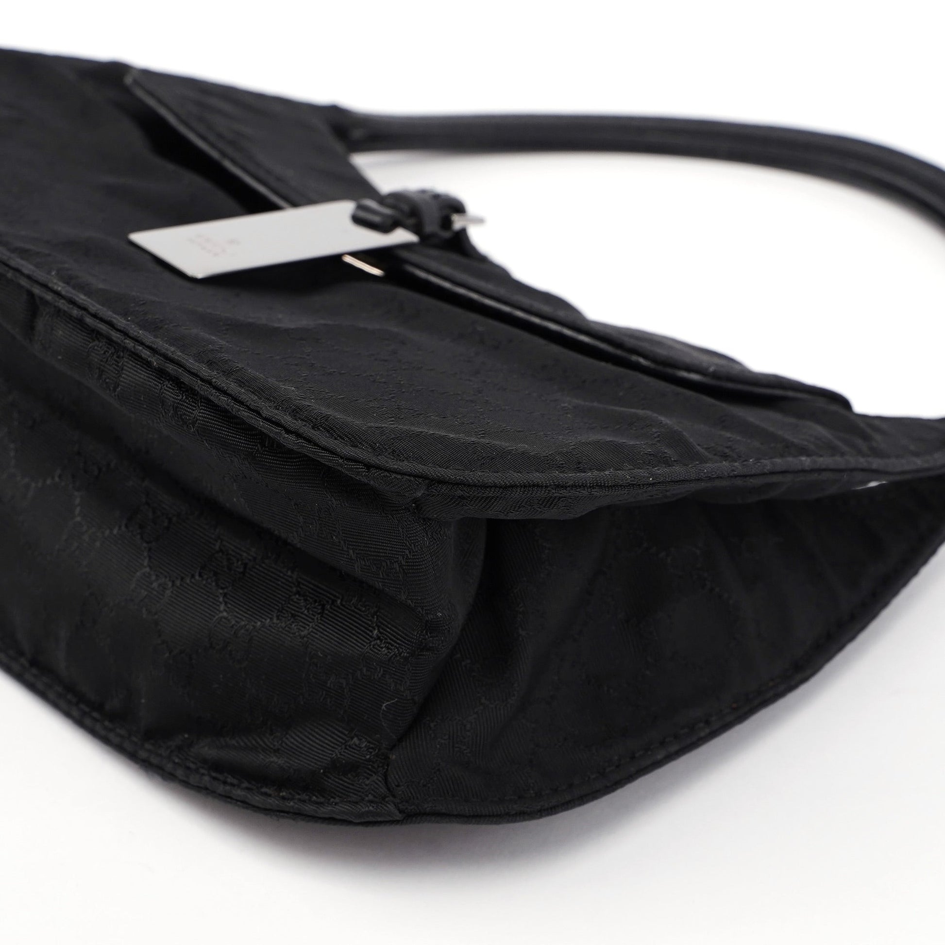 Handcrafted from black micro GG monogram canvas, this Gucci Micro GG bag by Tom Ford from the late 1990s features silver-tone hardware engraved with the Gucci logo, a dual leather handle and trim, and a magnetic closure. The interior is lined in cotton with an interior pocket, showcasing timeless elegance. A silver-tone Gucci logo bangle graces the front.