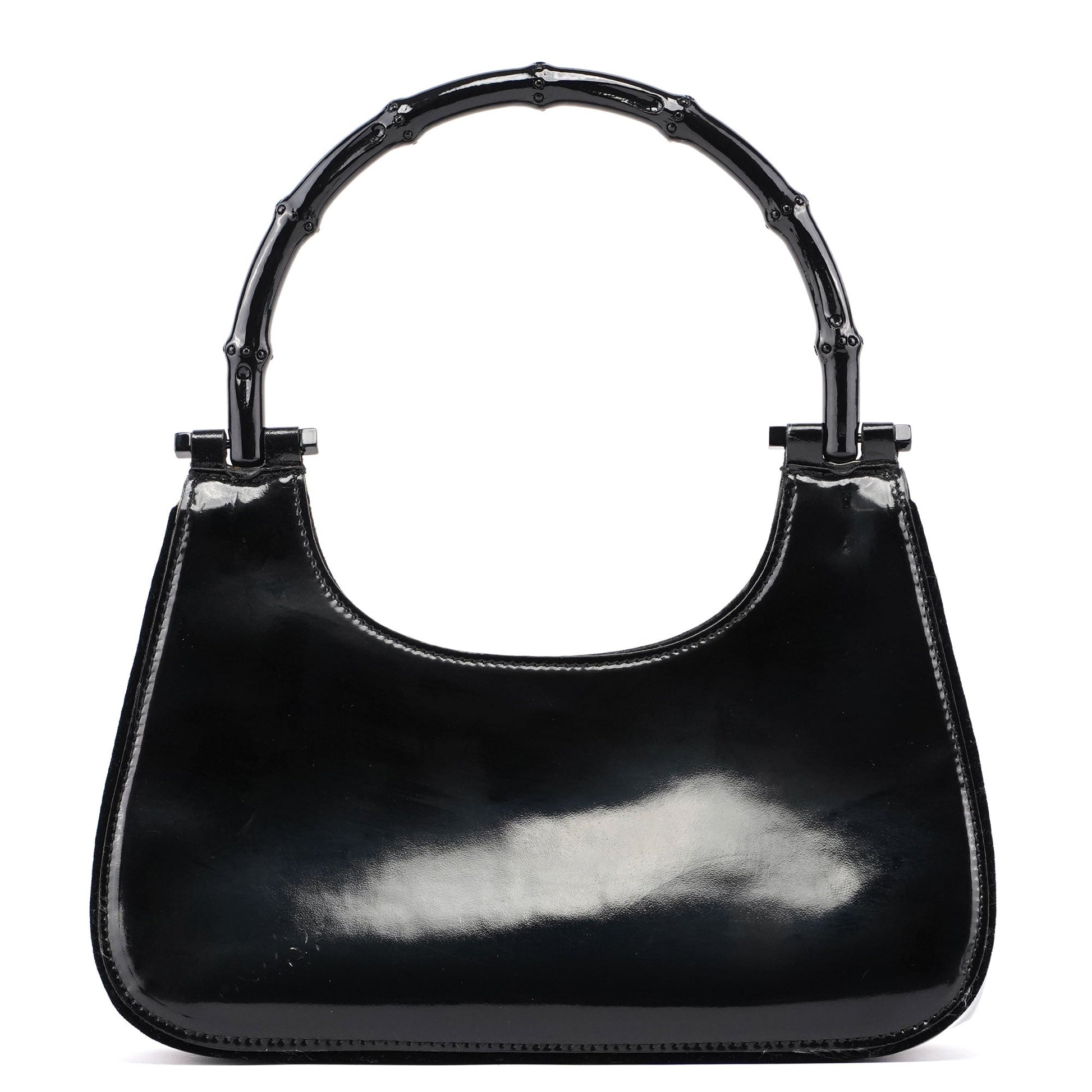 005 0776 Black Patent Leather Bamboo Shoulder Bag