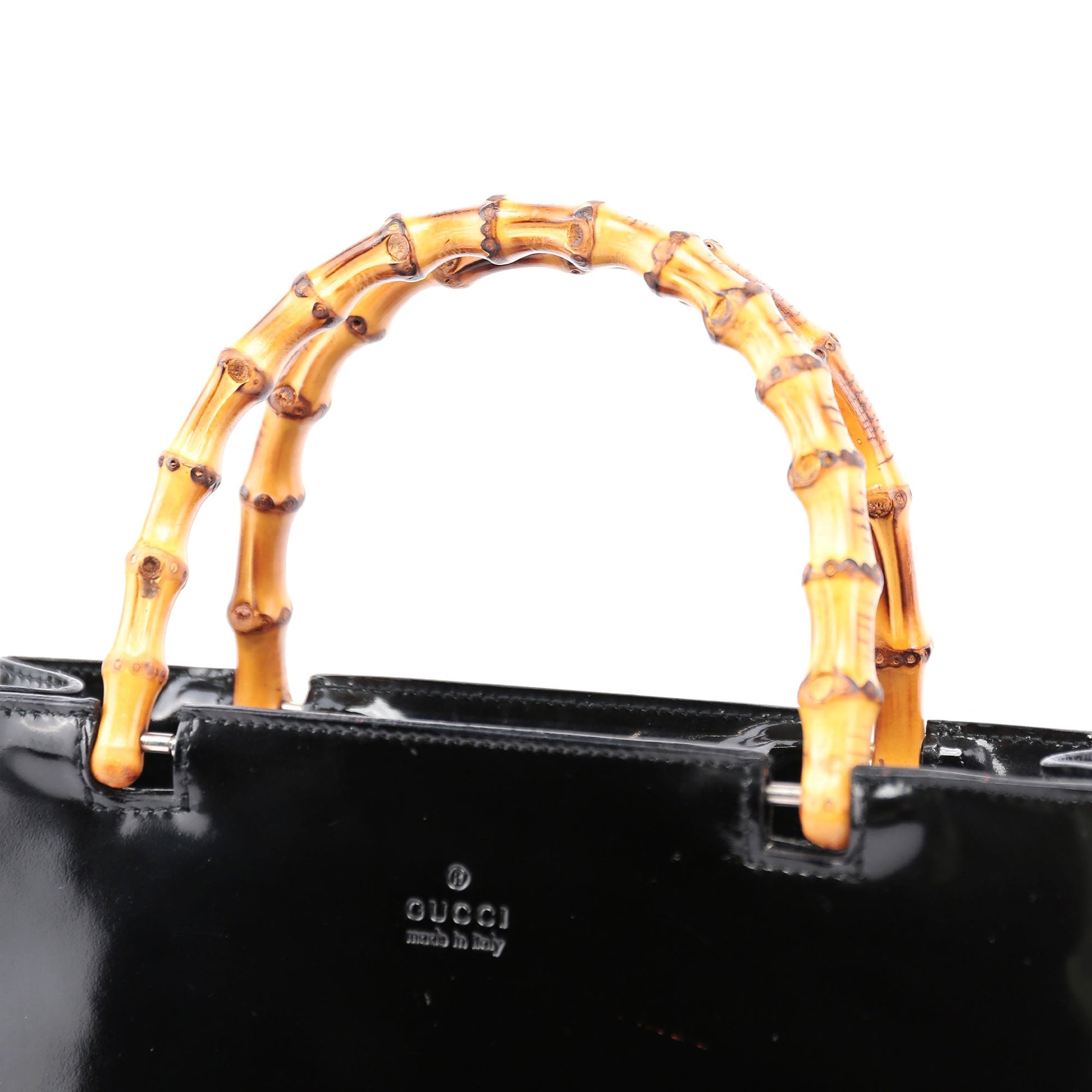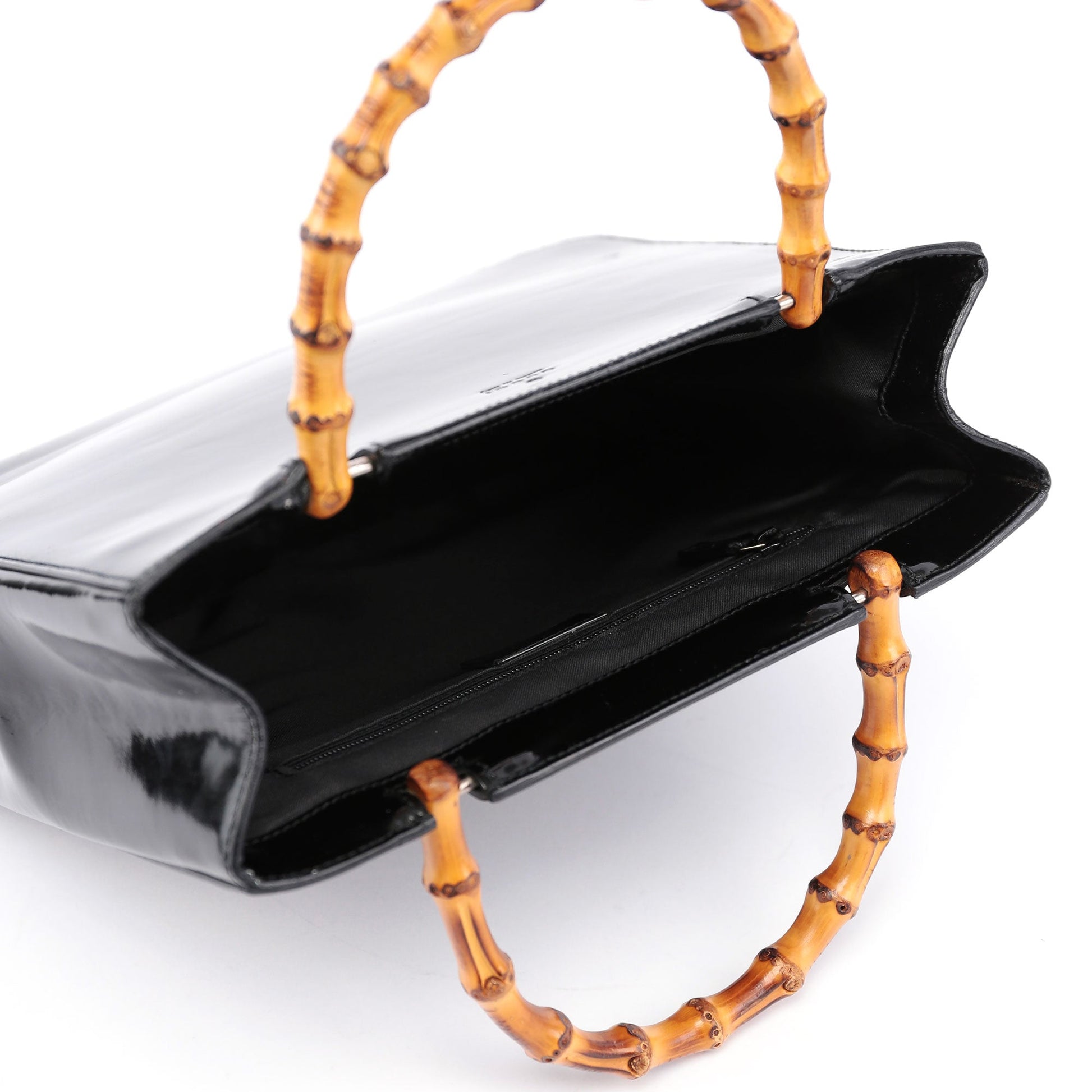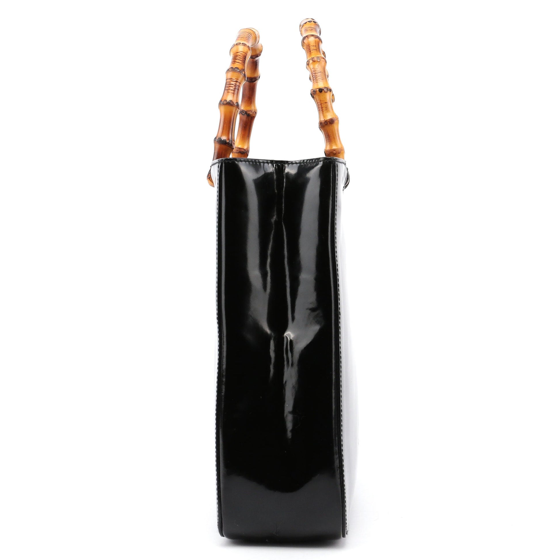 Black Patent Leather Bamboo Tote
