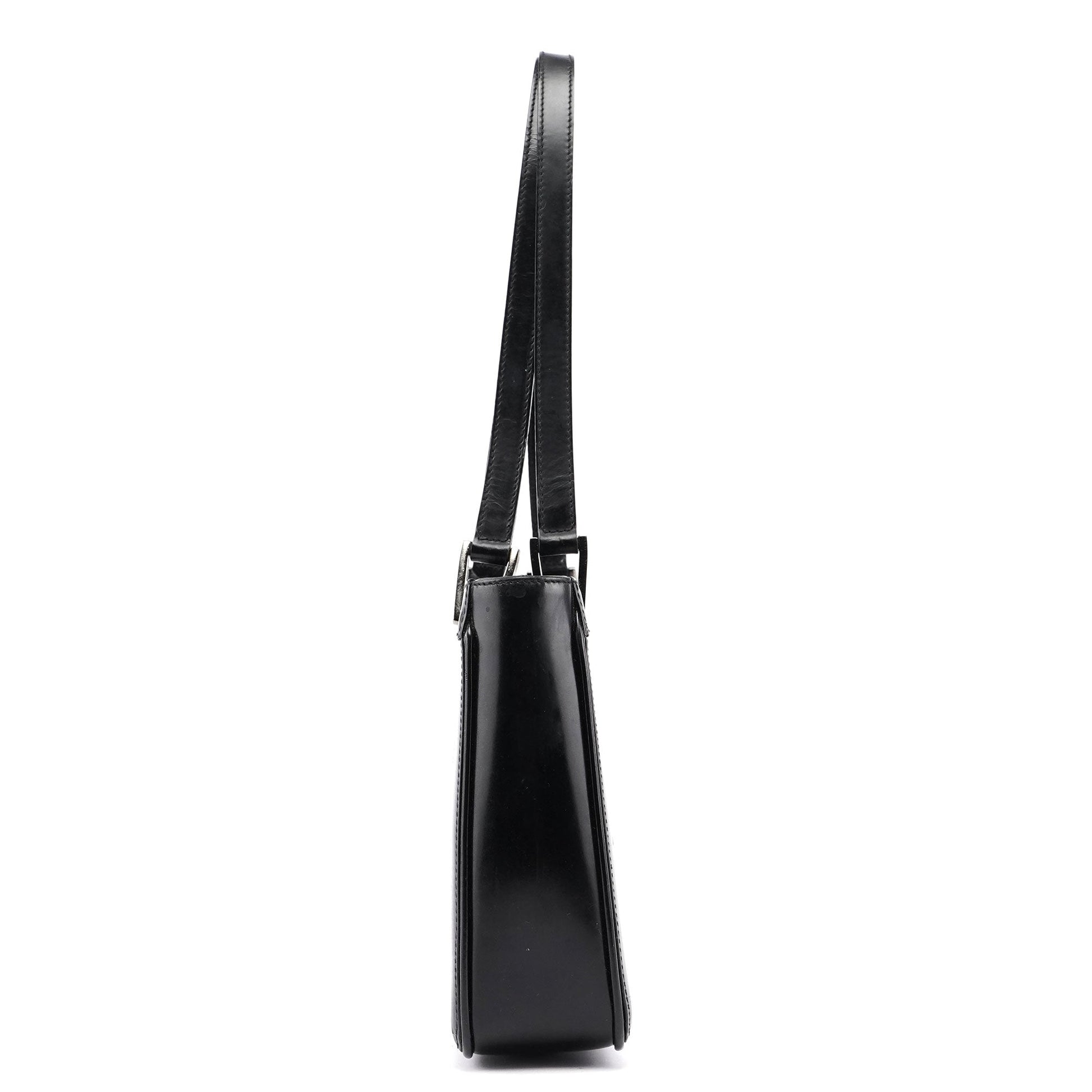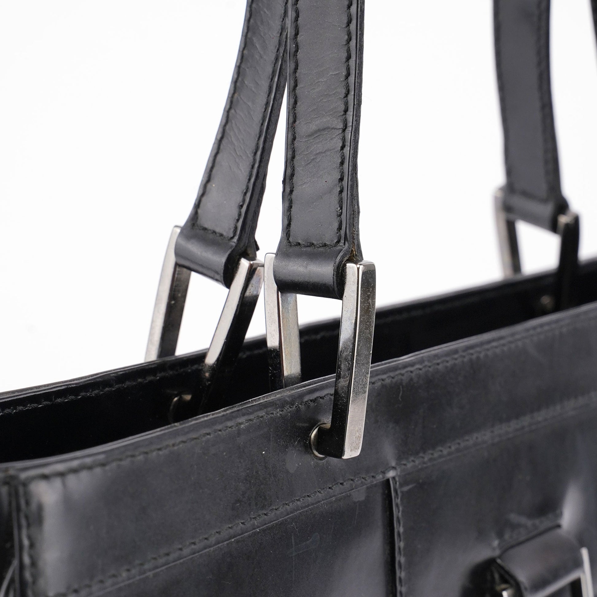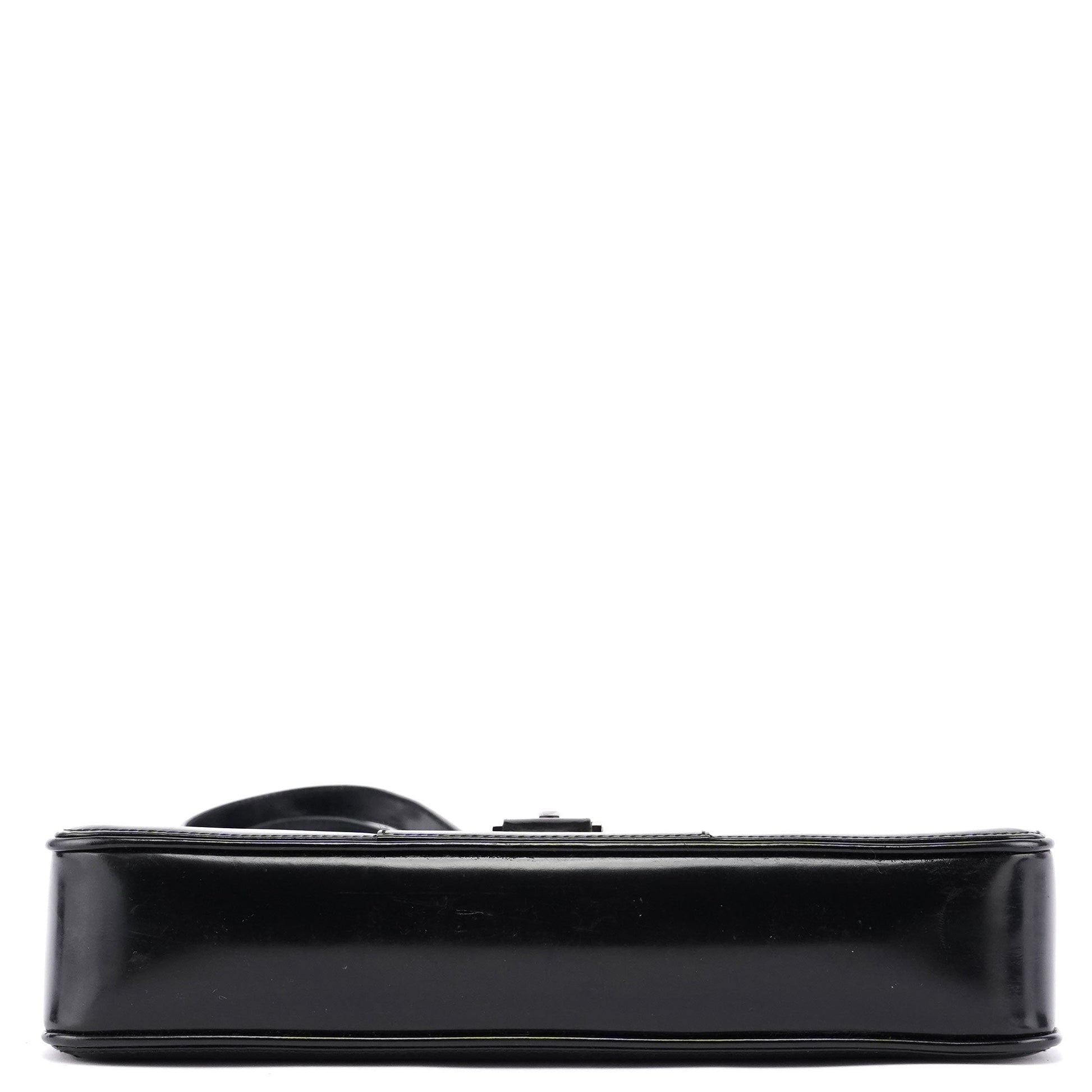 Designed by Tom Ford in the late 1990s, the Gucci Jackie tote epitomizes elegance. Handcrafted in black patent leather, it features silver-tone hardware engraved with the Gucci logo. The Jackie clasp closure adds a touch of sophistication, while the satin-lined interior boasts a convenient zipper pocket.