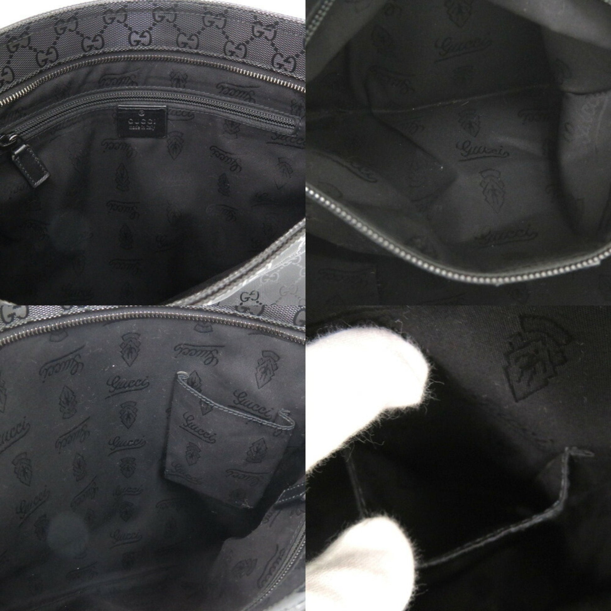 Gucci Black Silver Coated Canvas Leather Shoulder Bag ()