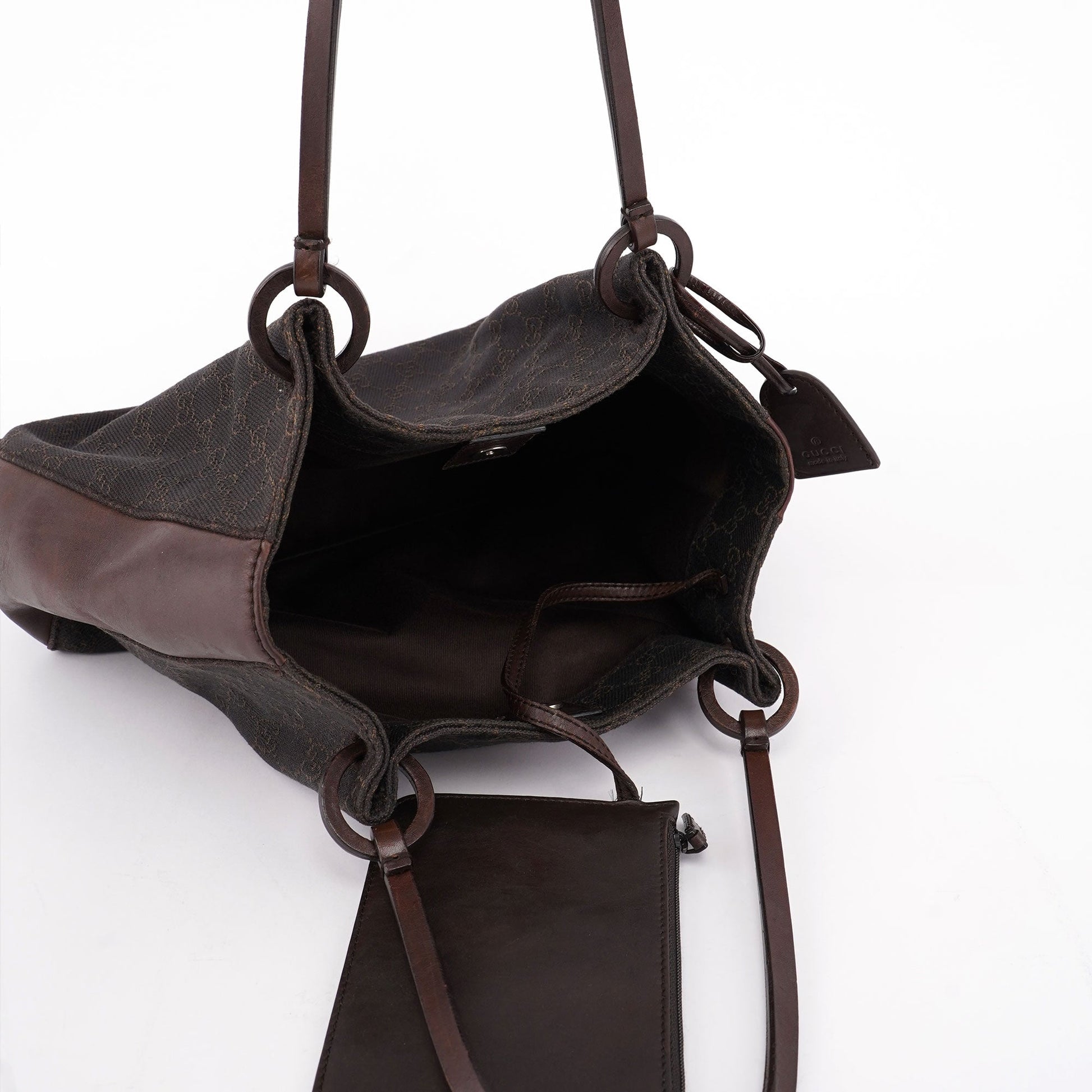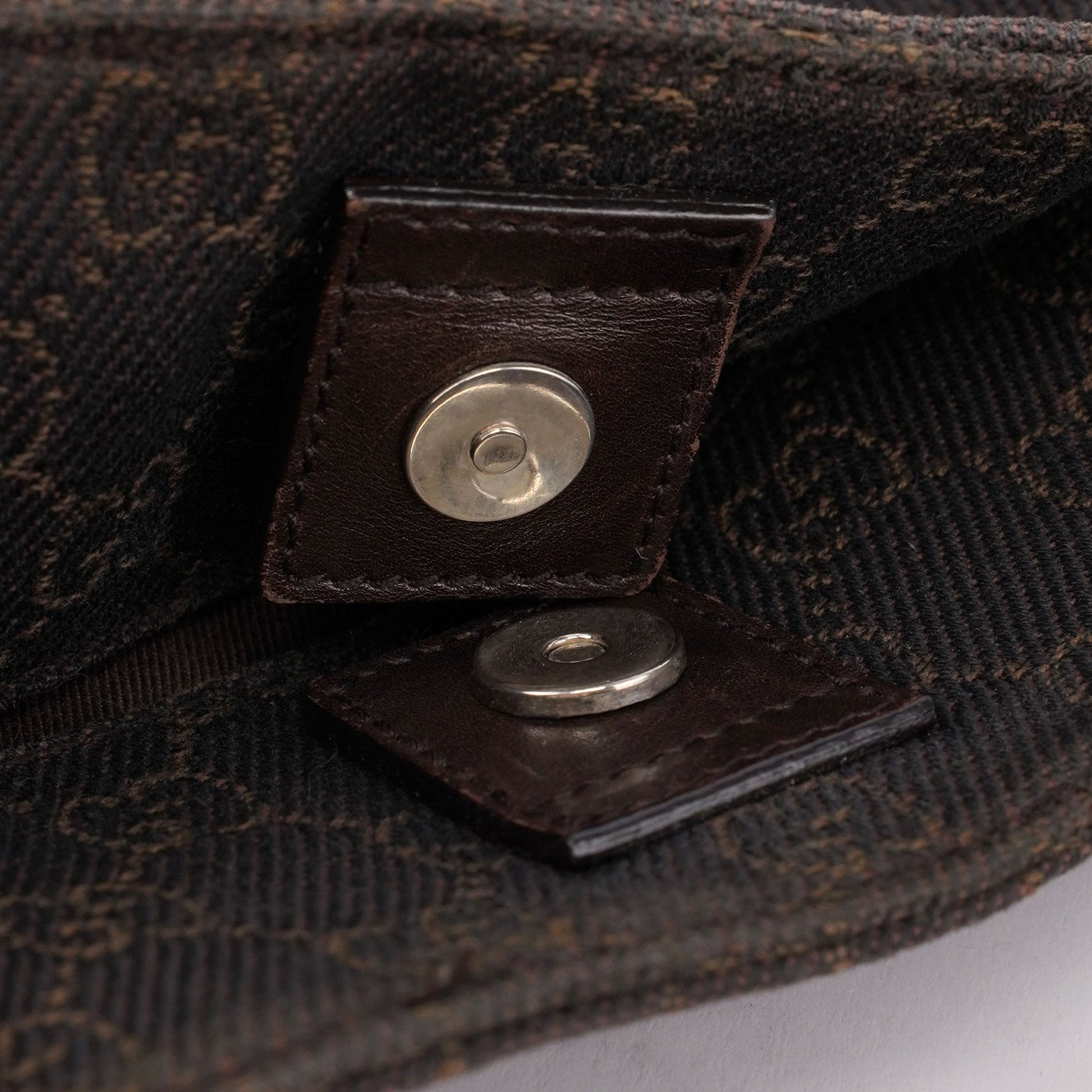 Explore elegance with the Gucci GG Monogram bag by Tom Ford, circa late 1990s. This exquisite piece combines brown GG canvas with brown calfskin leather trim. Its secure magnetic closure and the the attached pouch offers practicality, while the cotton-lined interior offer luxury. The subtle Gucci charm adds a touch of heritage.