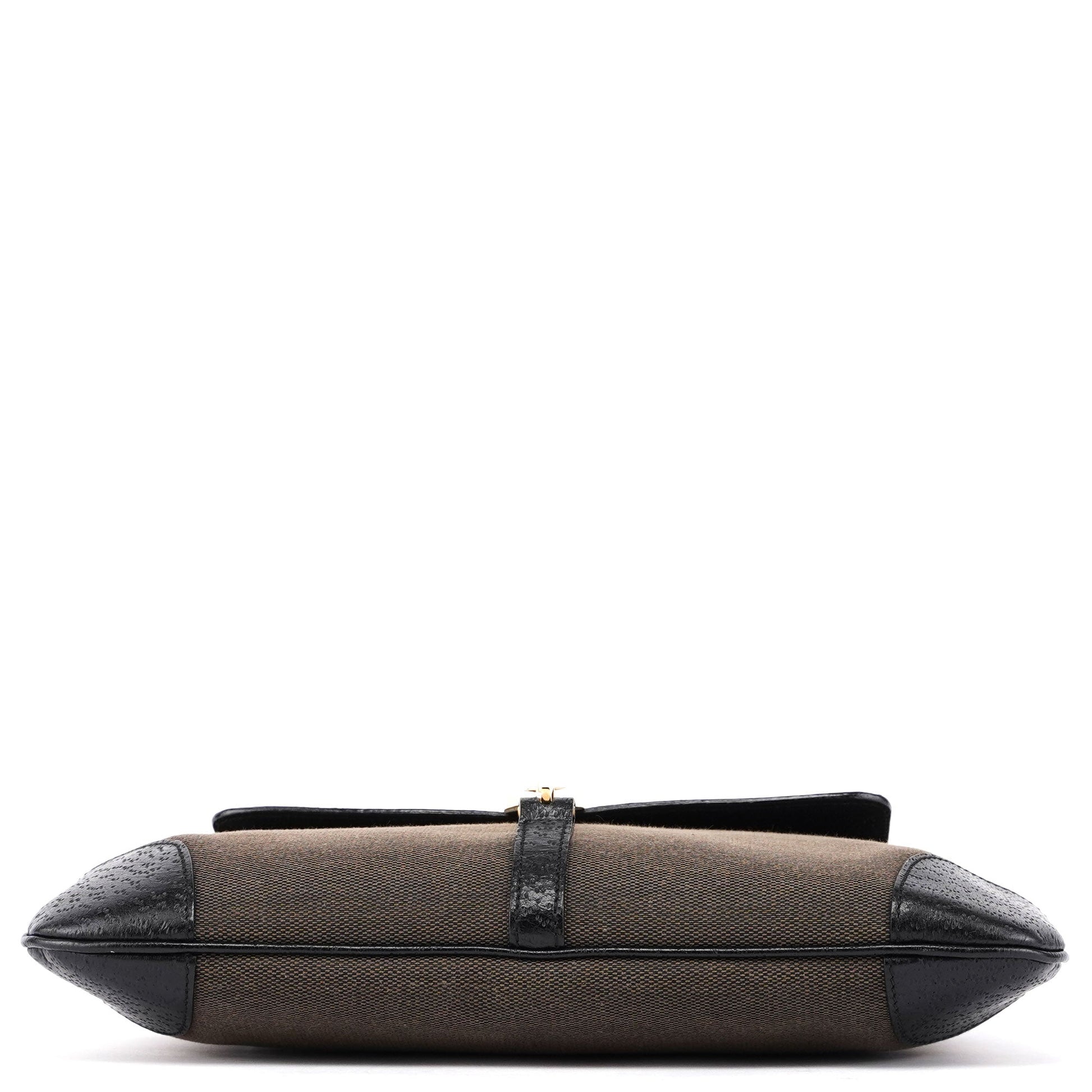 Brown Canvas Leather Jackie Bamboo Shoulder Bag