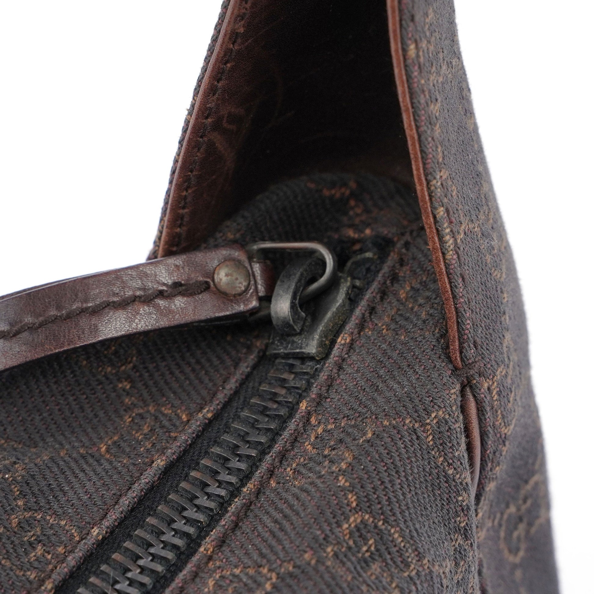 Designed by Tom Ford in the early 2000's, this Gucci GG Monogram shoulder bag exudes sophistication. Handcrafted in brown GG monogram canvas with calfskin leather trim bearing the Gucci logo, it features anthracite hardware and a convenient zipper closure. Inside, the satin-lined interior houses a practical zipper pocket for organization.