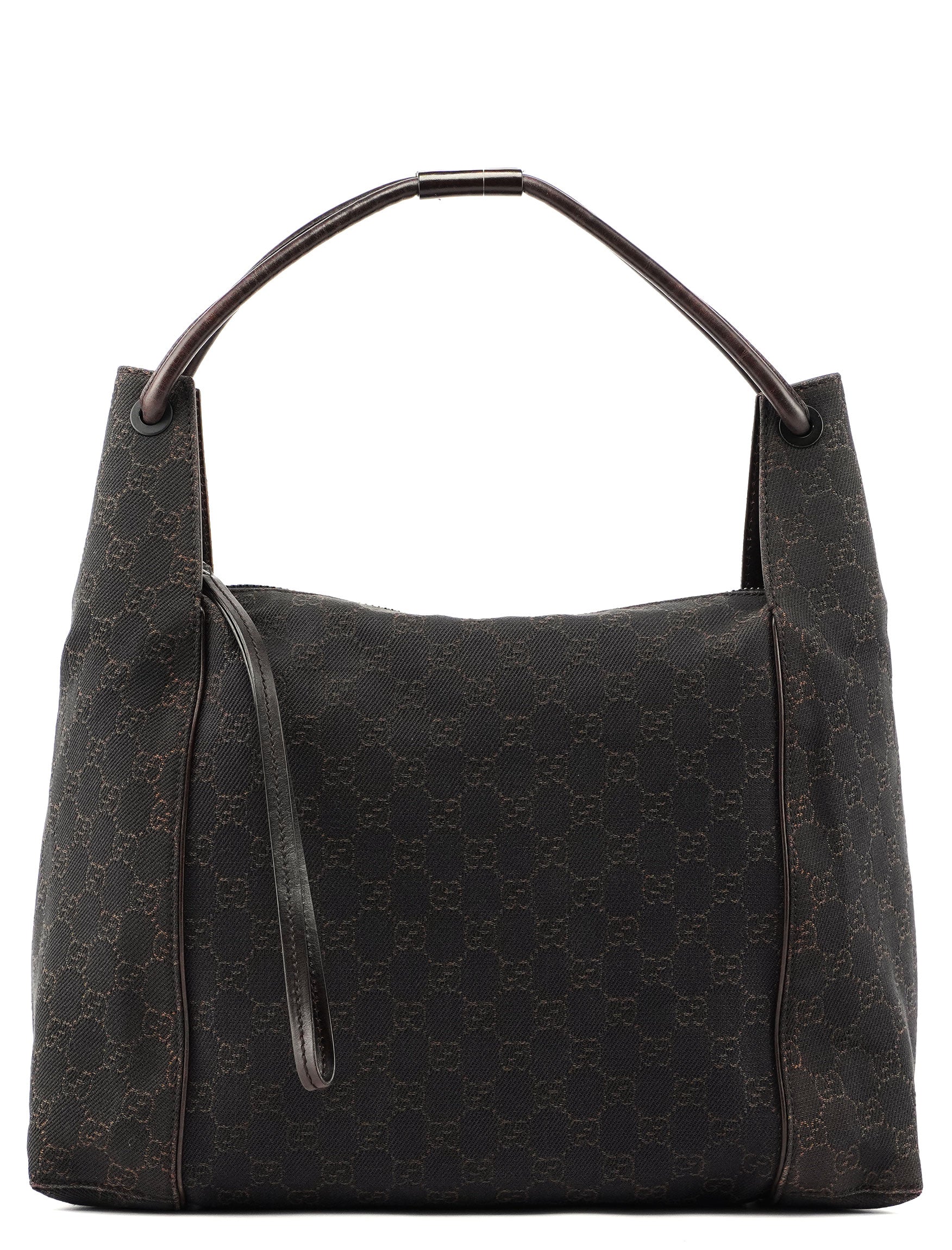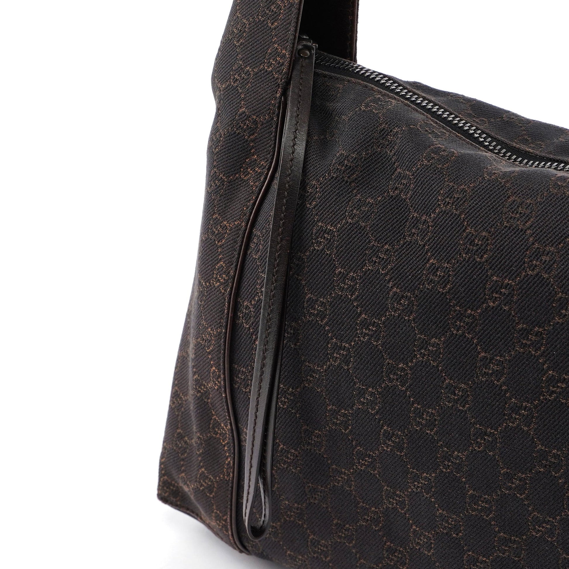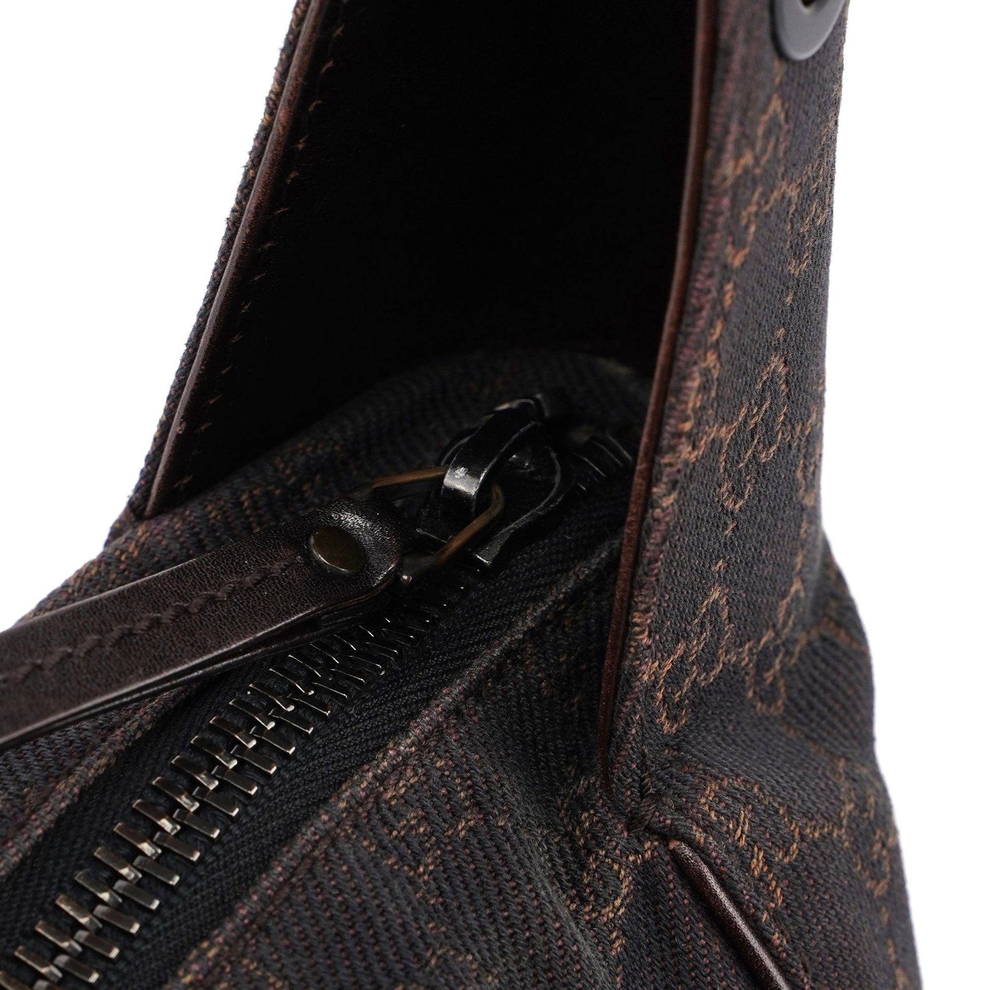 Designed by Tom Ford in the early 2000's, this Gucci GG Monogram shoulder bag exudes sophistication. Handcrafted in the brown GG monogram canvas with calfskin leather trim bearing the Gucci logo, it features anthracite hardware and a convenient zipper closure. Inside, the satin-lined interior houses a practical zipper pocket for organization.
