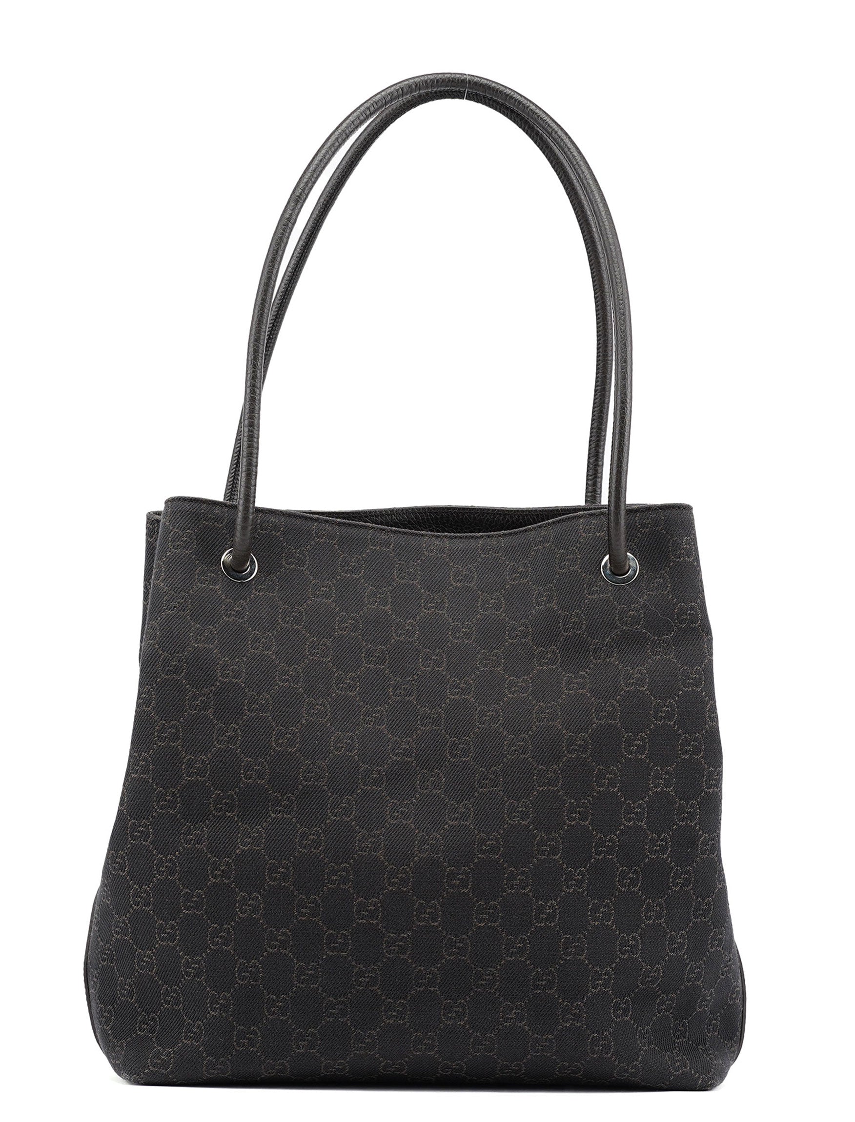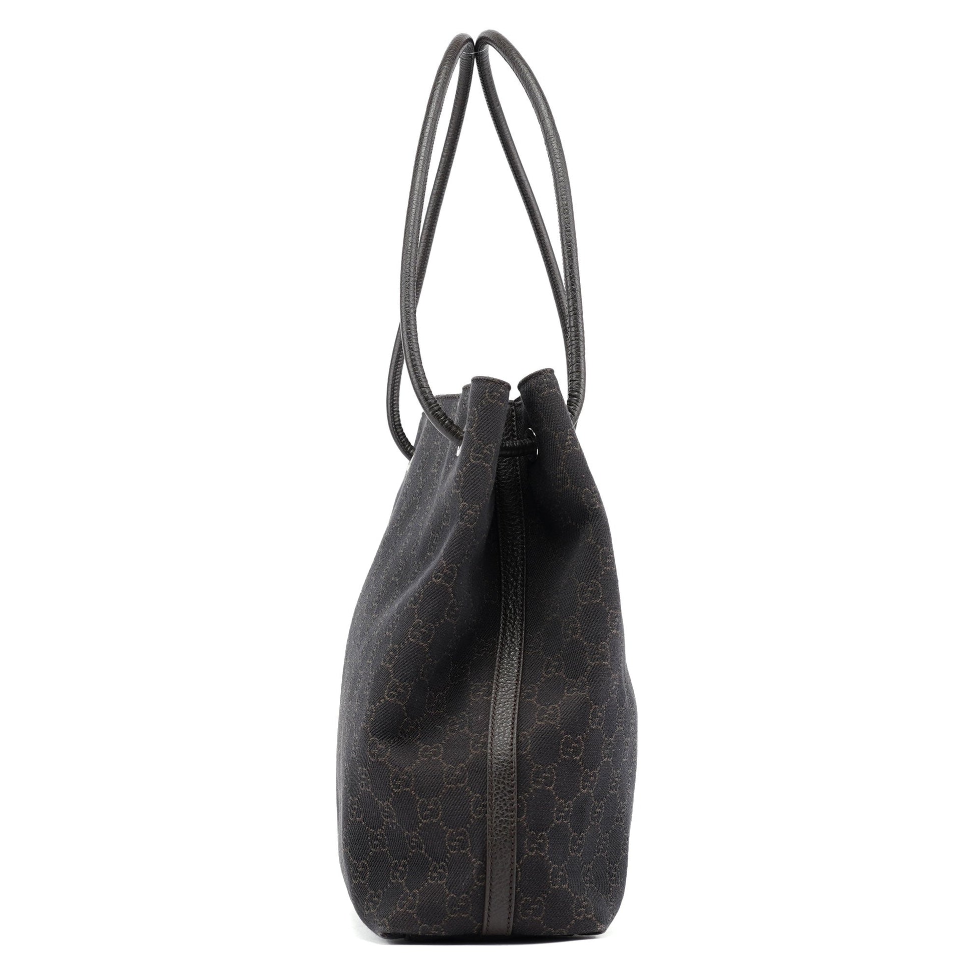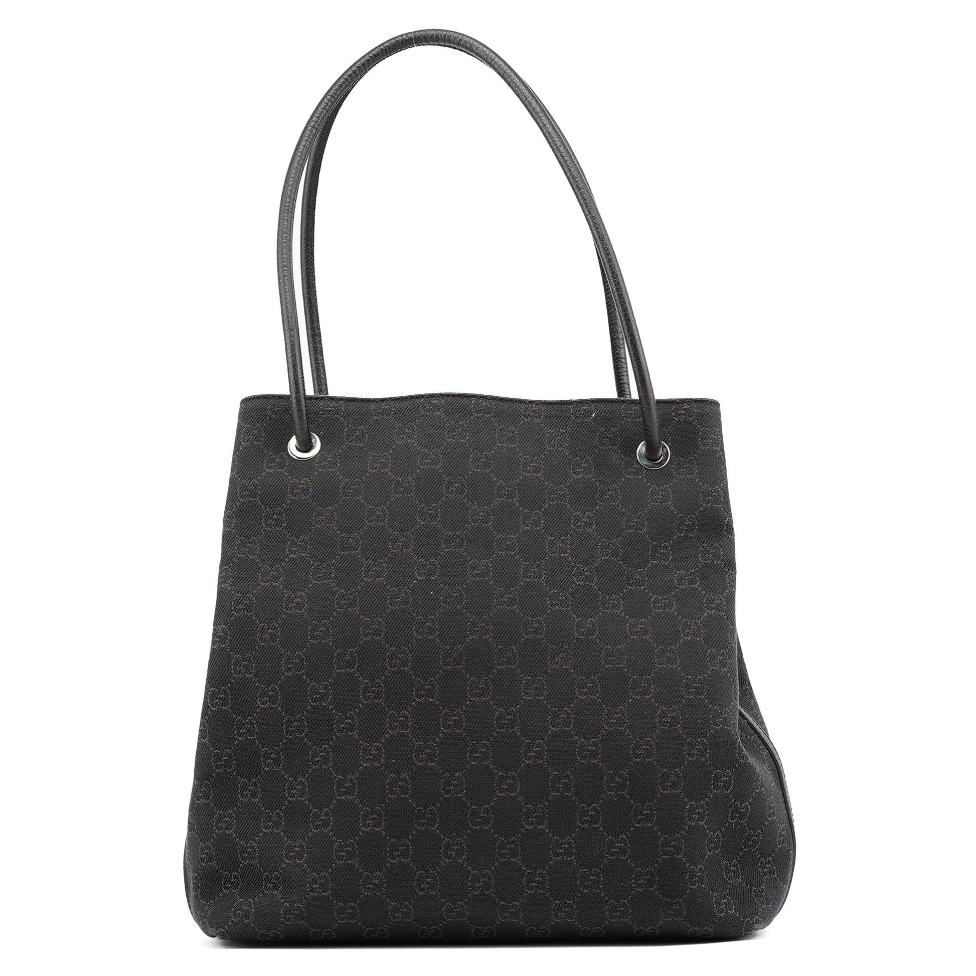 Designed by Tom Ford in the late 1990s, this Gucci GG tote is handcrafted from brown GG monogram canvas with tonal leather trim. It features anthracite hardware engraved with the Gucci logo and a satin-lined interior with a zipper pocket, showcasing timeless elegance.