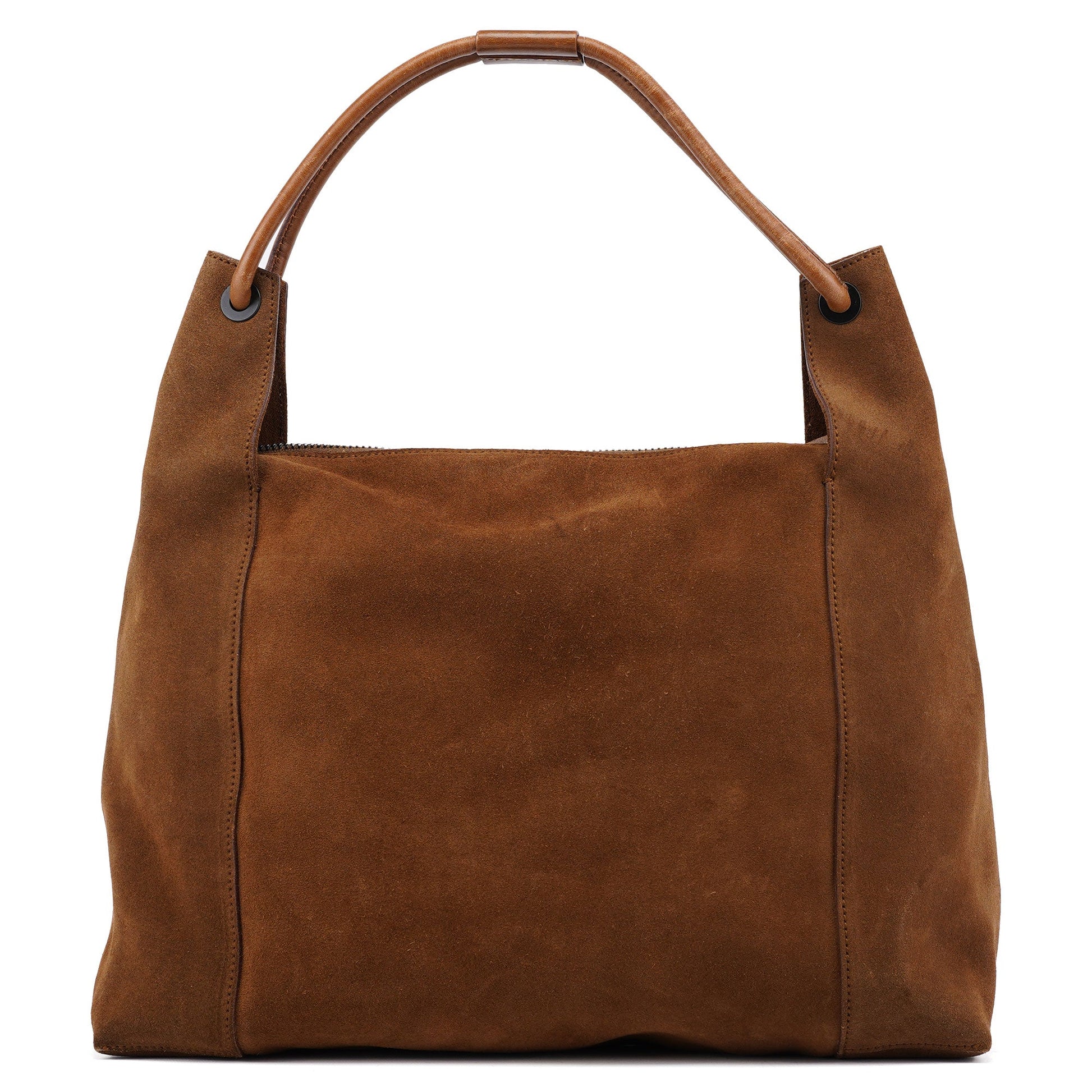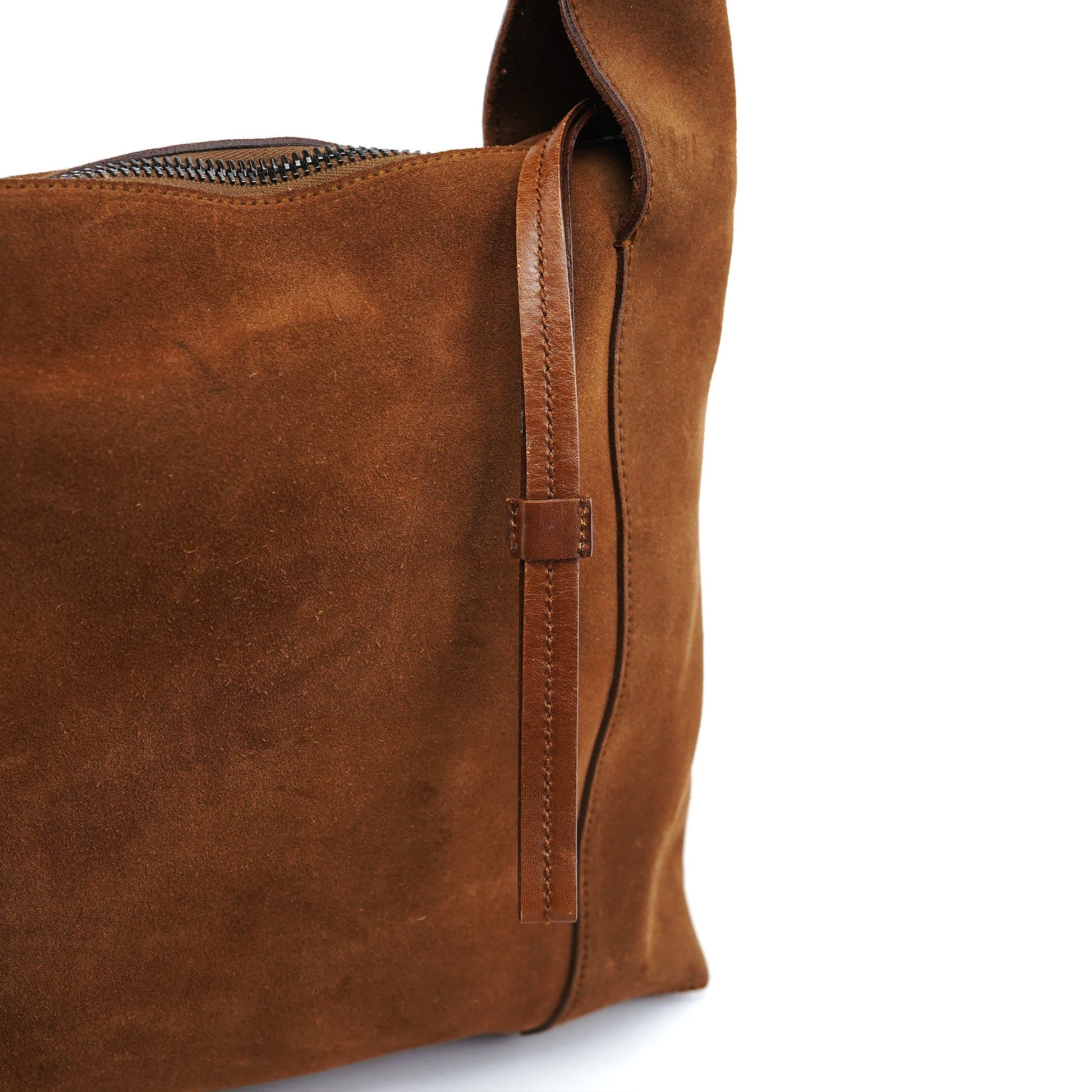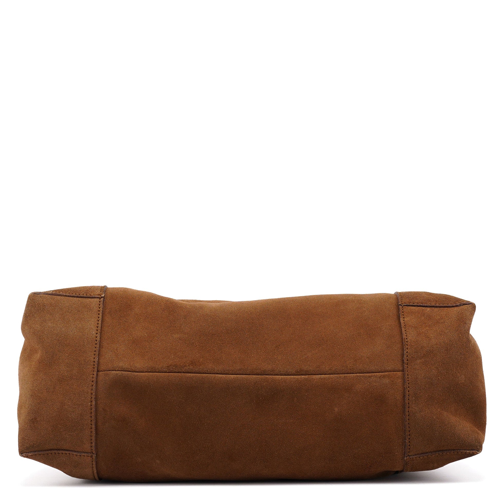 Discover the Gucci Scamosciato hobo bag, designed by Tom Ford in the early 2000s. Handcrafted in brown suede, it features anthracite hardware, a zipper closure, and a satin-lined interior with a zipper pocket for organized storage.