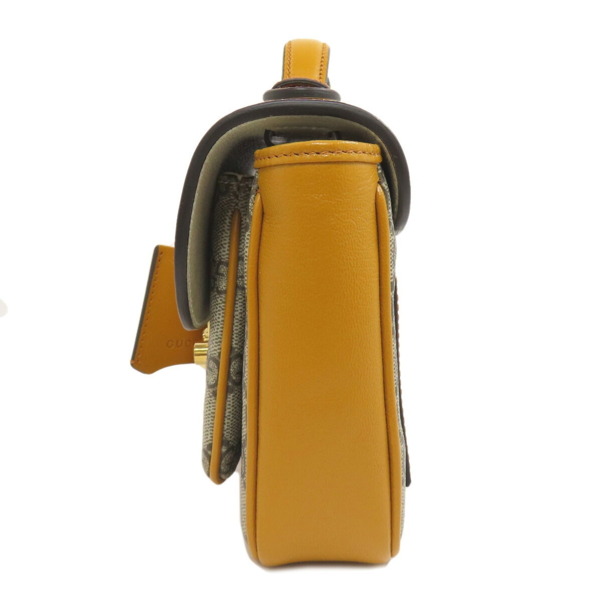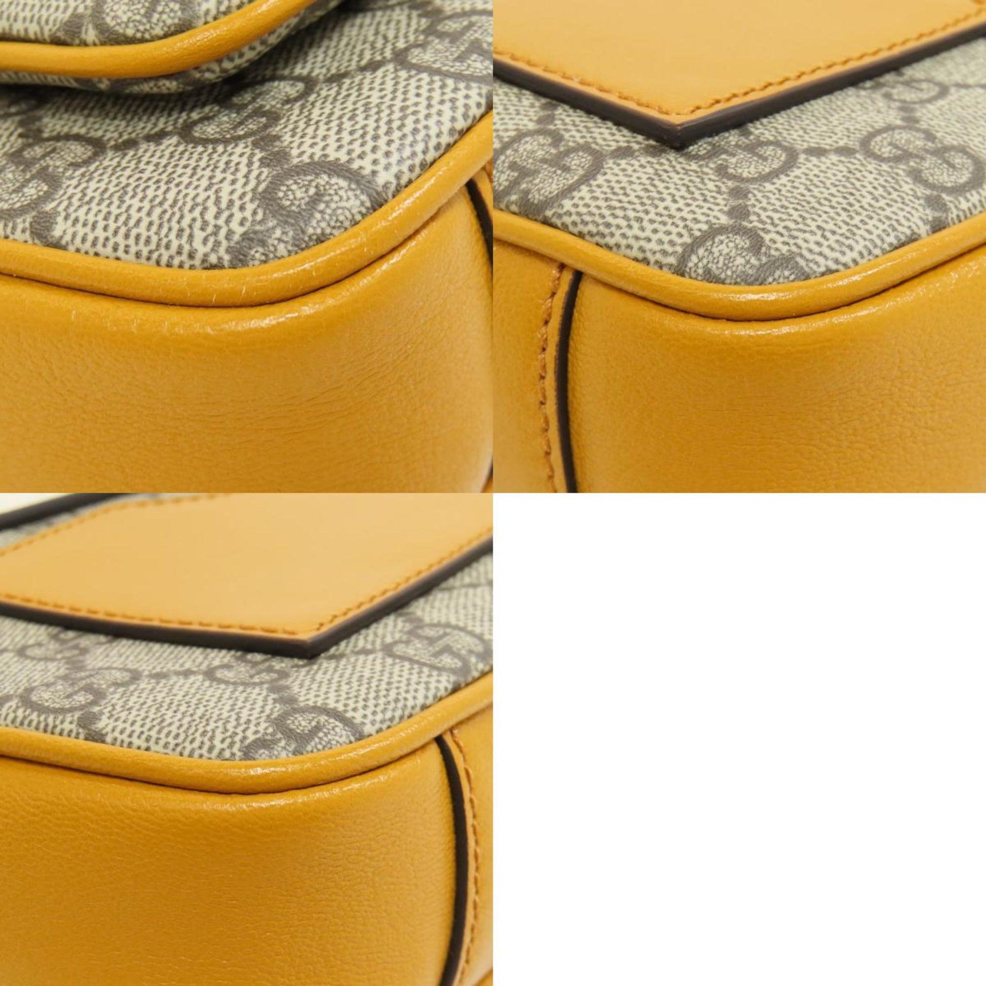Brand: Gucci, Color: Brown, Yellow, Material: PVC, Leather, Dimensions: 15cm x 23cm x 5cm / 5.9'' x 9.05'' x 1.96'', Condition: Rank A. Rank A Used - A few traces of usage, some scratches / dirt can be seen but overall in very good condition. Before purchasing, please refer to the images for the exact condition of the item. Before purchasing, please refer to the images of the accessories included with the item. Damage Ranking: Insignificant