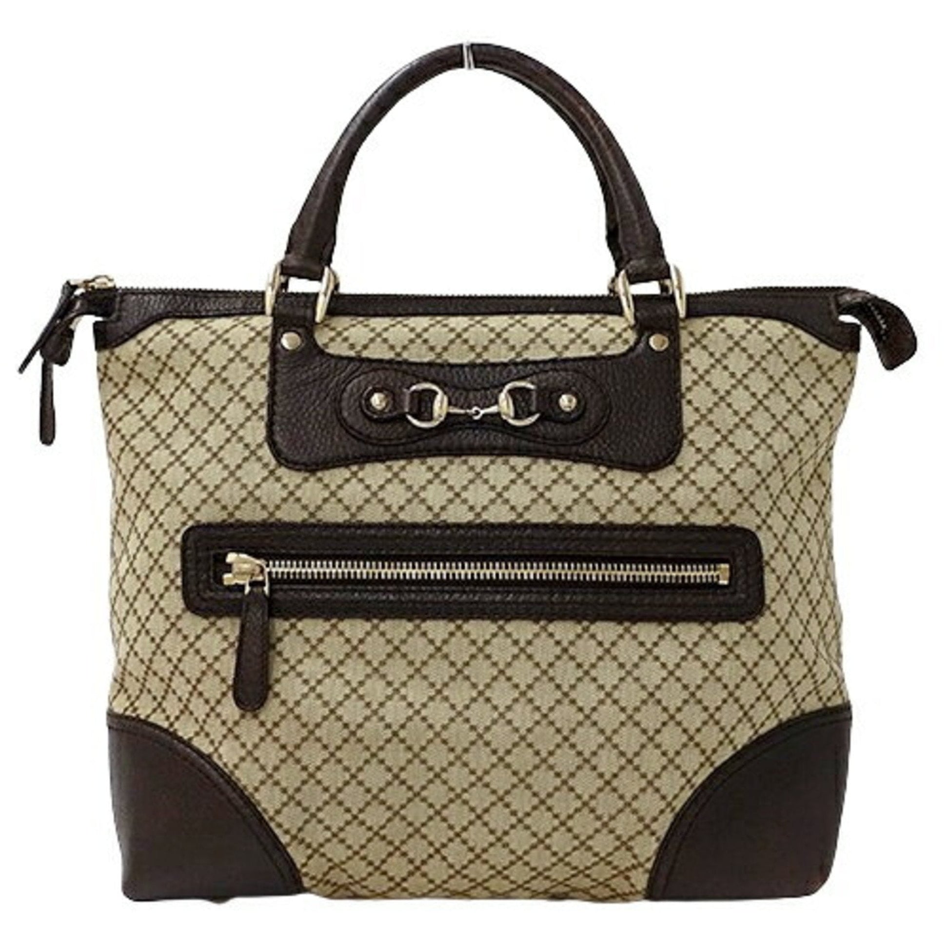 Gucci Diamante Beige Brown Canvas Handbag Tote Bag ()