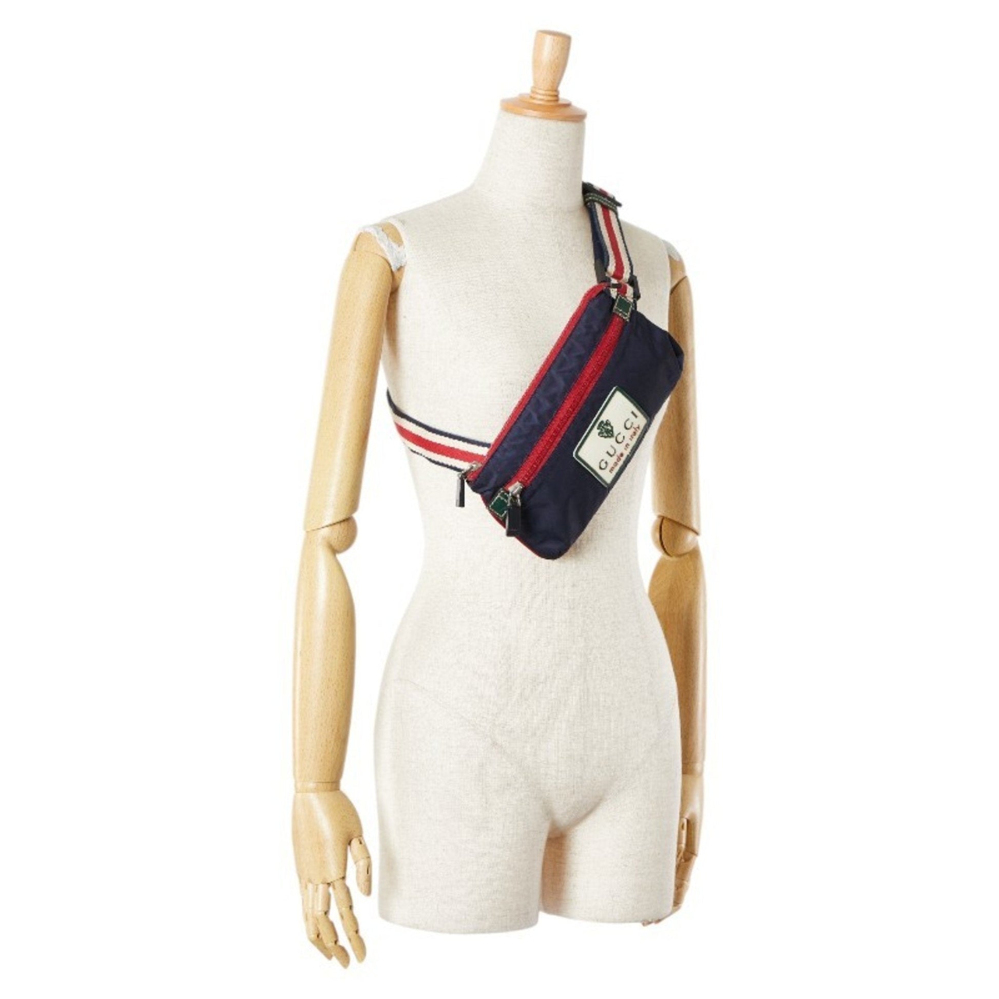 Gucci Green Navy Red Color Nylon Rubber Fanny Pack ()