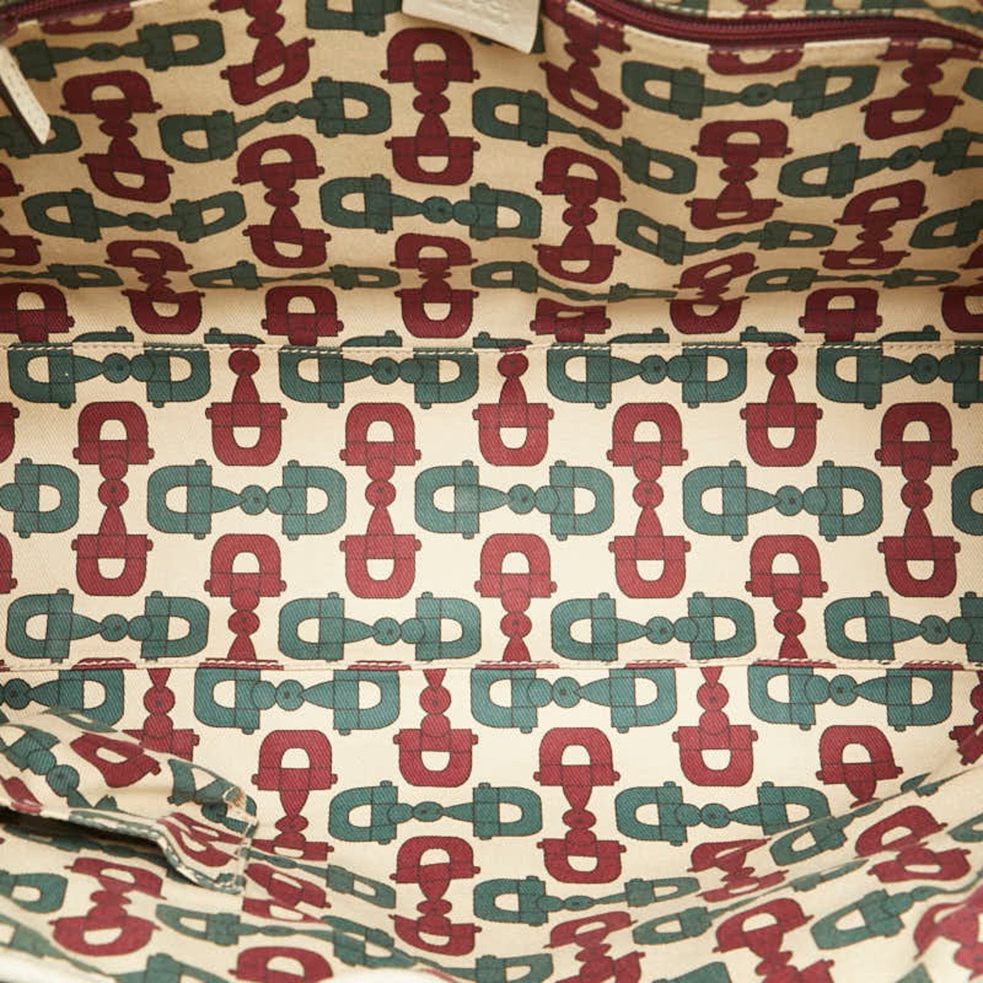 Brand: Gucci, Model Number: 163805, Color: Ivory, White, Material: Canvas, Leather, Dimensions: 21cm x 38cm x 11cm / 8.26'' x 14.96'' x 4.33'', Condition: Rank AB. Rank AB Used - Traces of usage, scratches / dirt can be seen but generally in good condition. Before purchasing, please refer to the images for the exact condition of the item. Before purchasing, please refer to the images of the accessories included with the item. Damage Ranking: -