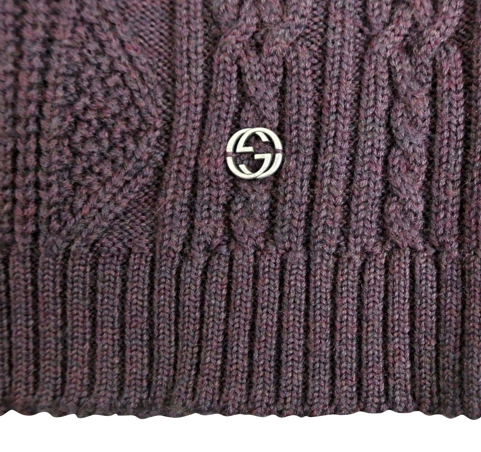 Gucci Kids Burgundy Wool Turtle Neck Sweater Top With Interlocking