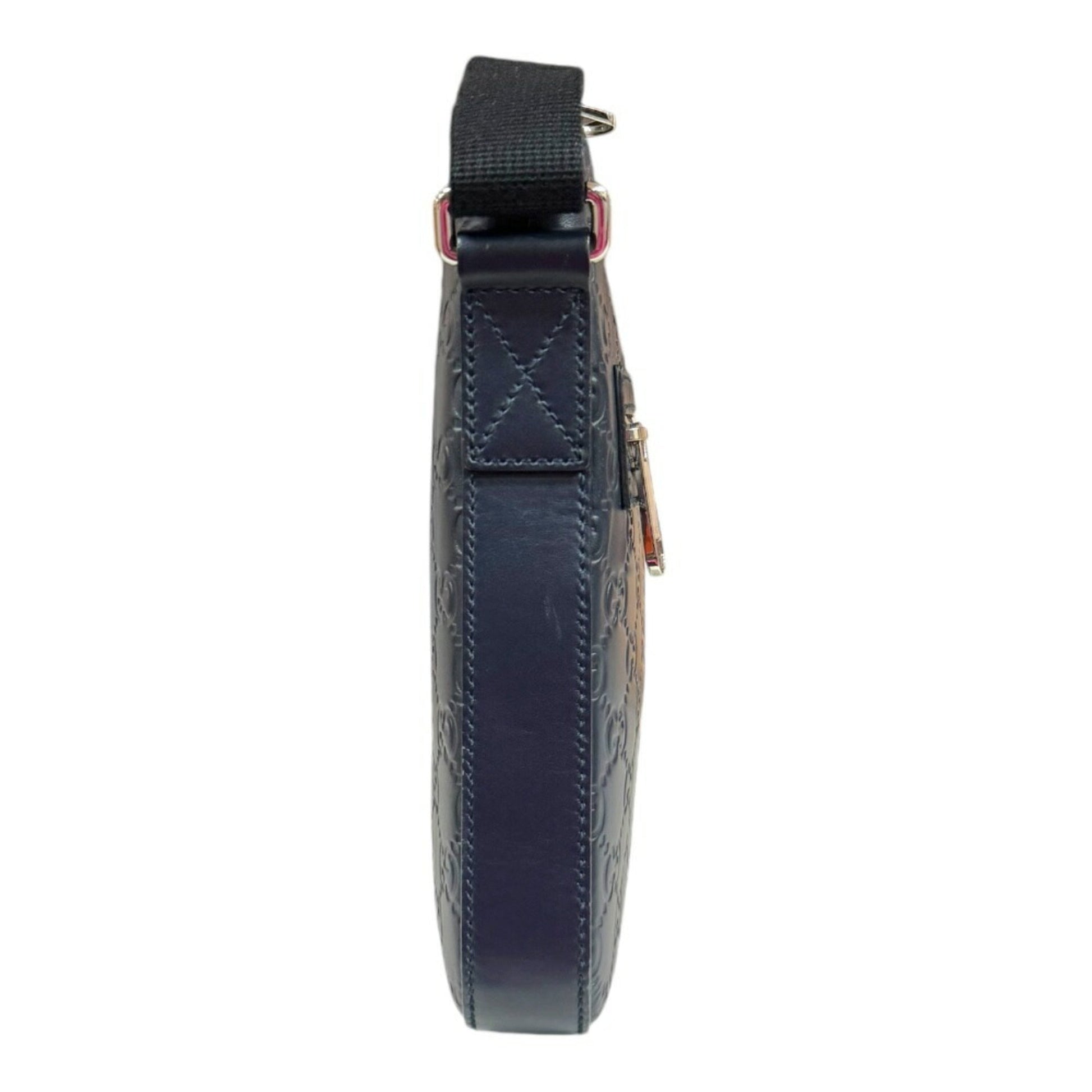 Brand: Gucci, Color: Navy, Material: Leather, Dimensions: 23cm x 25.5cm x 3cm / 9.05'' x 10.03'' x 1.18'', Condition: Rank AB. Rank AB Used - Traces of usage, scratches / dirt can be seen but generally in good condition. Before purchasing, please refer to the images for the exact condition of the item. Before purchasing, please refer to the images of the accessories included with the item. Damage Ranking: Slight