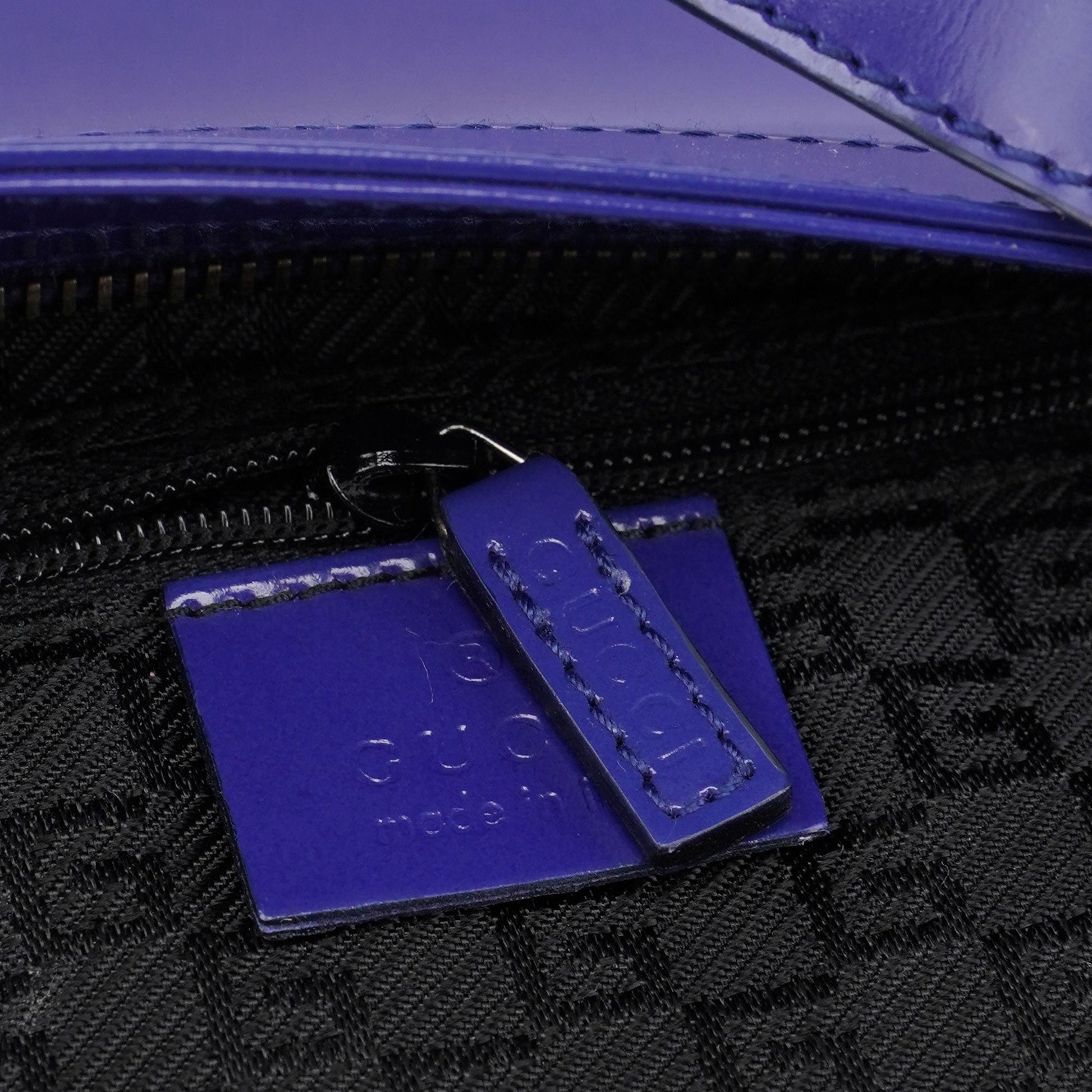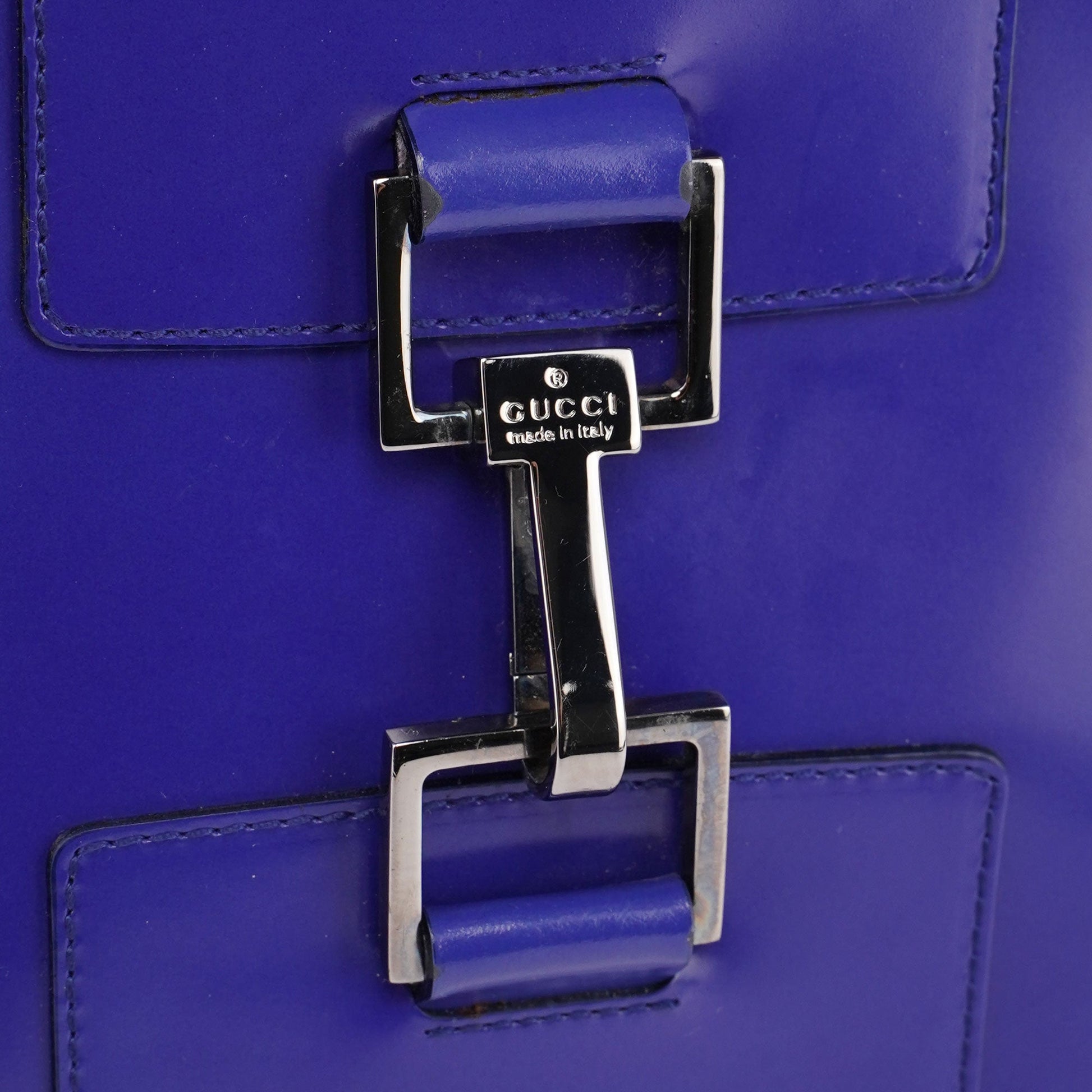 Designed by Tom Ford in the late 1990s, the Gucci Jackie tote exudes sophistication. Handcrafted in royal blue patent leather with silver-tone hardware engraved with the iconic Gucci logo, it features the signature Jackie clasp on the front. Inside, the satin-lined interior offers practicality with a convenient interior zipper pocket.