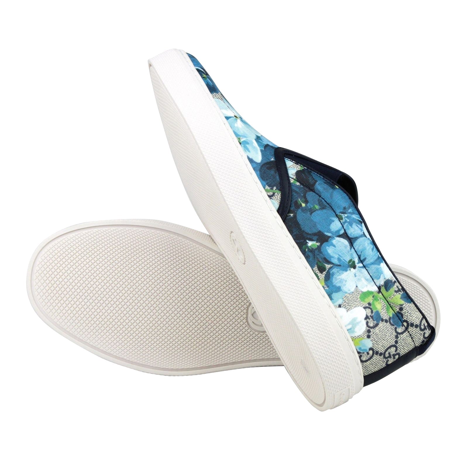 Gucci Bloom Flower Print Blue GG Supreme Coated Canvas Slip Sneakers 407362 8471