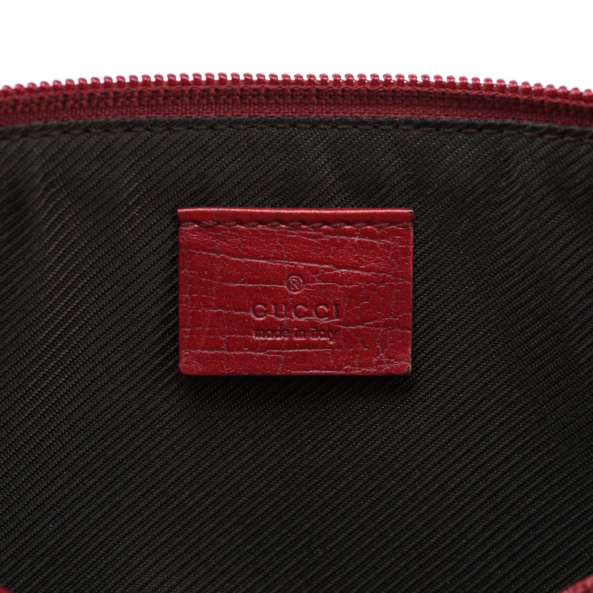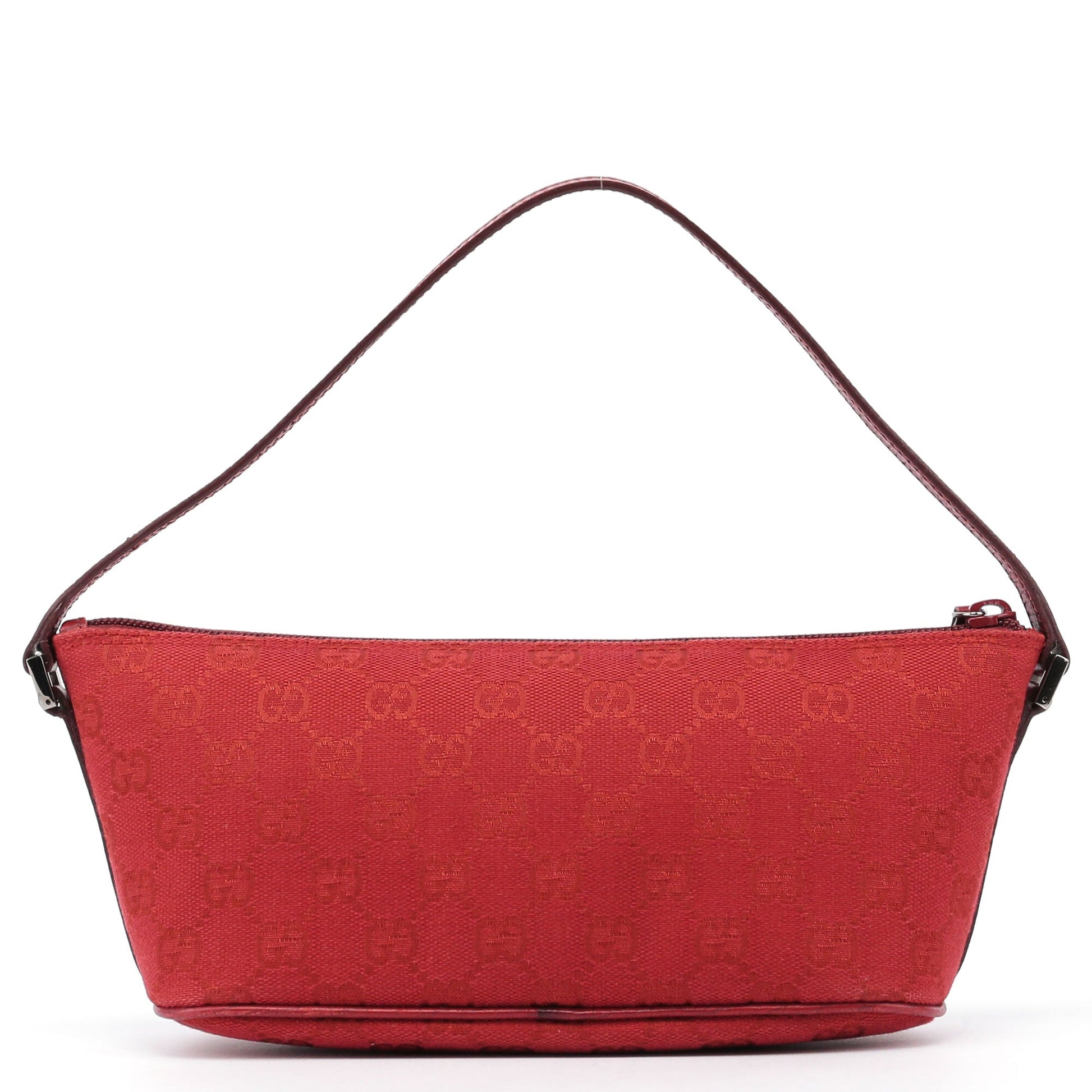 Explore timeless elegance with the Gucci GG Boat Pochette by Tom Ford, circa late 1990s. This exquisite piece combines red GG canvas with tonal leather trim and silver-tone hardware. Its secure zip closure and satin-lined interior offer luxury and practicality, while the subtle Gucci plaque adds a touch of heritage. A perfect blend of vintage charm and sophistication.