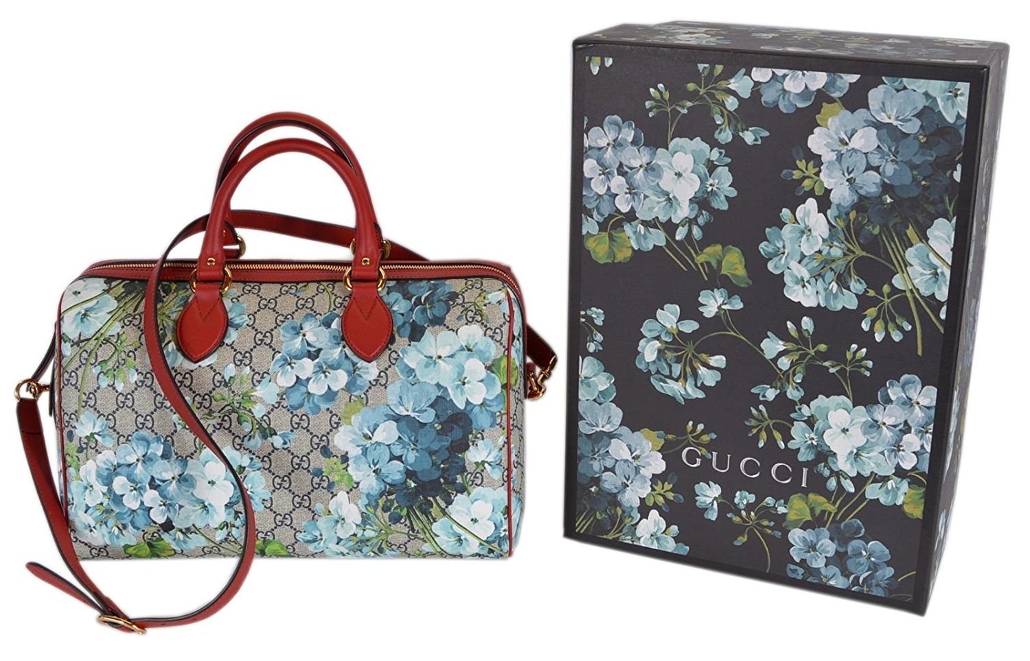 Gucci Blue GG Blooms Coated Canvas Medium Boston Top Handle Bag