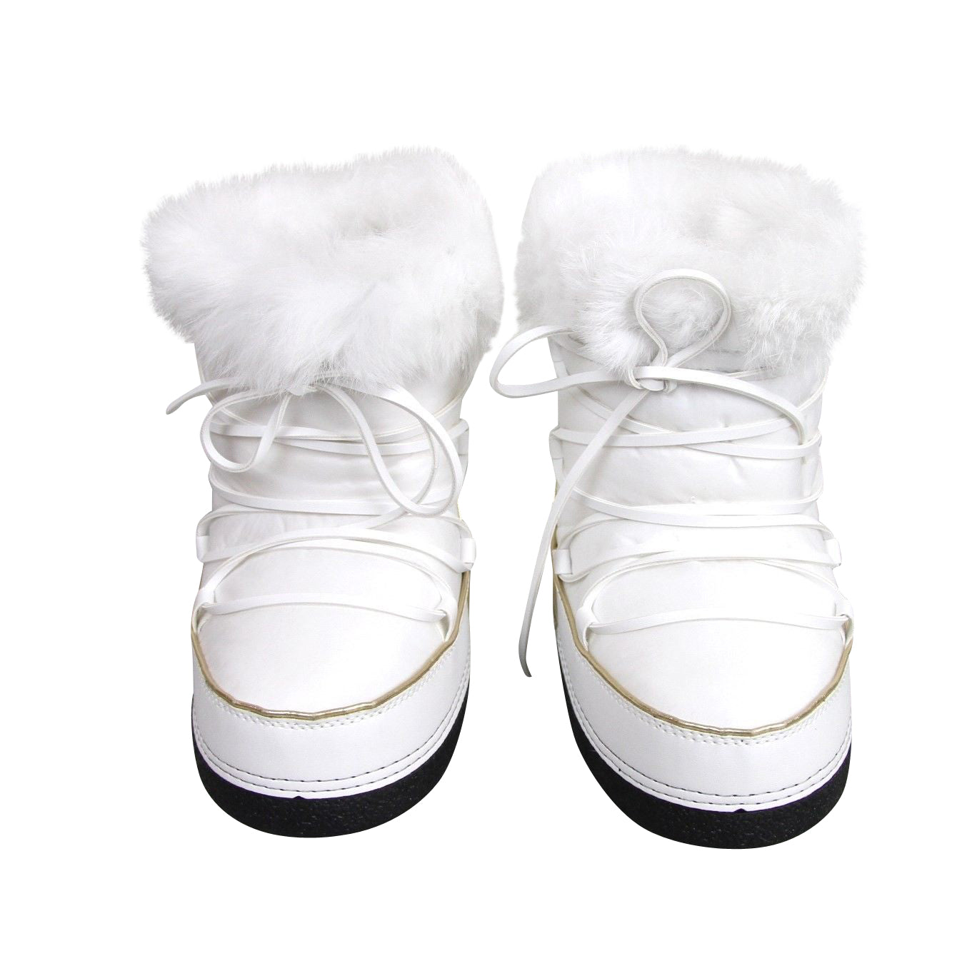 Gucci Unisex White Nylon Interlocking G Fur Trim Kids Boots