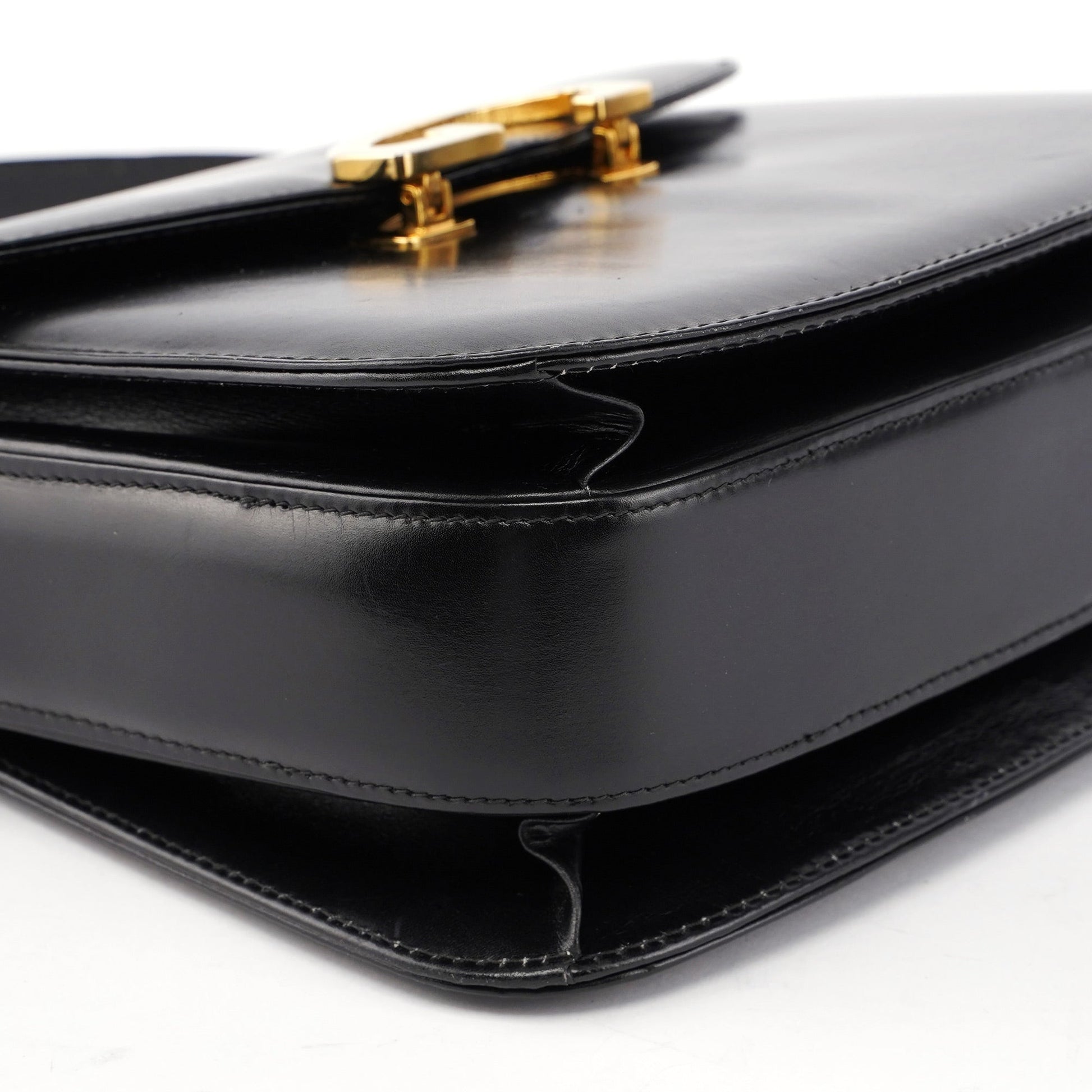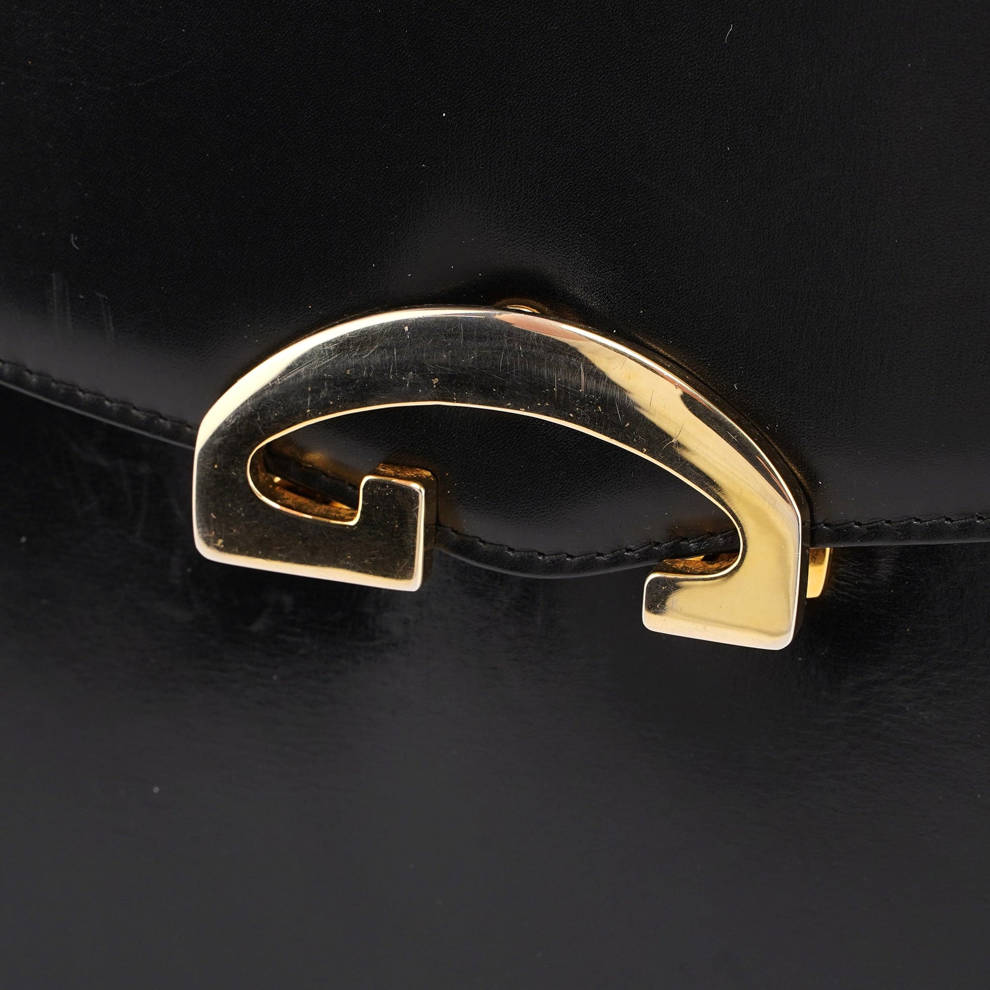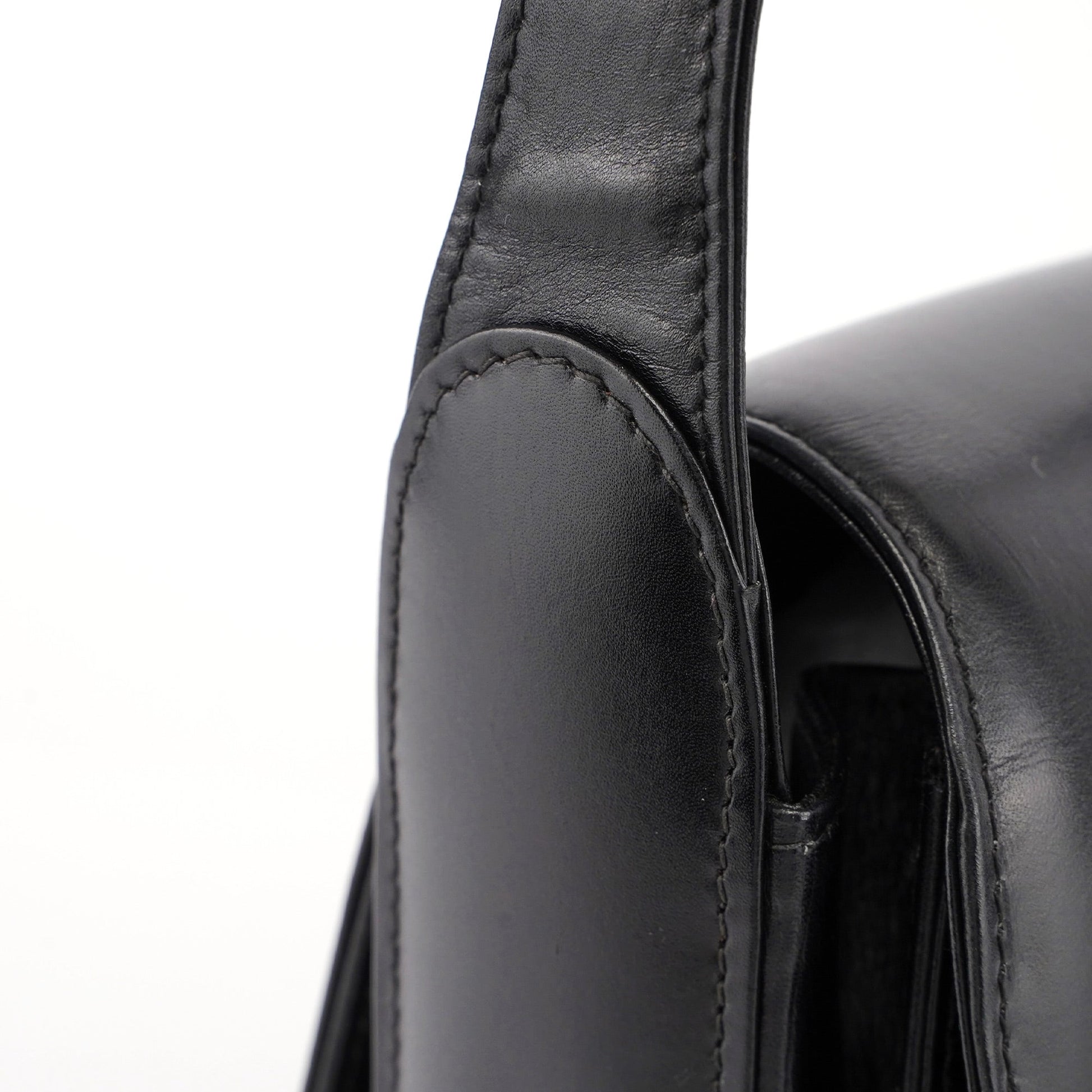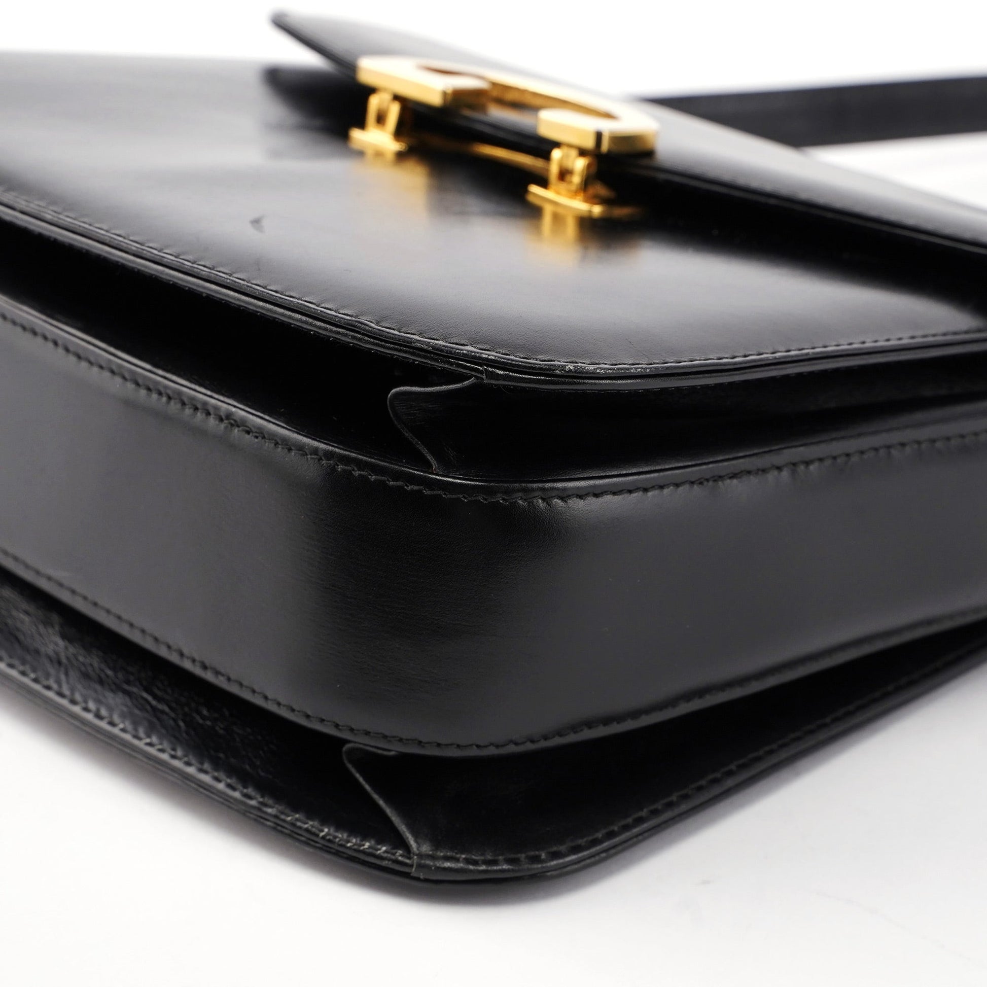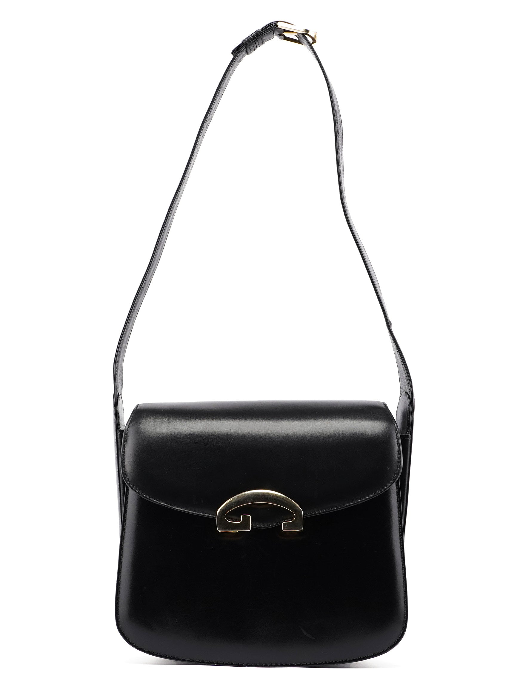 This rare vintage Gucci shoulder bag from the early 1990s is handcrafted in luxurious black calfskin leather with gold-tone hardware. It features an adjustable strap, a gold-tone G closure, and a calfskin-lined interior with a zipper pocket, combining luxury with practicality. The adjustable handle offers versatile styling options.