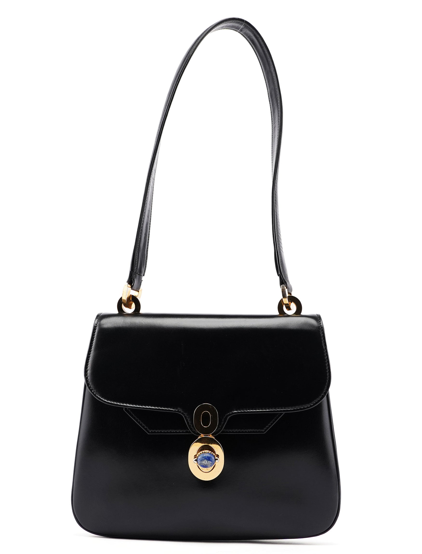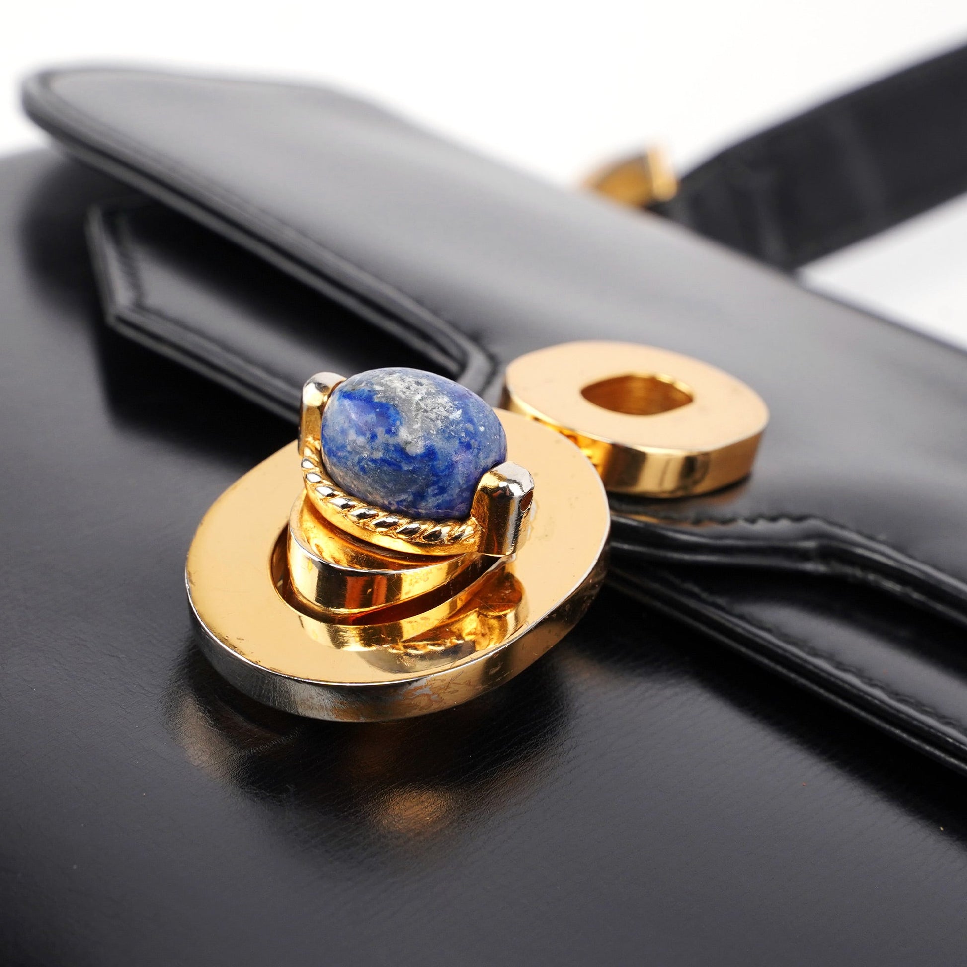 Vintage Black Calfskin Lapis Lazuli Shoulder Bag