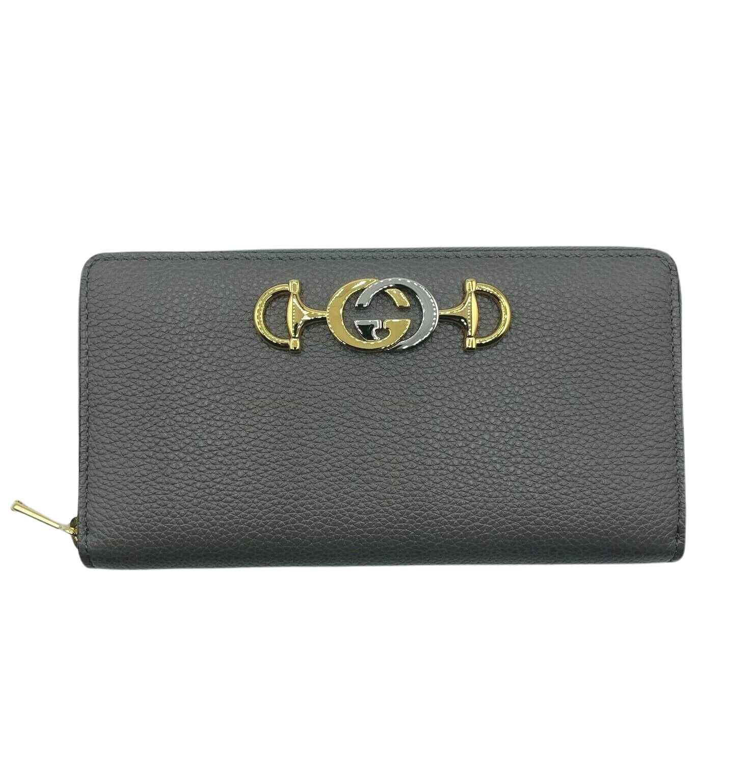 Gucci Women's Zumi Grey Leather Zip Around Wallet with Metal GG Logo