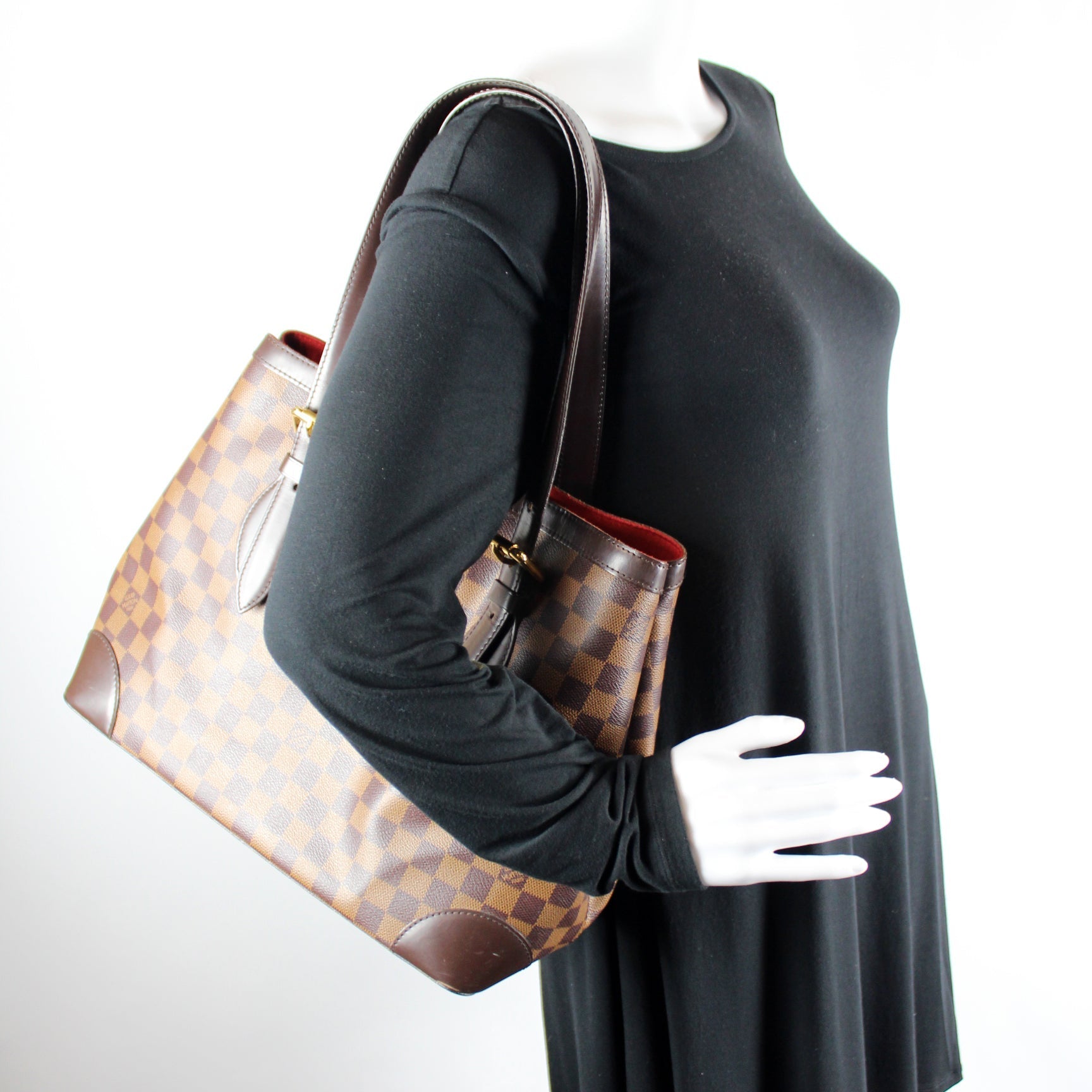 This Louis Vuitton Hampstead MM is guaranteed 100% . The exterior is in the classic Louis Vuitton Damier Ebene coated canvas.