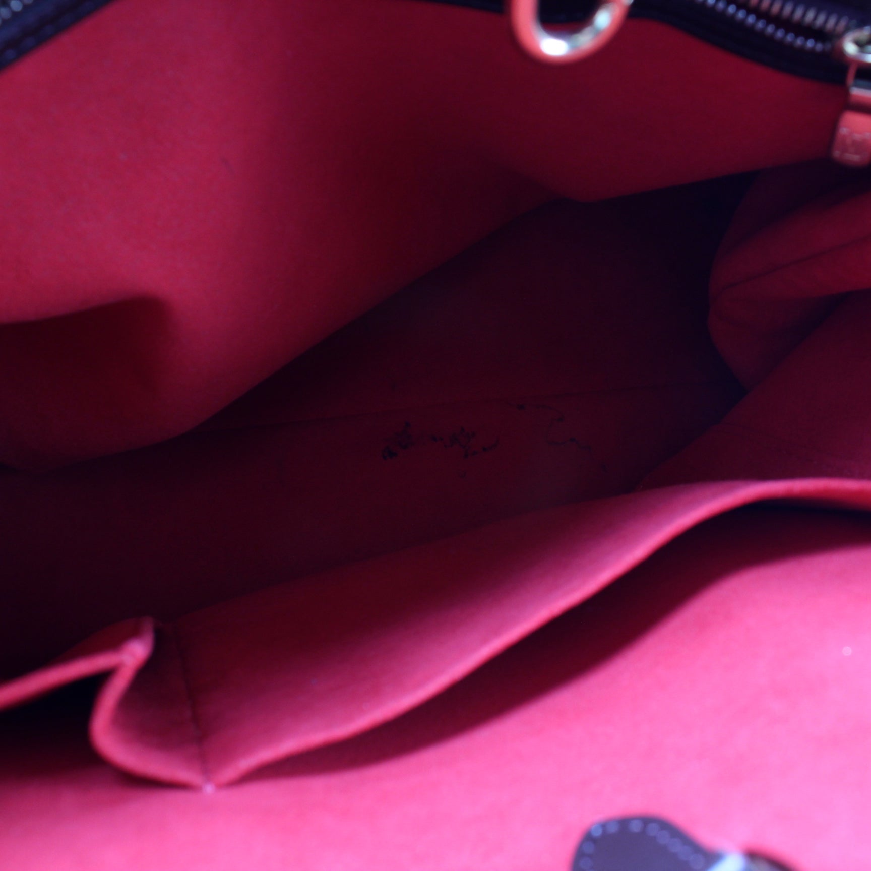 Interior: The interior is free of rips or tears. The interior features two open pockets and one zip closure pocket. The interior has minor ink stains.