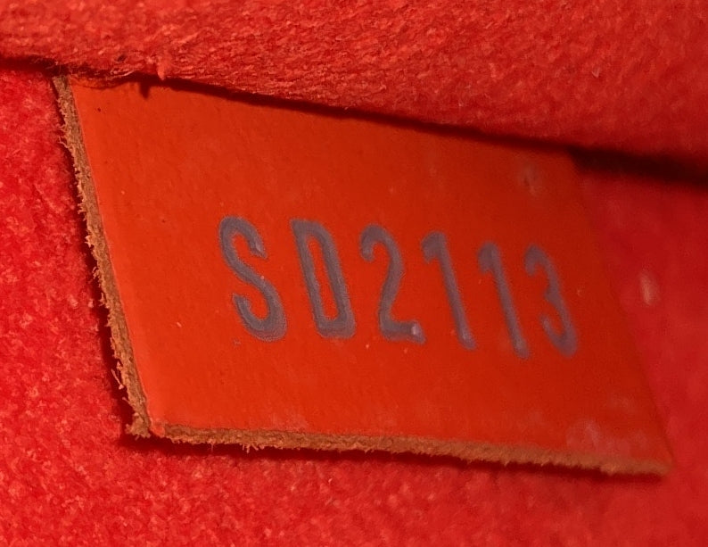 Condition: Good. Exterior: scuffs, minor creases | Handles/Straps: Repainted wax edges, discoloration | Interior: scuffs, discoloration, light odor | Hardware: scratches
