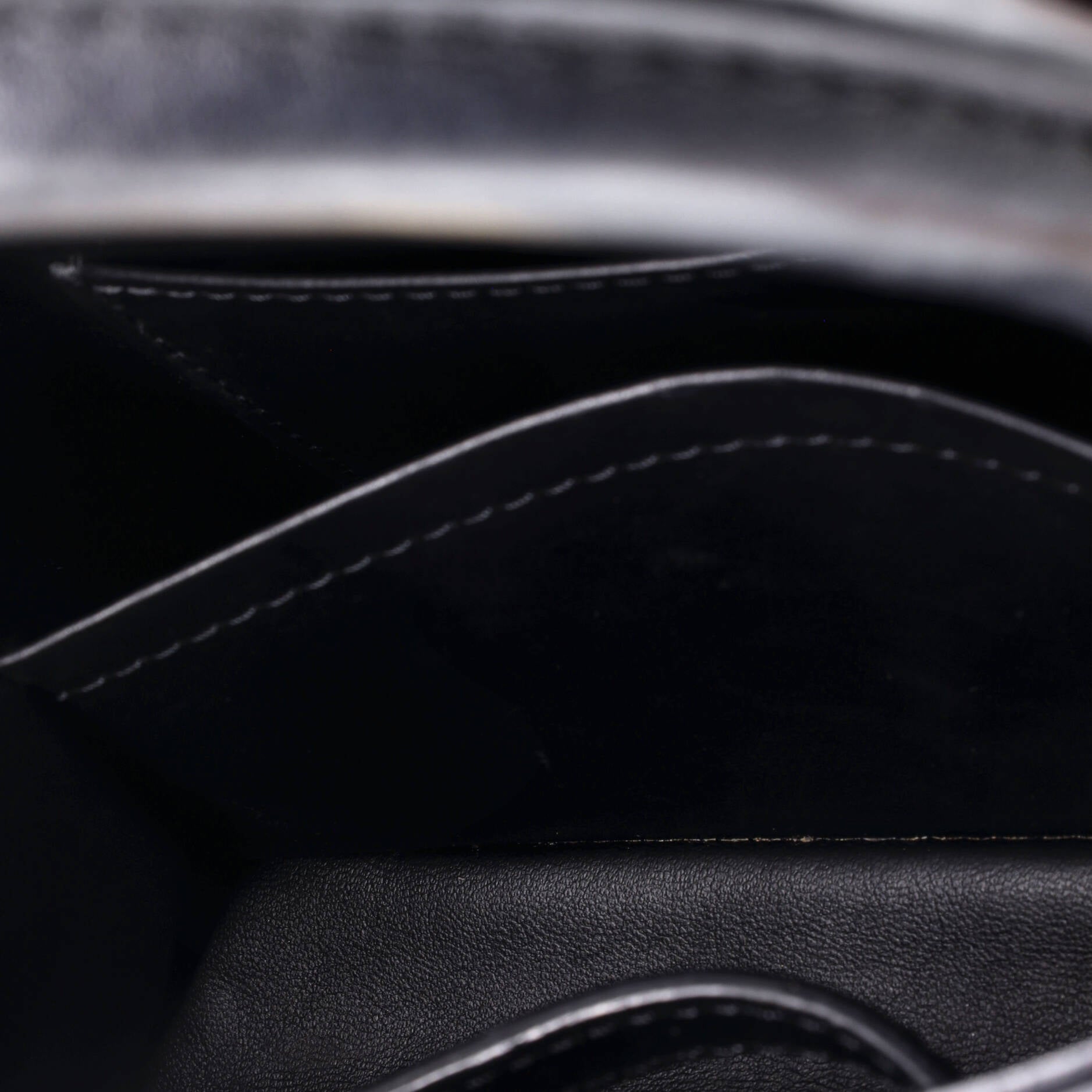 Condition: Good. Odor in interior. Moderate scuffs and marks on exterior, moderate peeling on base corners, creasing on handle, flap, and strap, moderate wear and scuffs on base, handle, flap, strap, and underneath flap. Wear, scuffs, and marks in interior, scratches on hardware.