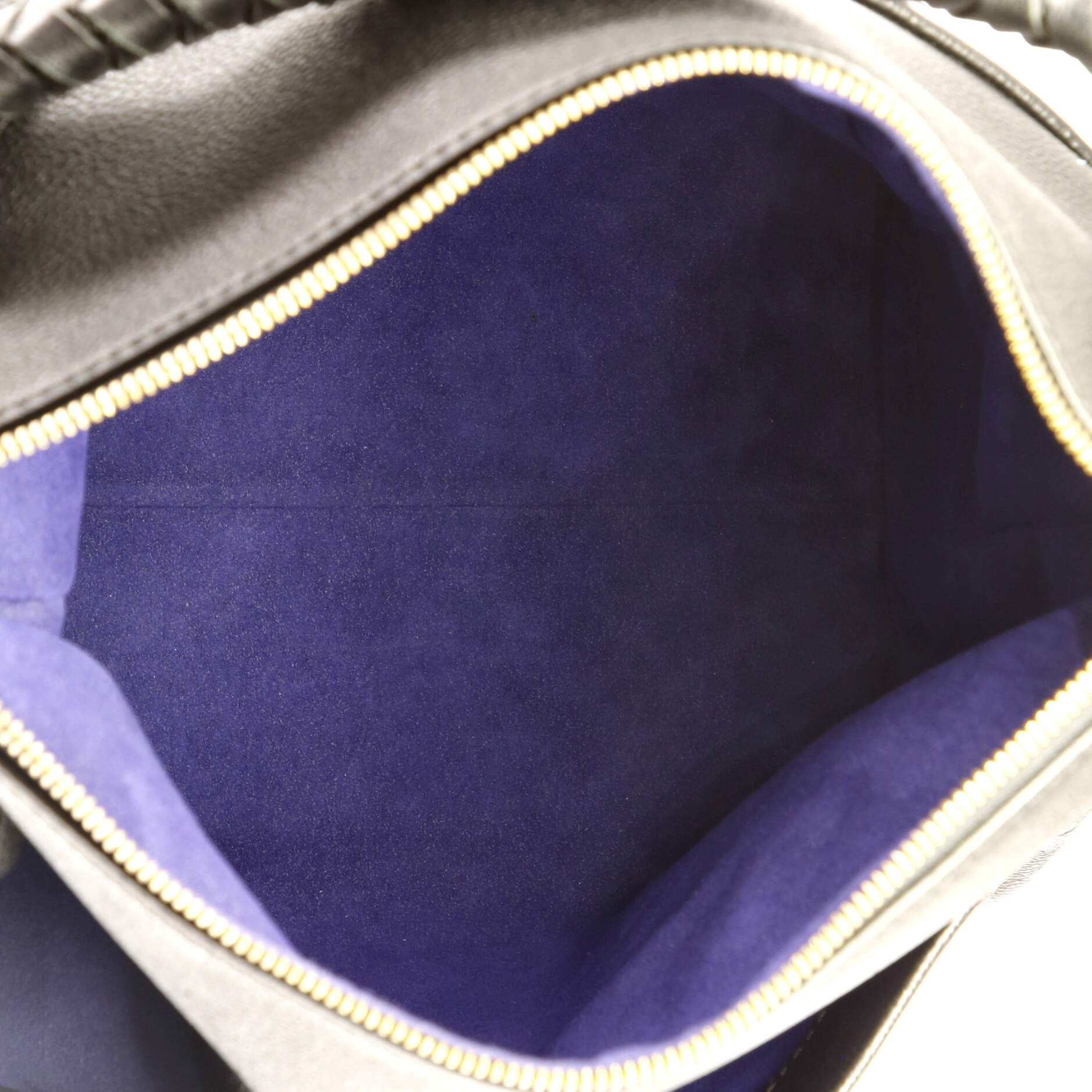 Condition: Good. Odor in interior. Moderate wear on base corners and handle, minor scuffs and creasing on exterior, peeling on zipper pull wax edges, marks and wear in interior, scratches and tarnish on hardware.