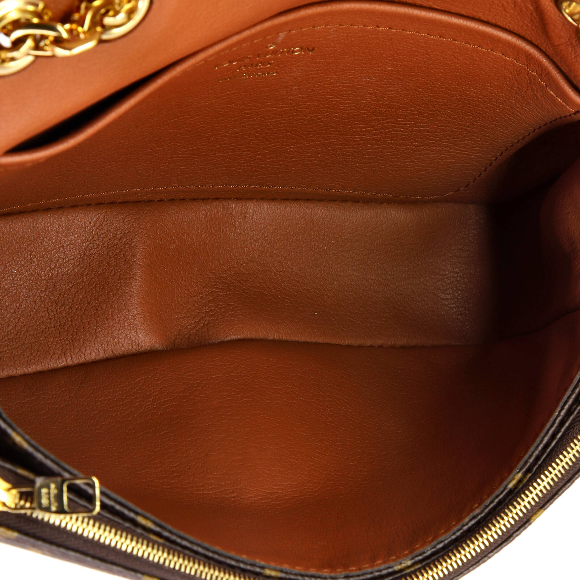Condition: Very good. Odor in interior. Slight creasing on leather trims, small mark and creasing underneath flap and in interior, scratches on hardware.