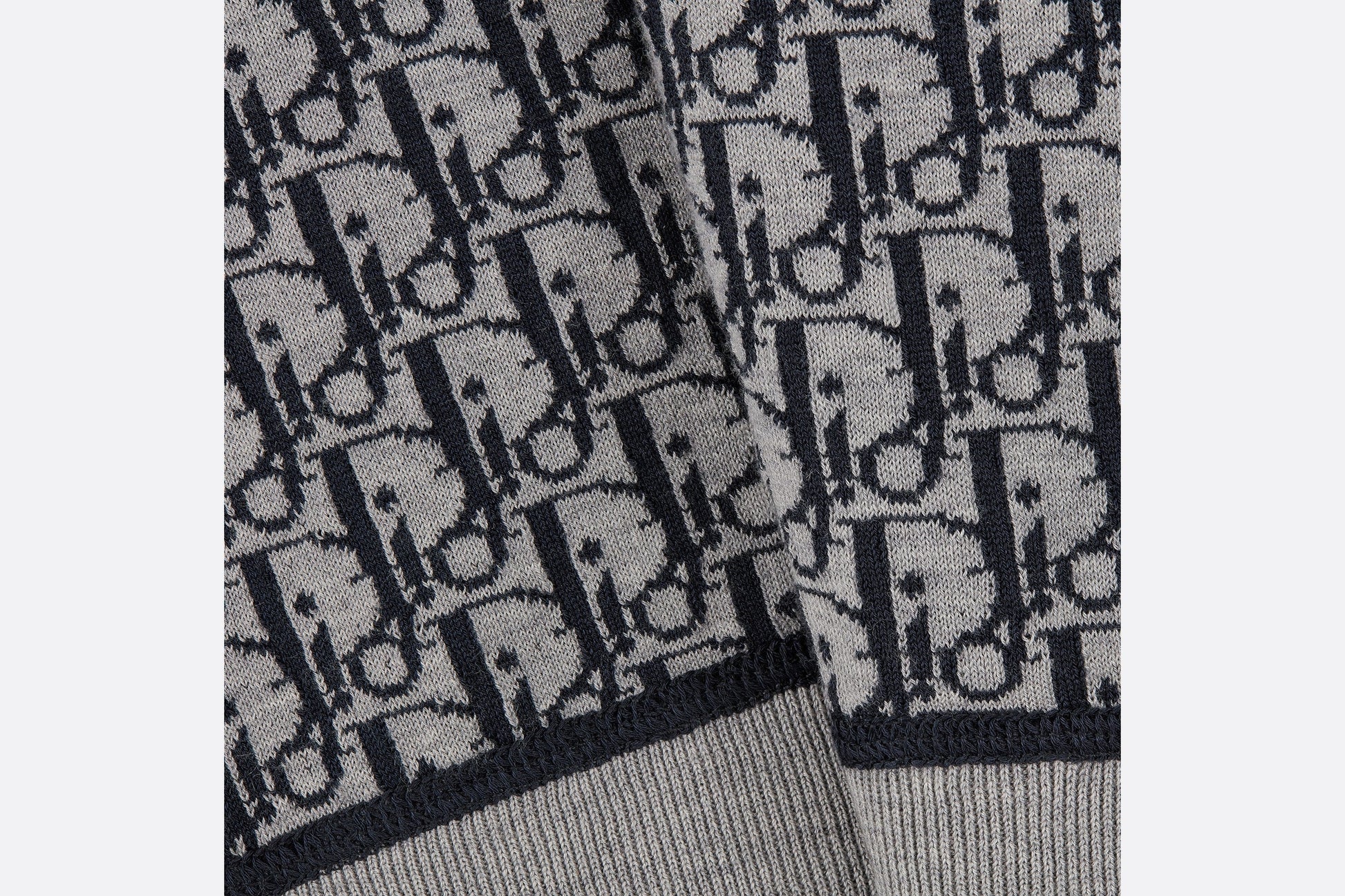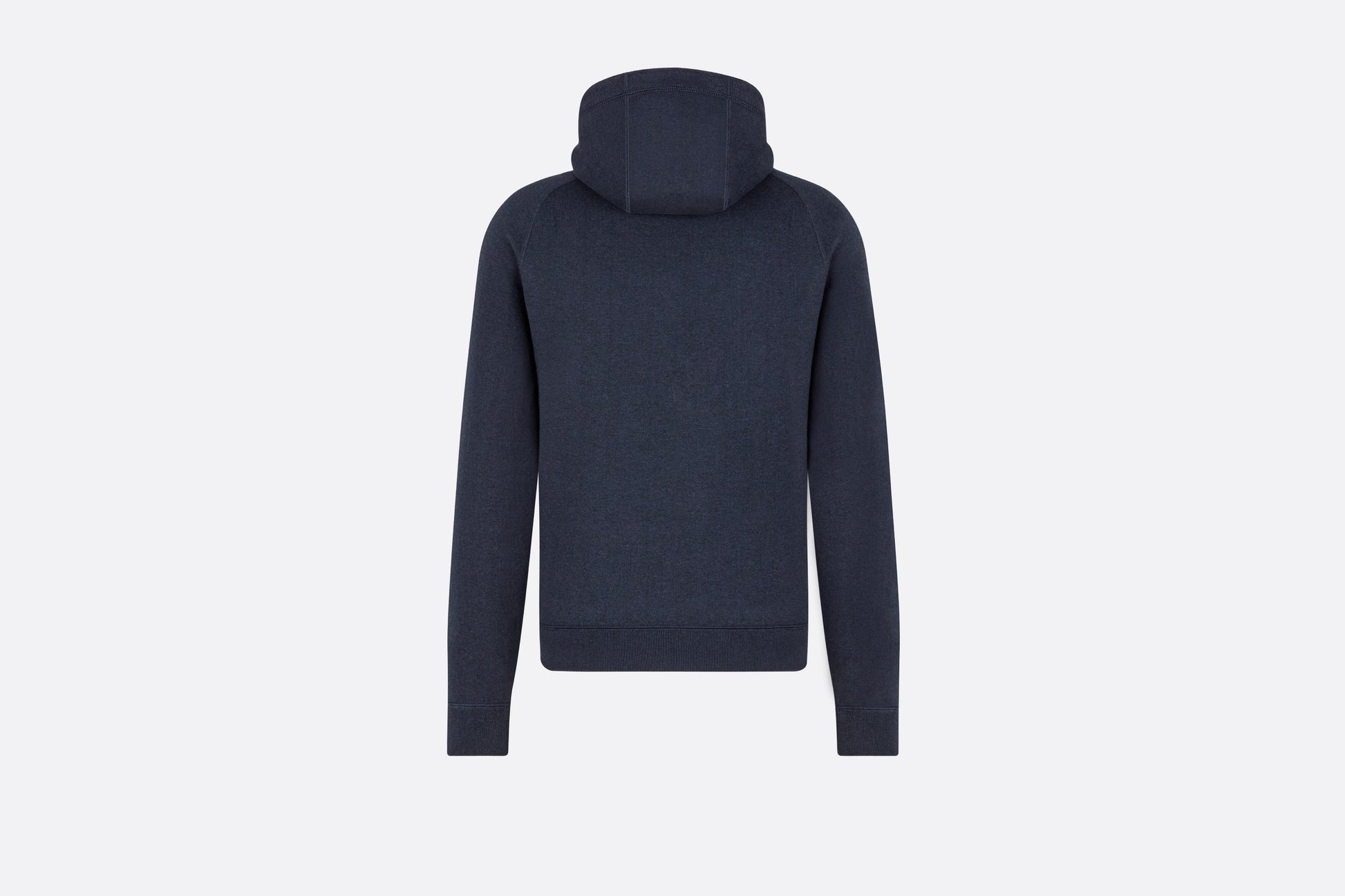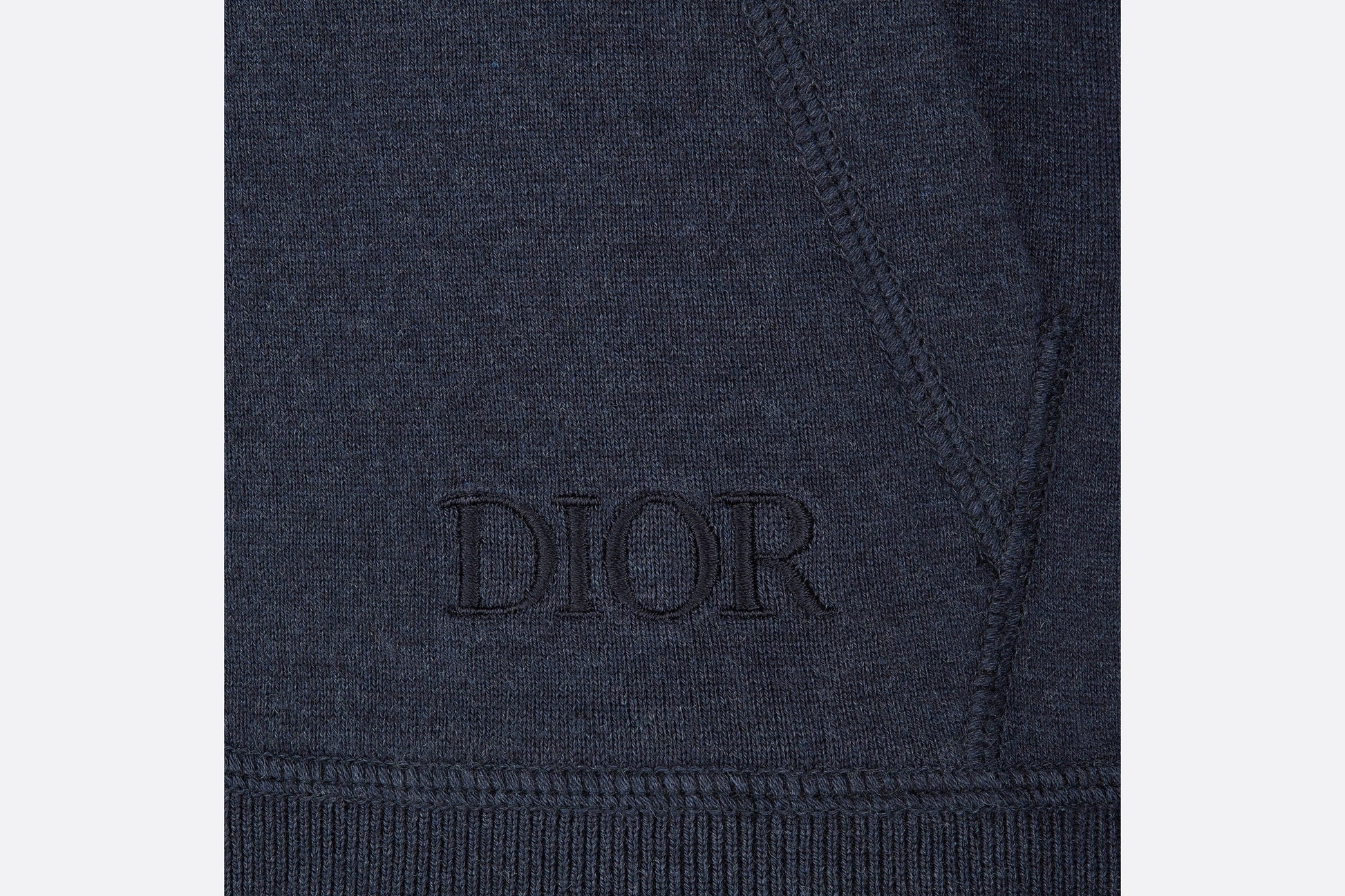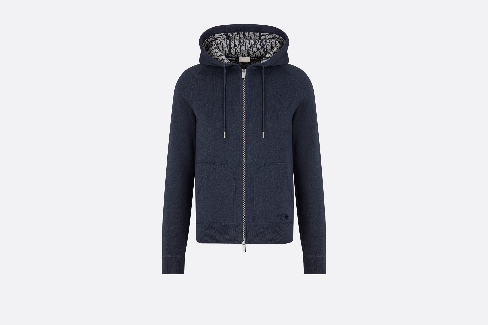 The hooded sweatshirt reimagines an essential wardrobe item in a navy blue cotton knit and cashmere couture version. The style features a hood, zip closure and raglan sleeves and is further embellished with a 'DIOR' embroidery on the front and an all-over Dior Oblique jacquard on the interior. For an emblematic look, the sweatshirt can be paired with the matching track pants.