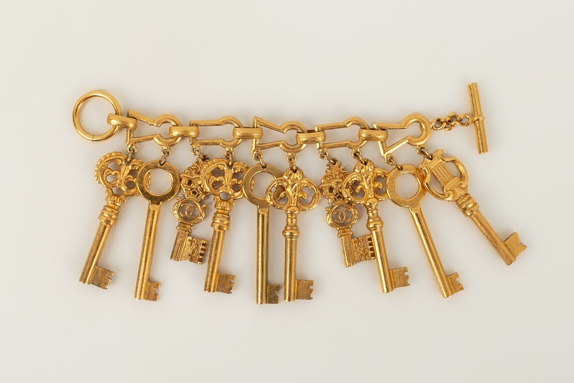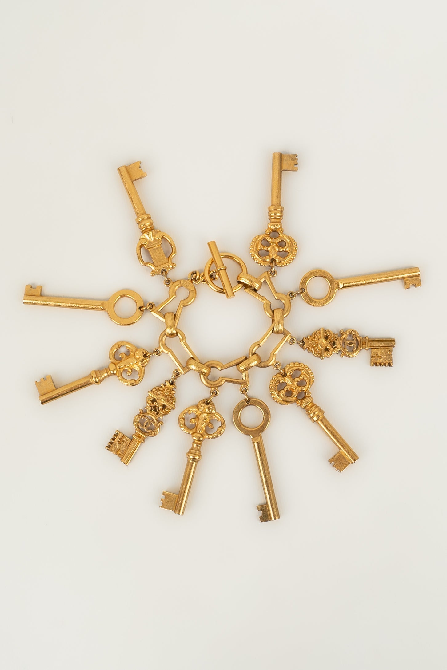 CHANEL - (Made in France) Bracelet en métal doré figurant des clés. Collection Prêt-à-Porter Printemps-Eté 1993.