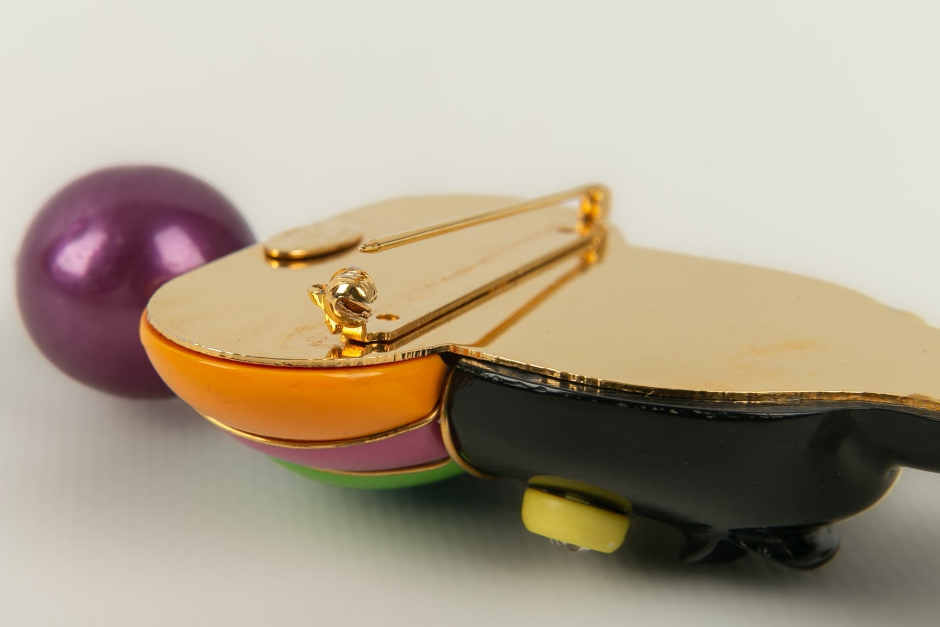CHANEL - (Made in France) Iconique broche en métal doré et bakelite. Collection 2cc5.