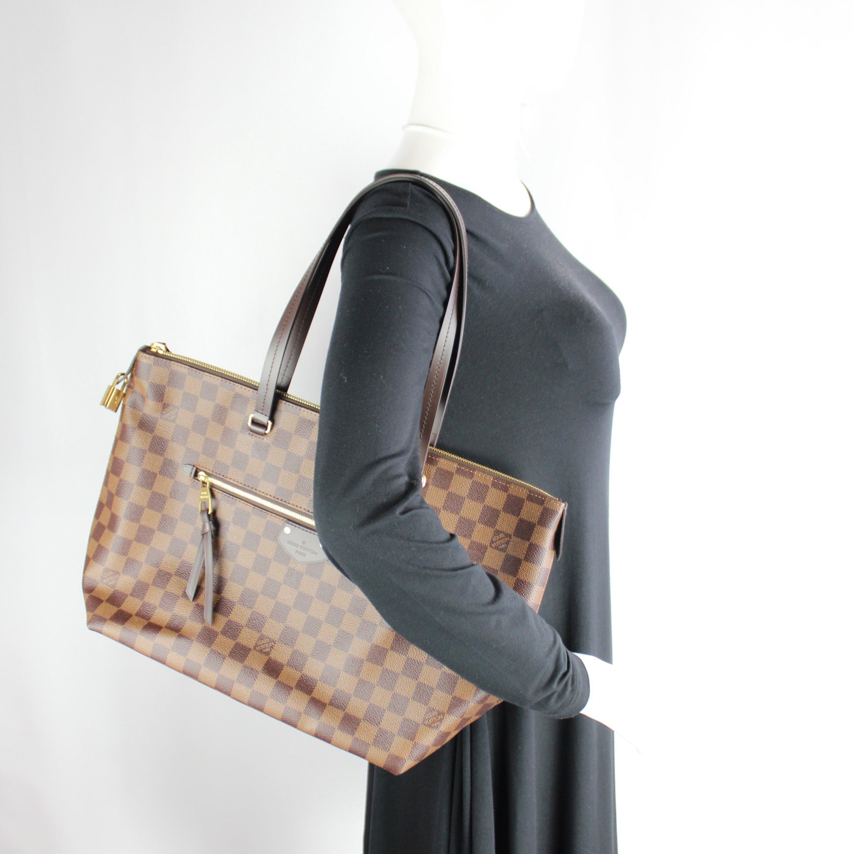 This Louis Vuitton Iena MM is guaranteed 100% . The exterior is in the classic Louis Vuitton Damier Ebene coated canvas.