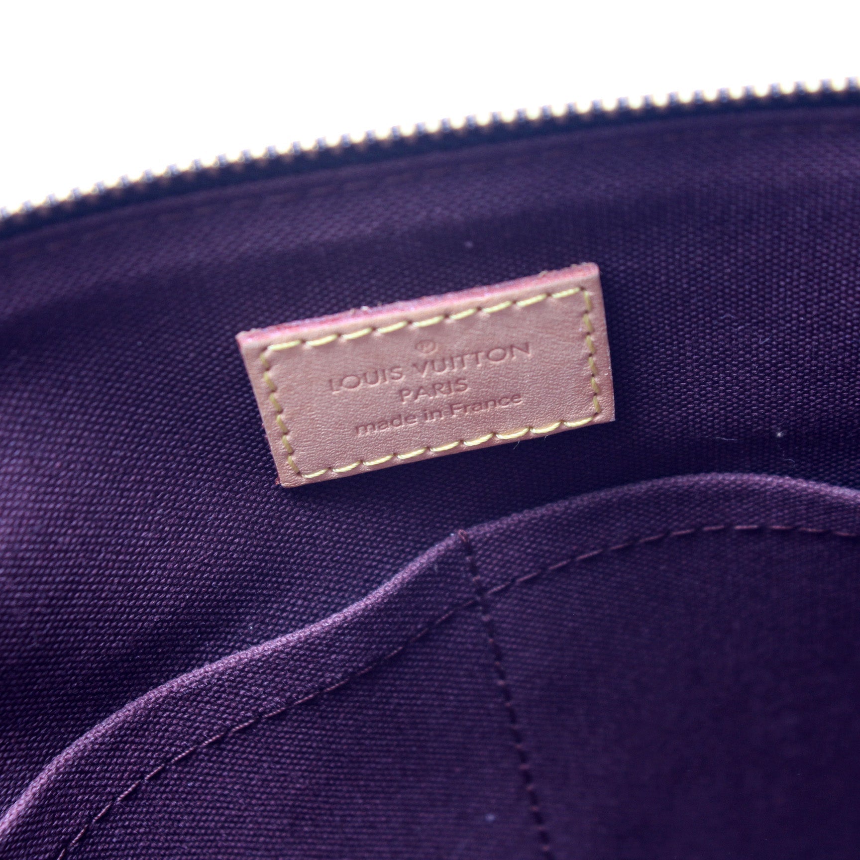 Exterior: The exterior Monogram coated canvas is free of any rips or cracks. The leather tabs show minor discoloration. The exterior features one zip closure pocket.