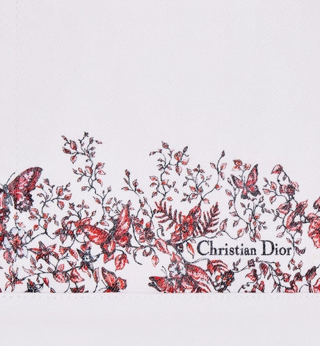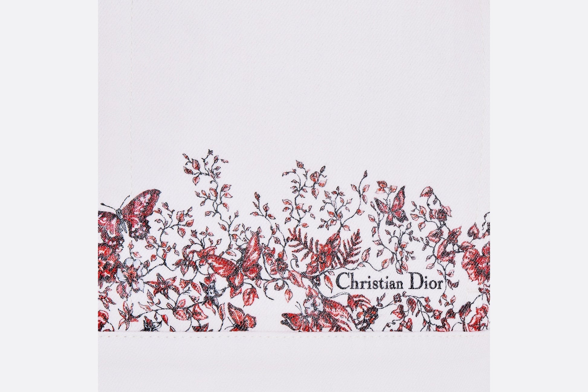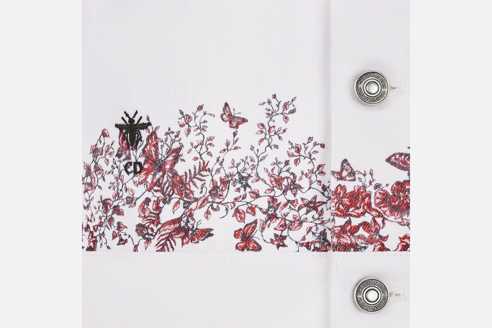 Celebrating Dior's vision of love and romance, the white denim jacket features the red Le Cœur des Papillons motif by Pietro Ruffo, showcasing a bouquet of flowers and butterflies. Crafted in cotton denim, it has a short silhouette accented by an embroidered bee, while two patch pockets adorn the front. The jacket can be coordinated with other Le Cœur des Papillons creations to complete the look.
