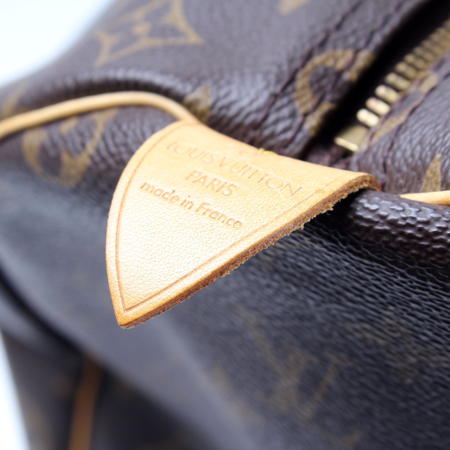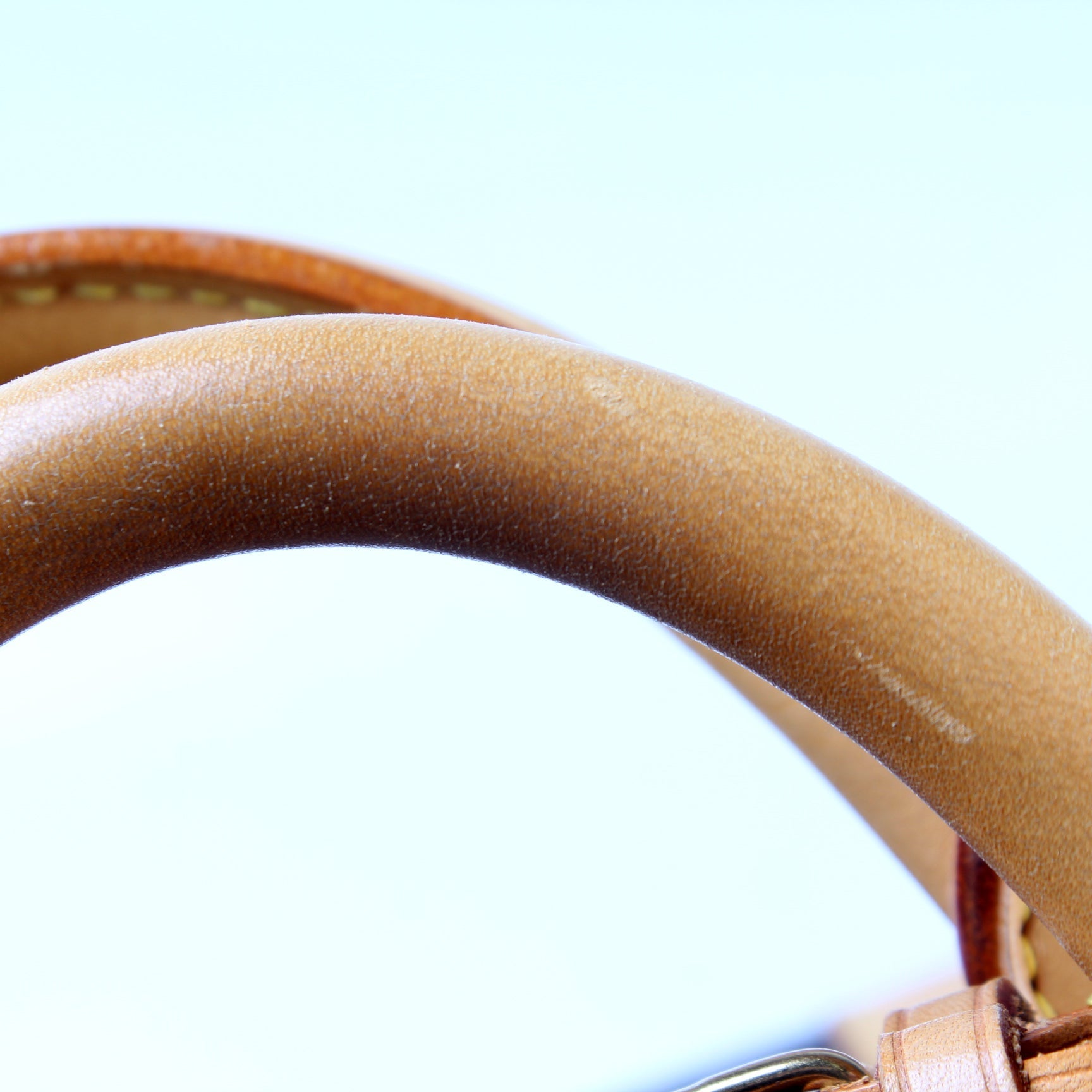 Handle: The leather handles have minor scuffs and wear.
