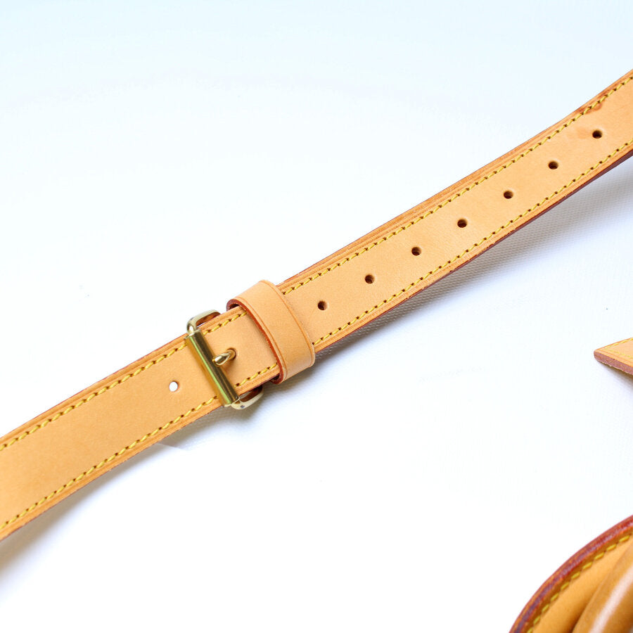 Handle: The leather handles have minor wear along the pipping and discoloration on the leather.
