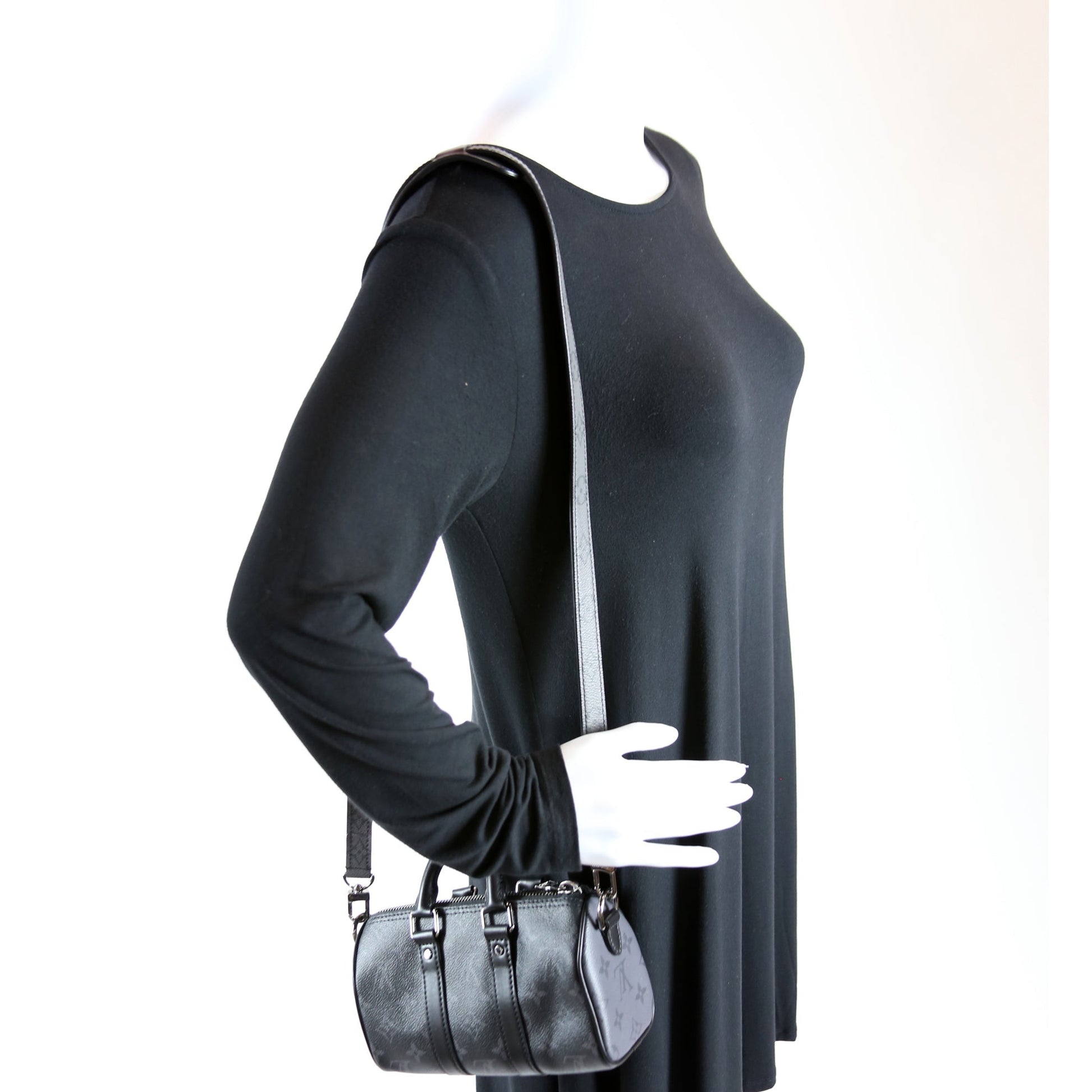 This Louis Vuitton Keepall XS is guaranteed 100% . The exterior is in the classic Louis Vuitton Reverse Eclipse Monogram coated canvas.