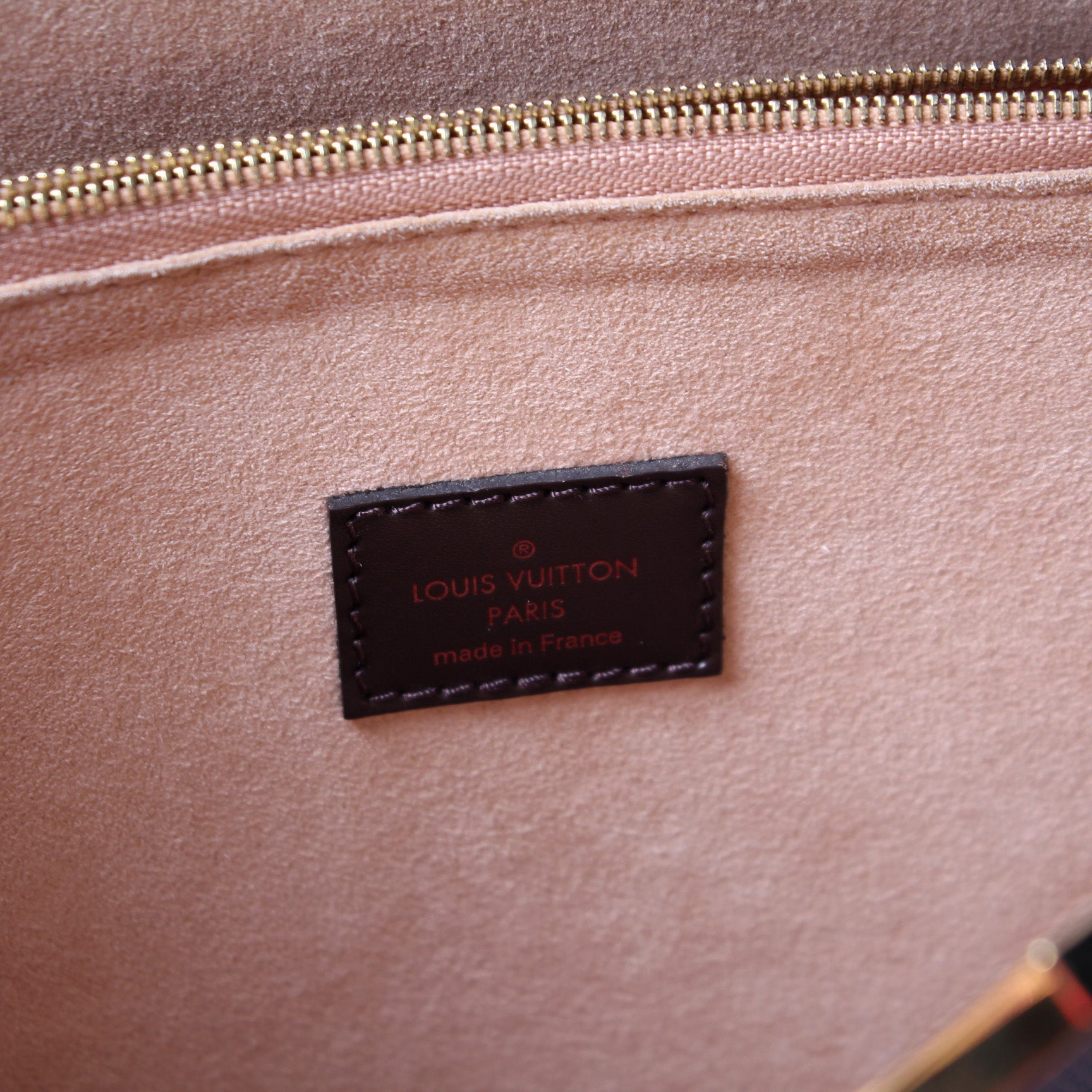 This Louis Vuitton Kensington Tote is guaranteed 100% . The exterior is in the classic Damier Ebene coated canvas.