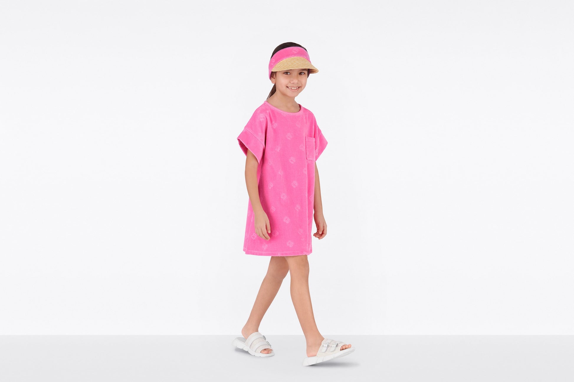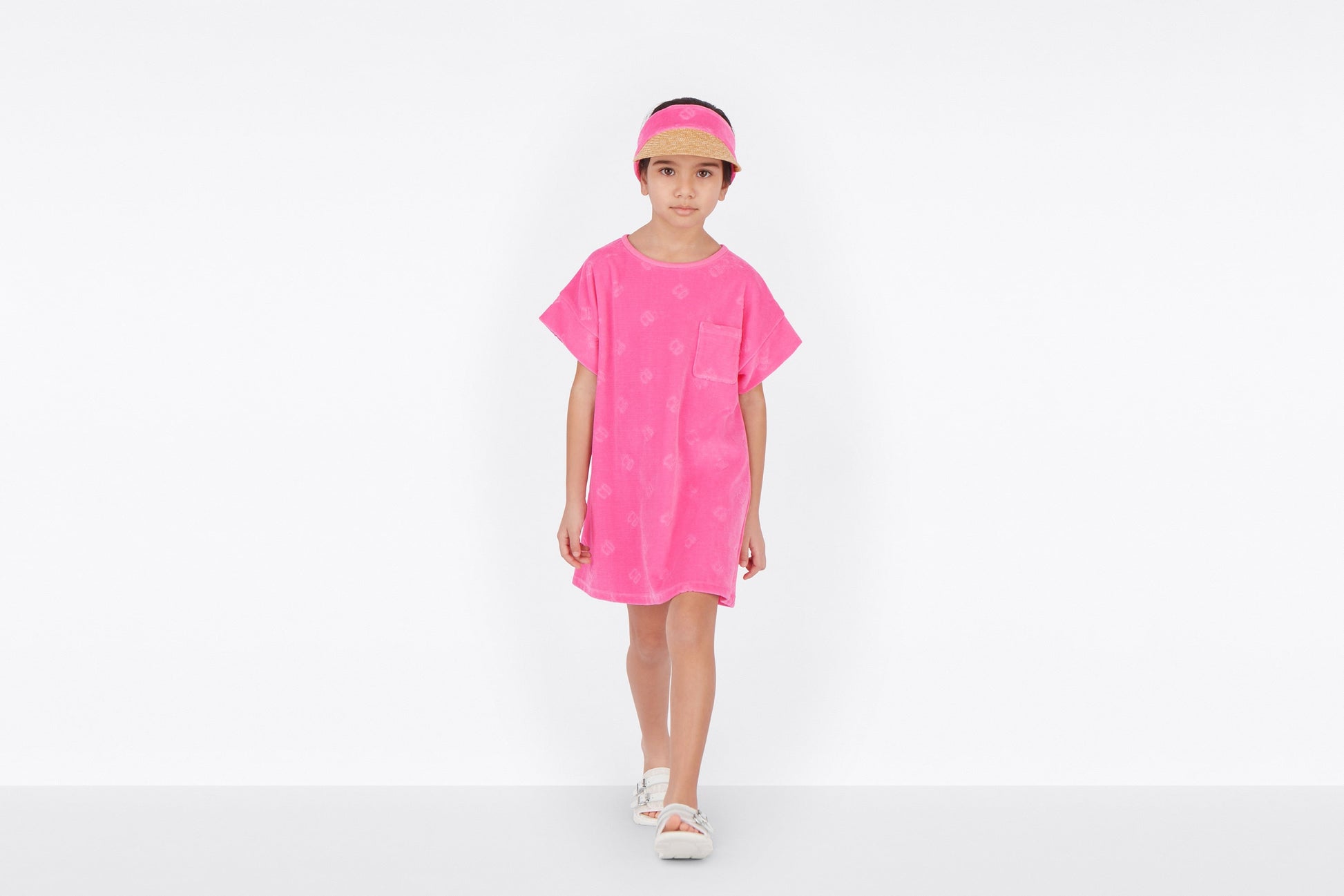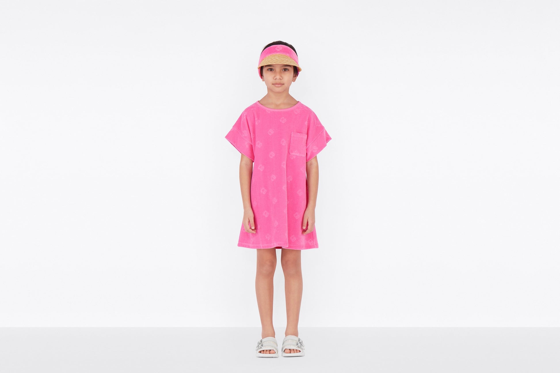 The A-line dress revisits the 'CD' signature with a sleek all-over gradient effect. Crafted in fuchsia pink velvet jersey jacquard, the comfortable summer piece is embellished with a patch pocket on the front. Featuring a ribbed round neck, the short-sleeved dress will create a range of warm-weather looks.