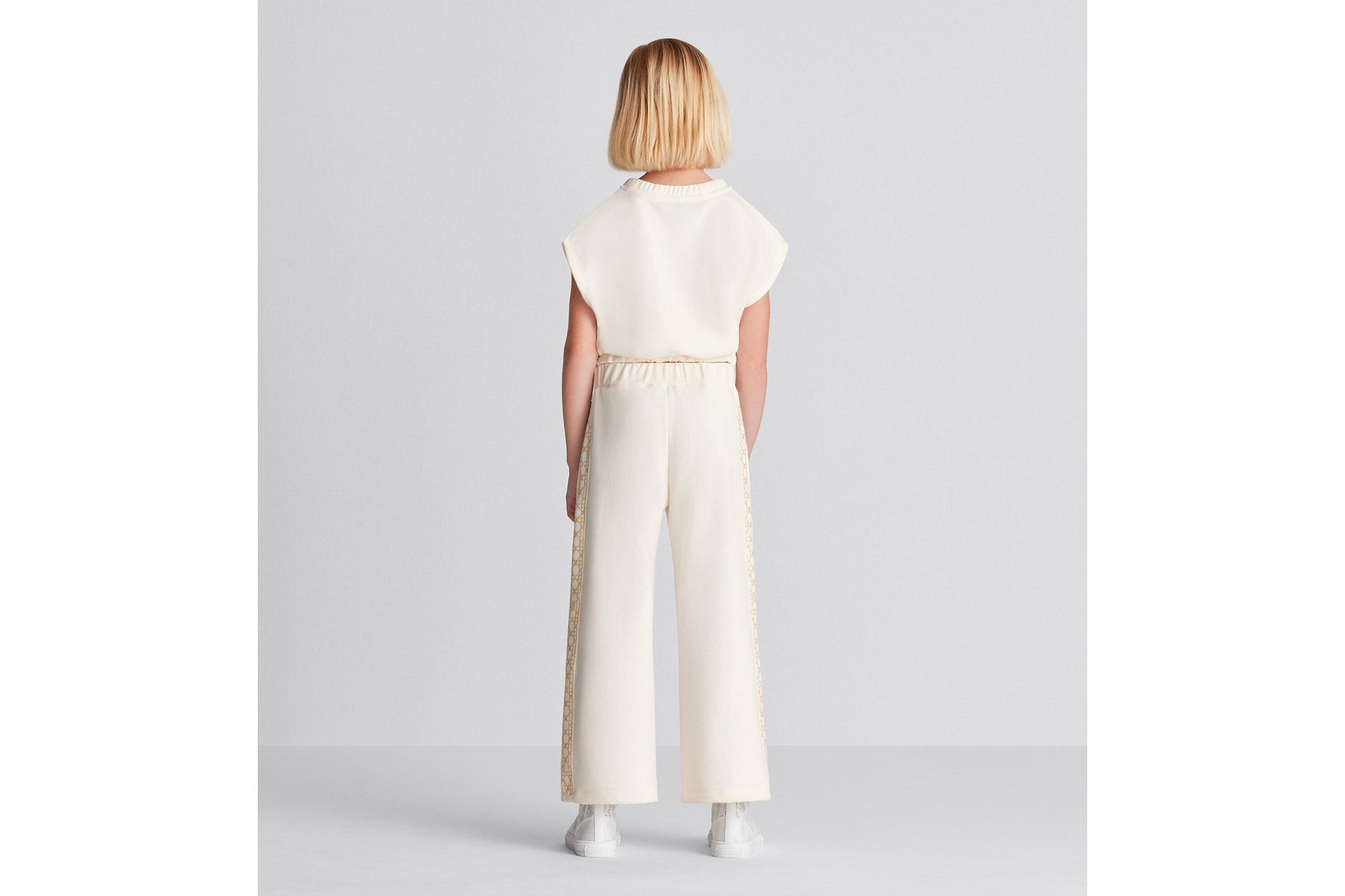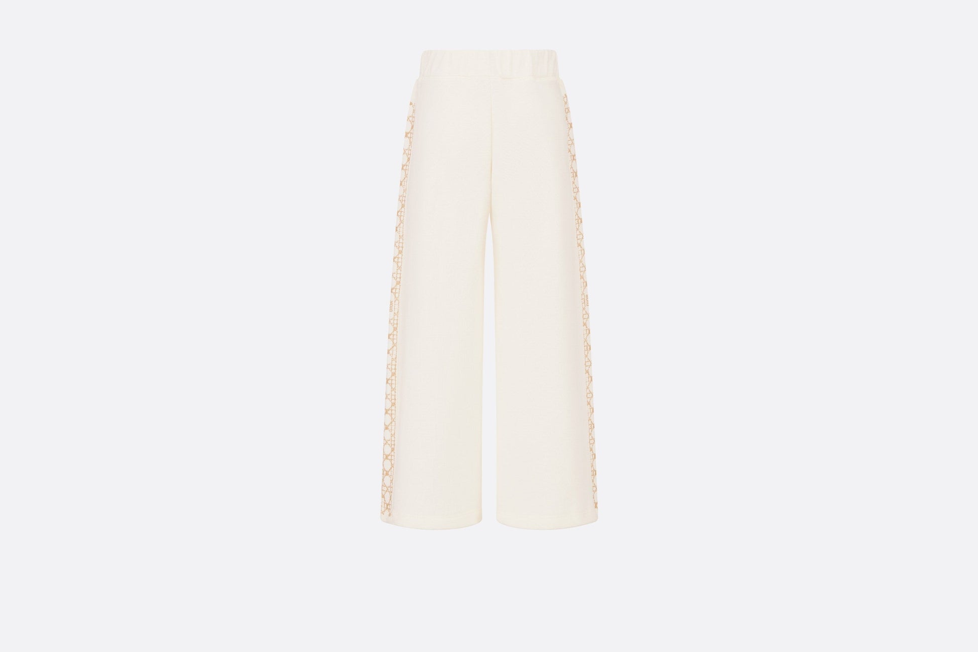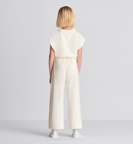 The ivory cotton-blend fleece pants feature a slightly loose straight cut. Enhanced by Cannage bands and stars with a pale gold-tone Dior signature on the sides, they feature a tonal stretch waist for an optimal fit. The pants can be paired with the matching cropped T-shirt from the collection for chic and lively appeal.